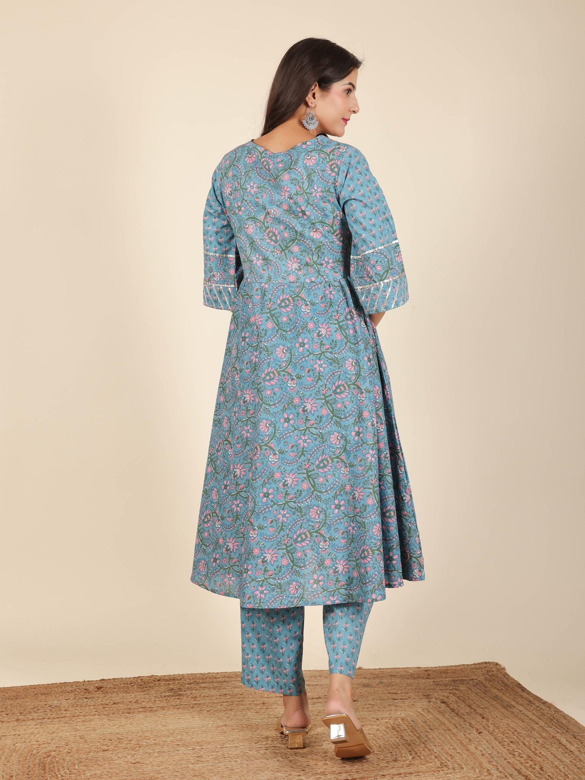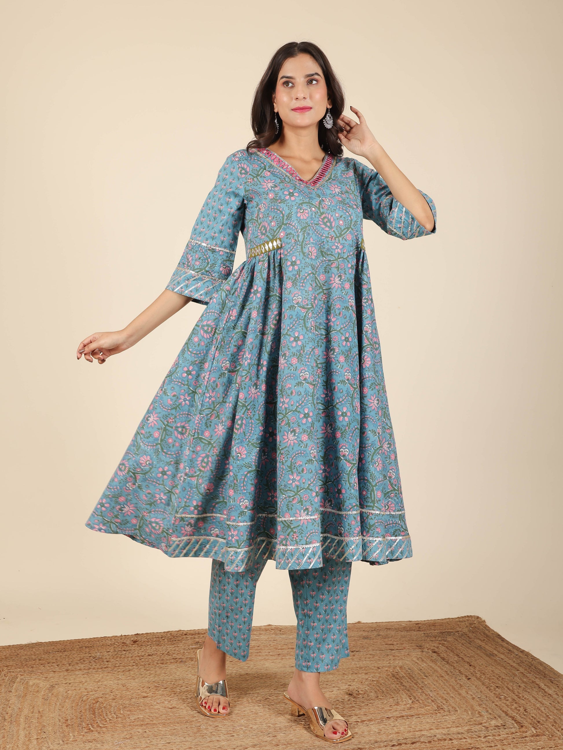 This Blue Soft Cotton kurta with a Flared flare is designed for comfort and style. Featuring a V neckline, 3/4 Sleeve sleeves, and a graceful Calf Length hemline, it’s perfect for festive wear or semi-formal gatherings. The Floral highlights add depth and texture, making it a standout piece. Accessorise with a contrasting dupatta and keep it pristine by following proper care instructions.