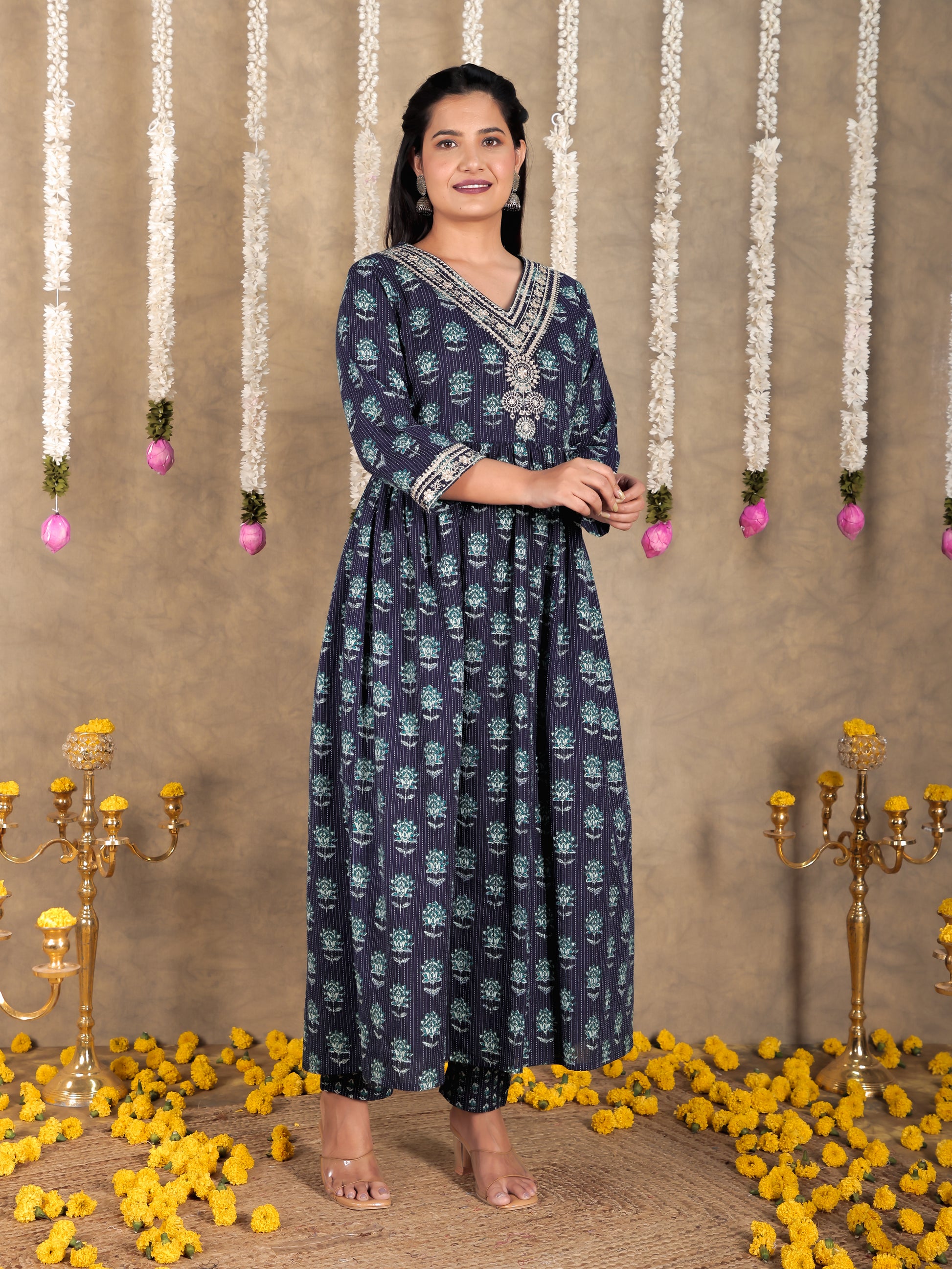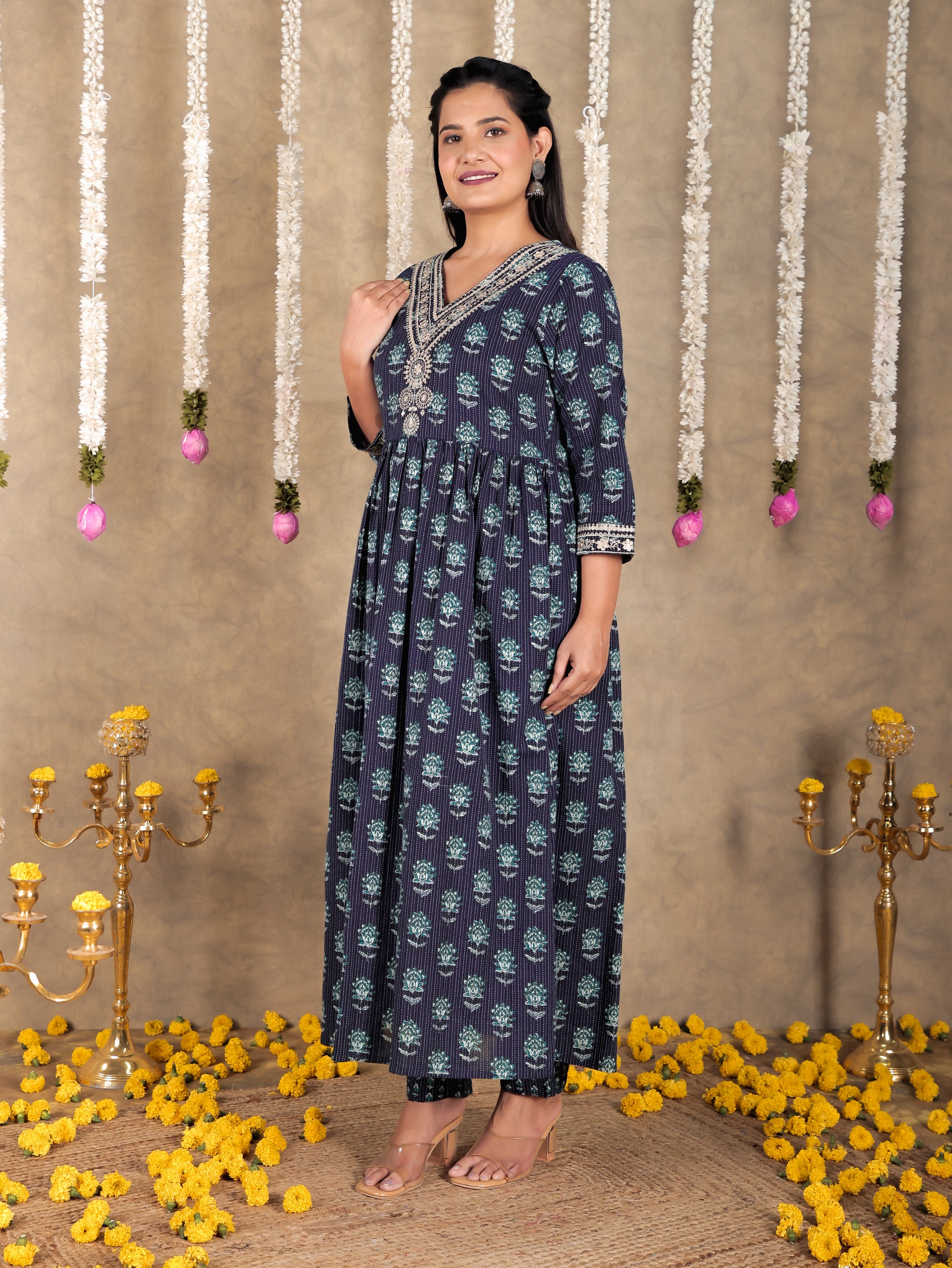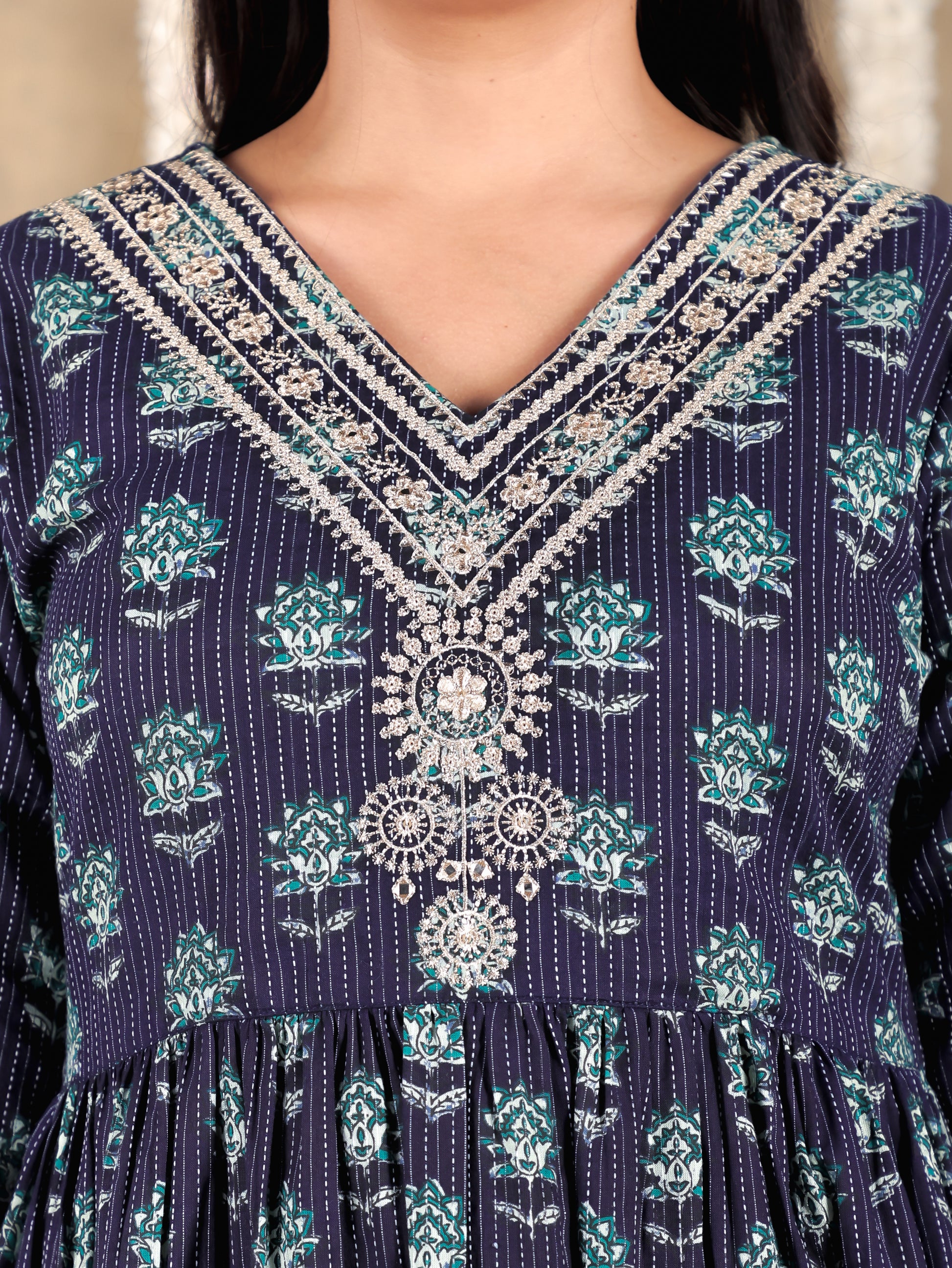 Crafted from breathable Kantha Cotton, this A-line kurta in Blue blends traditional design with everyday comfort. The Floral finish adds artisanal charm, while the Calf Length silhouette ensures effortless elegance. Style with palazzos or leggings for versatile looks, from workdays to weekend outings. Designed for easy care, this kurta stays beautiful with simple care instructions.