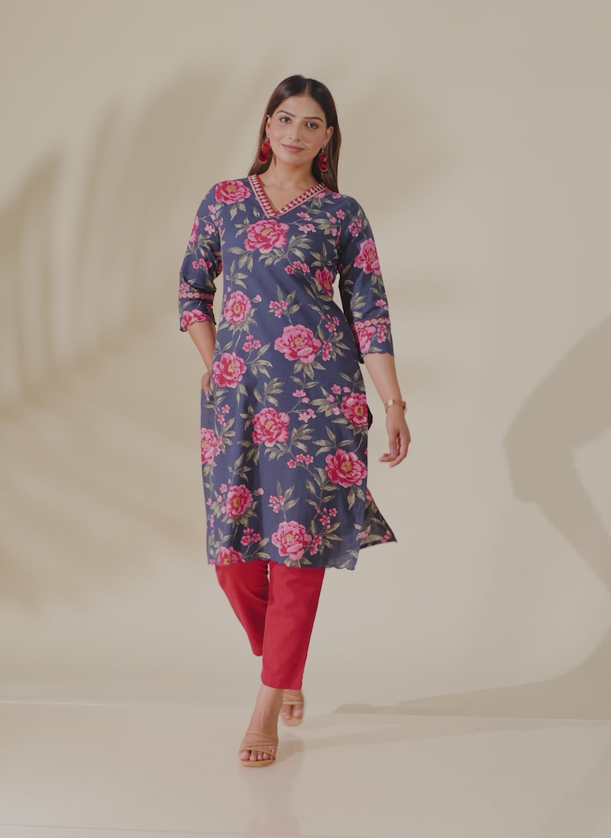 Elevate your ethnic wardrobe with this Linen Cotton kurta in a stunning Blue hue. Featuring an elegant Straight fit and striking Floral accents, it’s perfect for festive celebrations or family gatherings. The V neckline and 3/4 Sleeve provide all-day comfort. Team with gold-toned accessories for an effortlessly chic vibe. Maintain its charm by following proper care instructions.