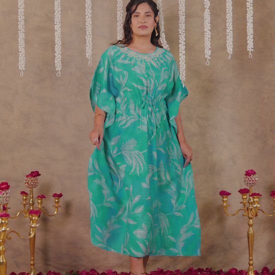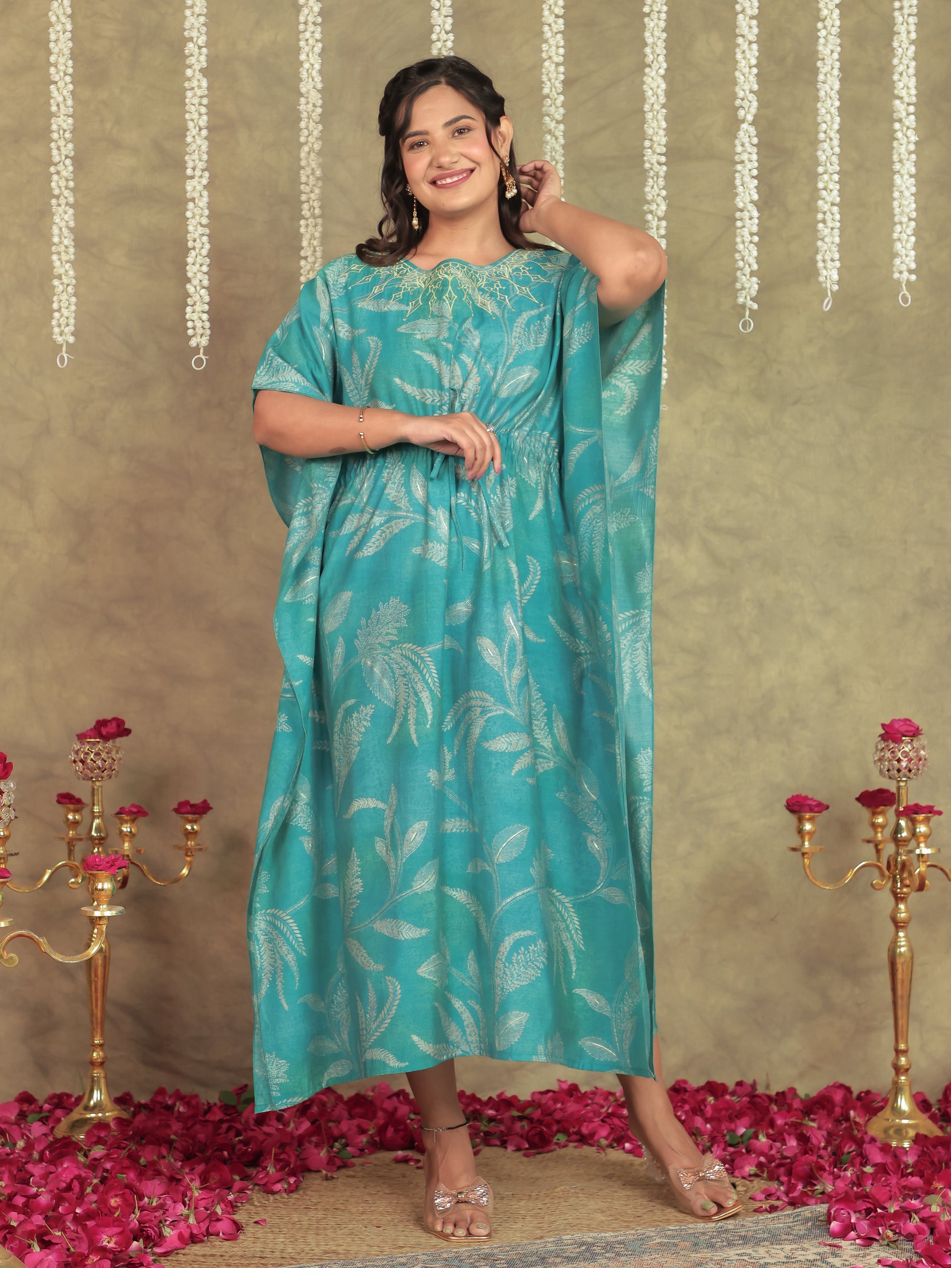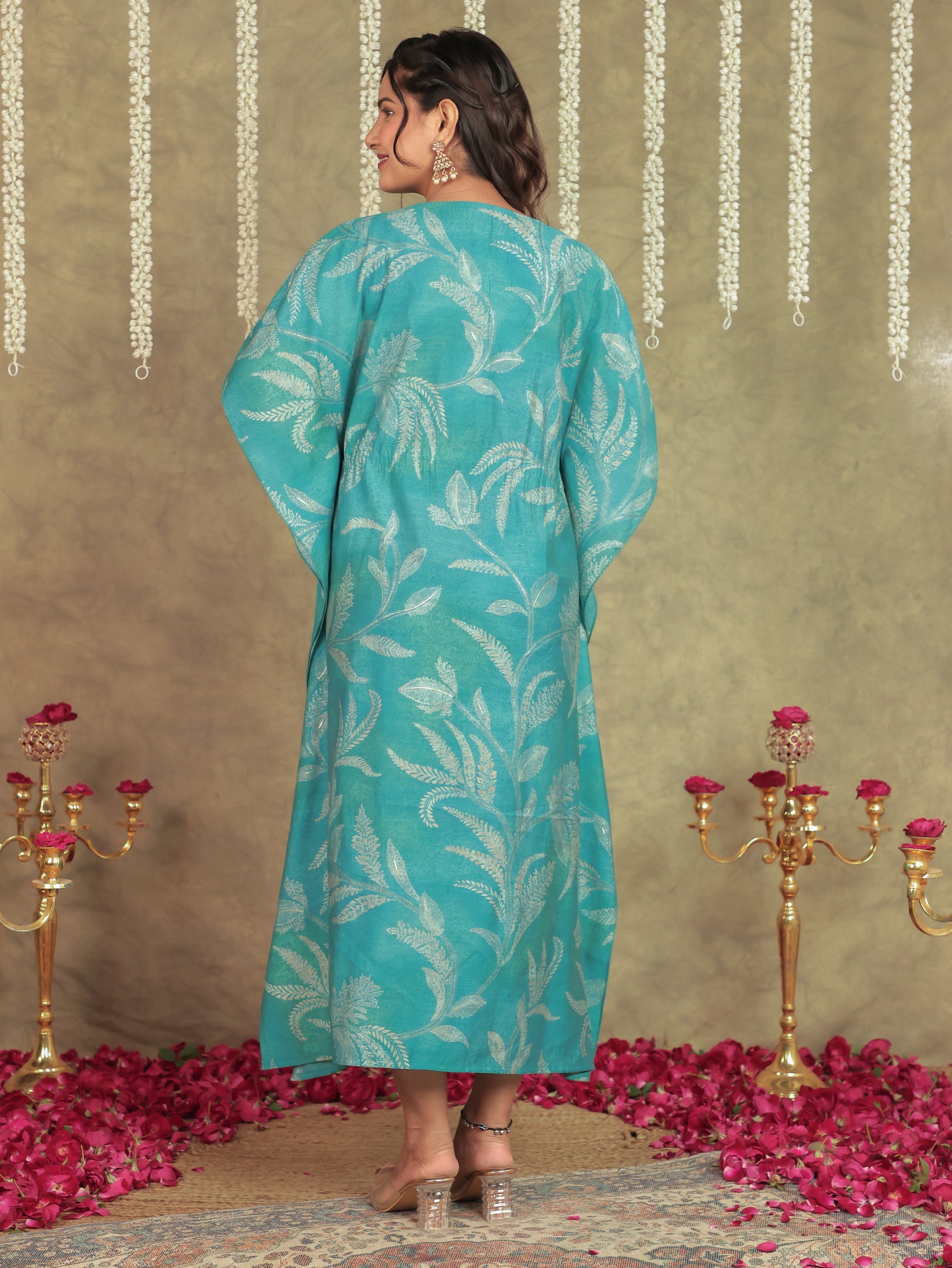 Embroidered Muslin Floral Kaftan Blue Kurta