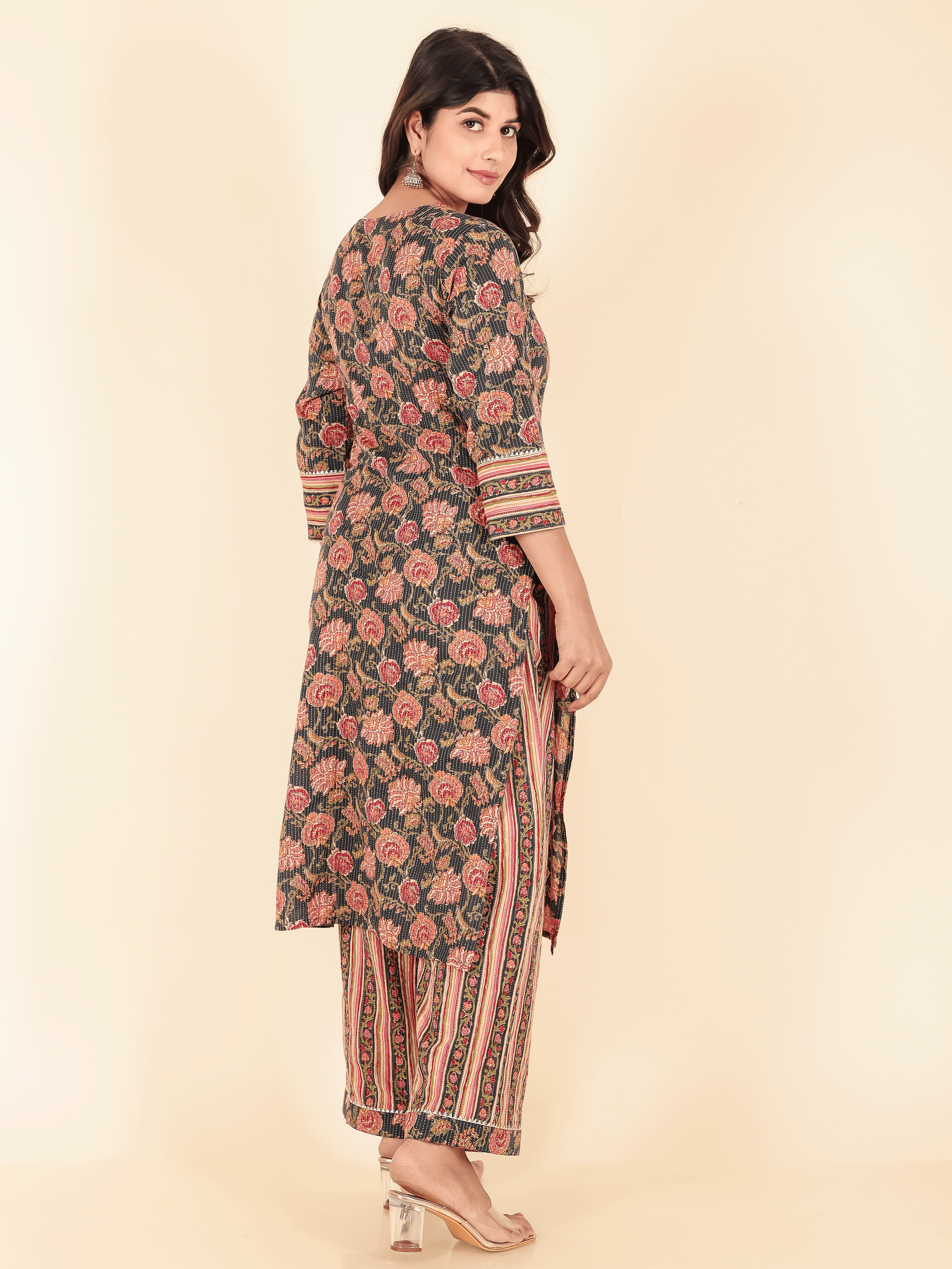 Crafted from breathable Kantha Cotton, this Straight kurta in Blue blends traditional design with everyday comfort. The Floral finish adds artisanal charm, while the Calf Length silhouette ensures effortless elegance. Style with palazzos or leggings for versatile looks, from workdays to weekend outings. Designed for easy care, this kurta stays beautiful with simple care instructions.
