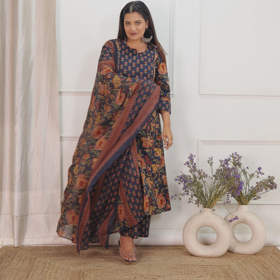 This Blue Soft Cotton kurta with a Panelled flare is designed for comfort and style. Featuring a Round neckline, 3/4 Sleeve sleeves, and a graceful Calf Length hemline, it’s perfect for festive wear or semi-formal gatherings. The Floral highlights add depth and texture, making it a standout piece. Accessorise with a contrasting dupatta and keep it pristine by following proper care instructions.