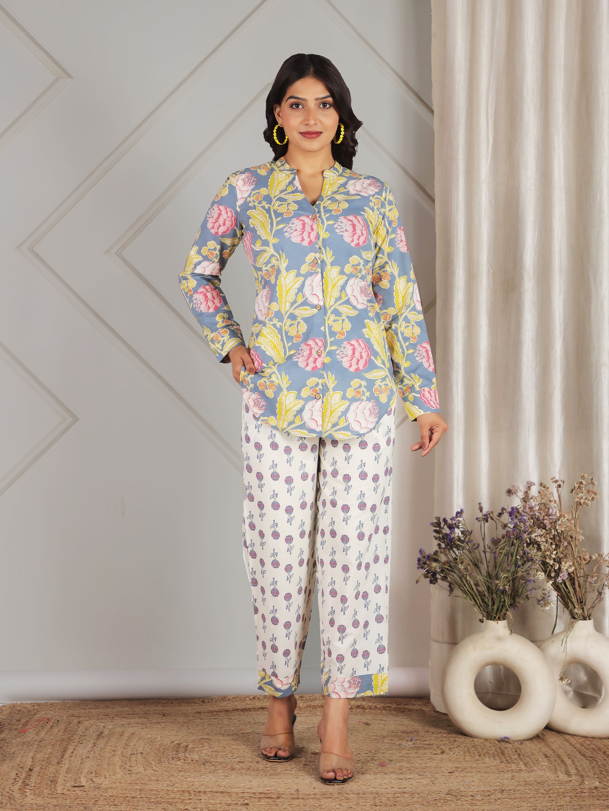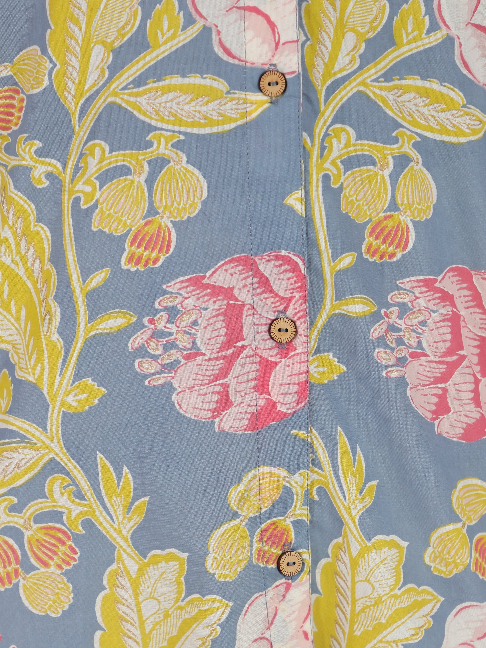 Soft Cotton Floral Straight Blue Top