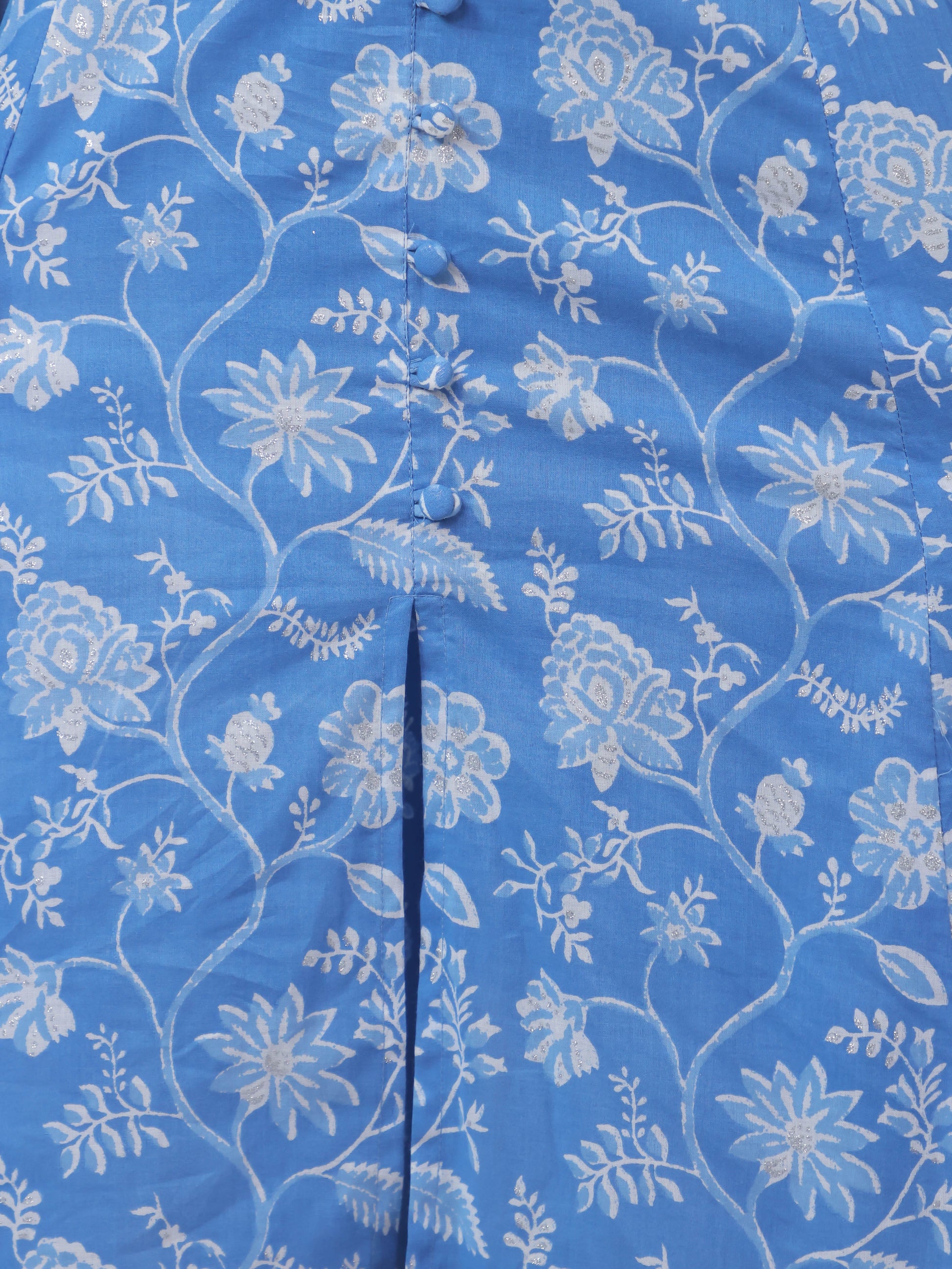 Soft Cotton Floral High Low Blue Kurta