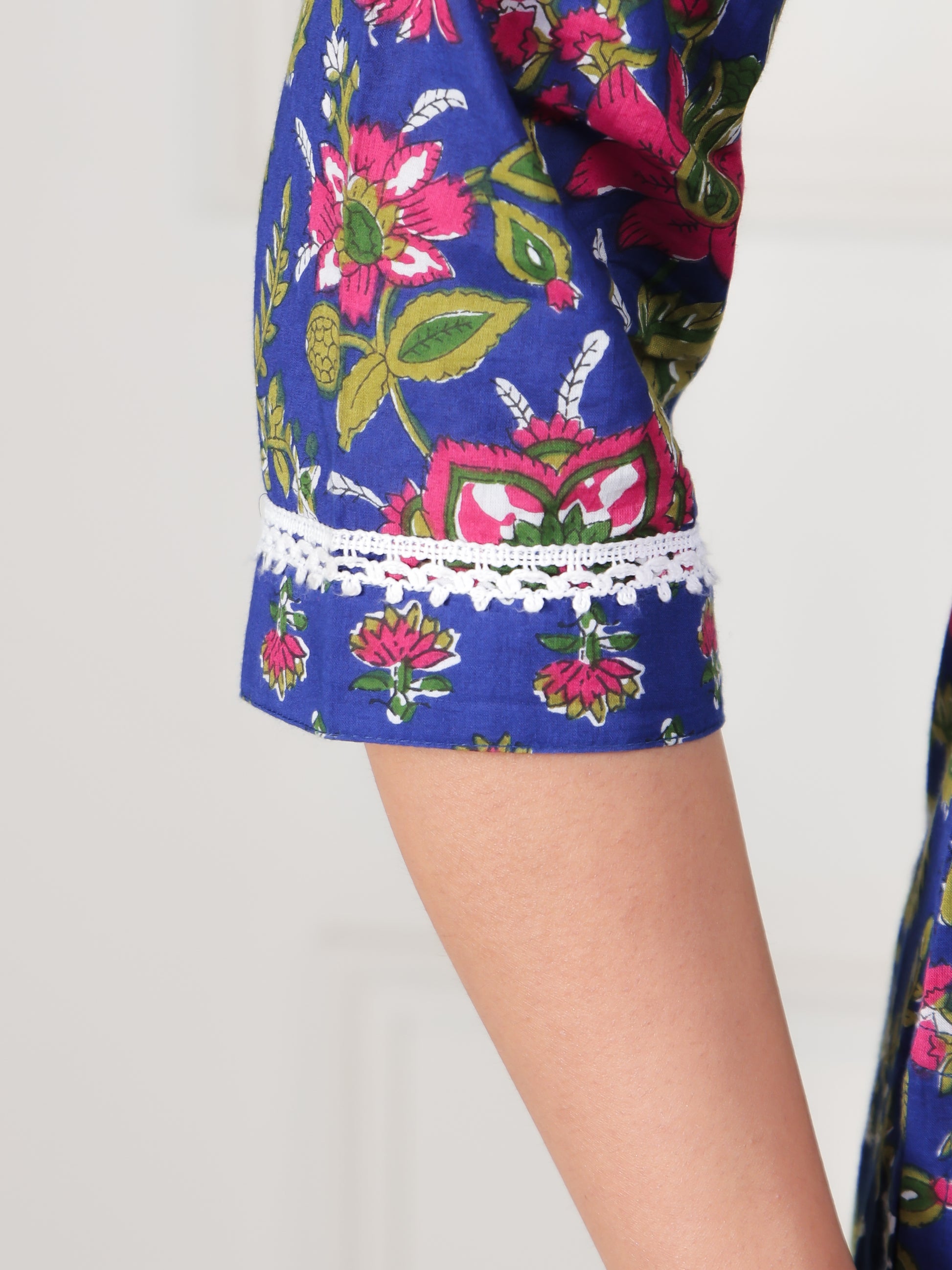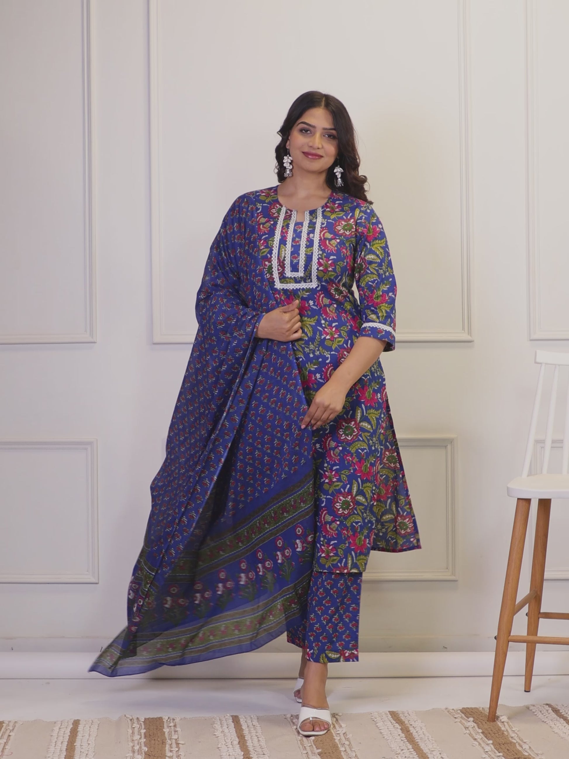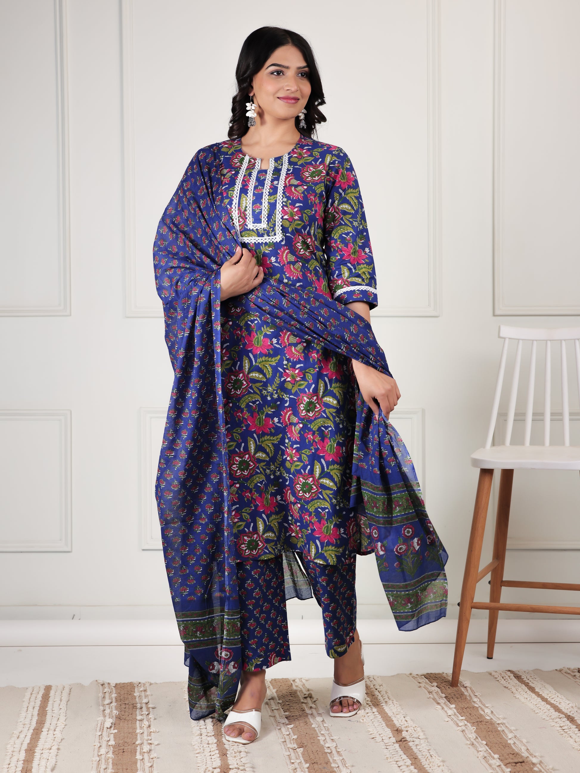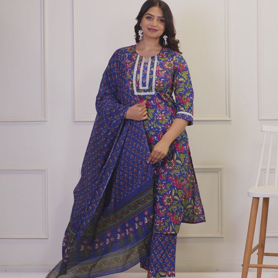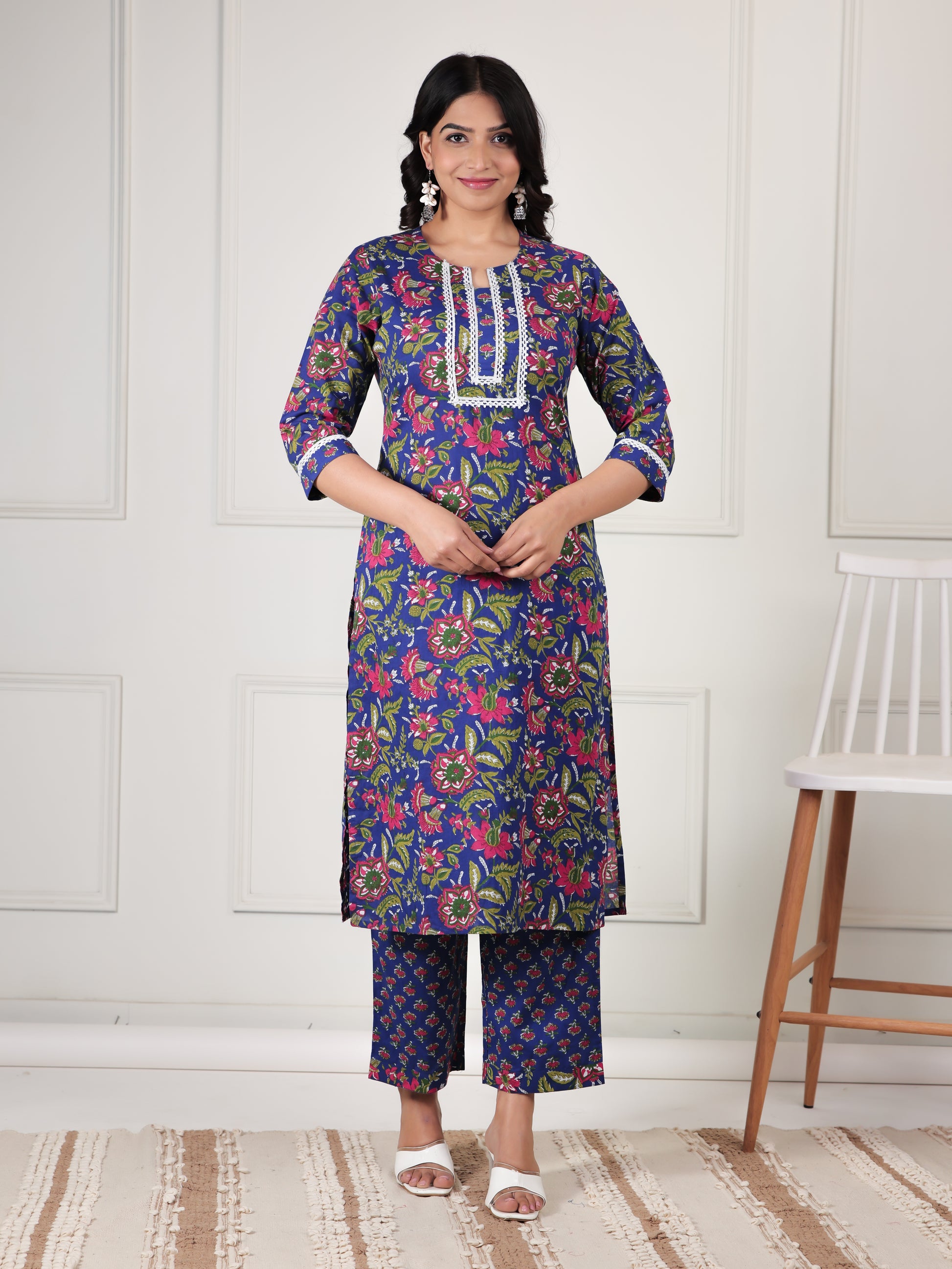 Elevate your ethnic wardrobe with this Soft Cotton kurta in a stunning Blue hue. Featuring an elegant Straight fit and striking Floral accents, it’s perfect for festive celebrations or family gatherings. The Round neckline and 3/4 Sleeve provide all-day comfort. Team with gold-toned accessories for an effortlessly chic vibe. Maintain its charm by following proper care instructions.