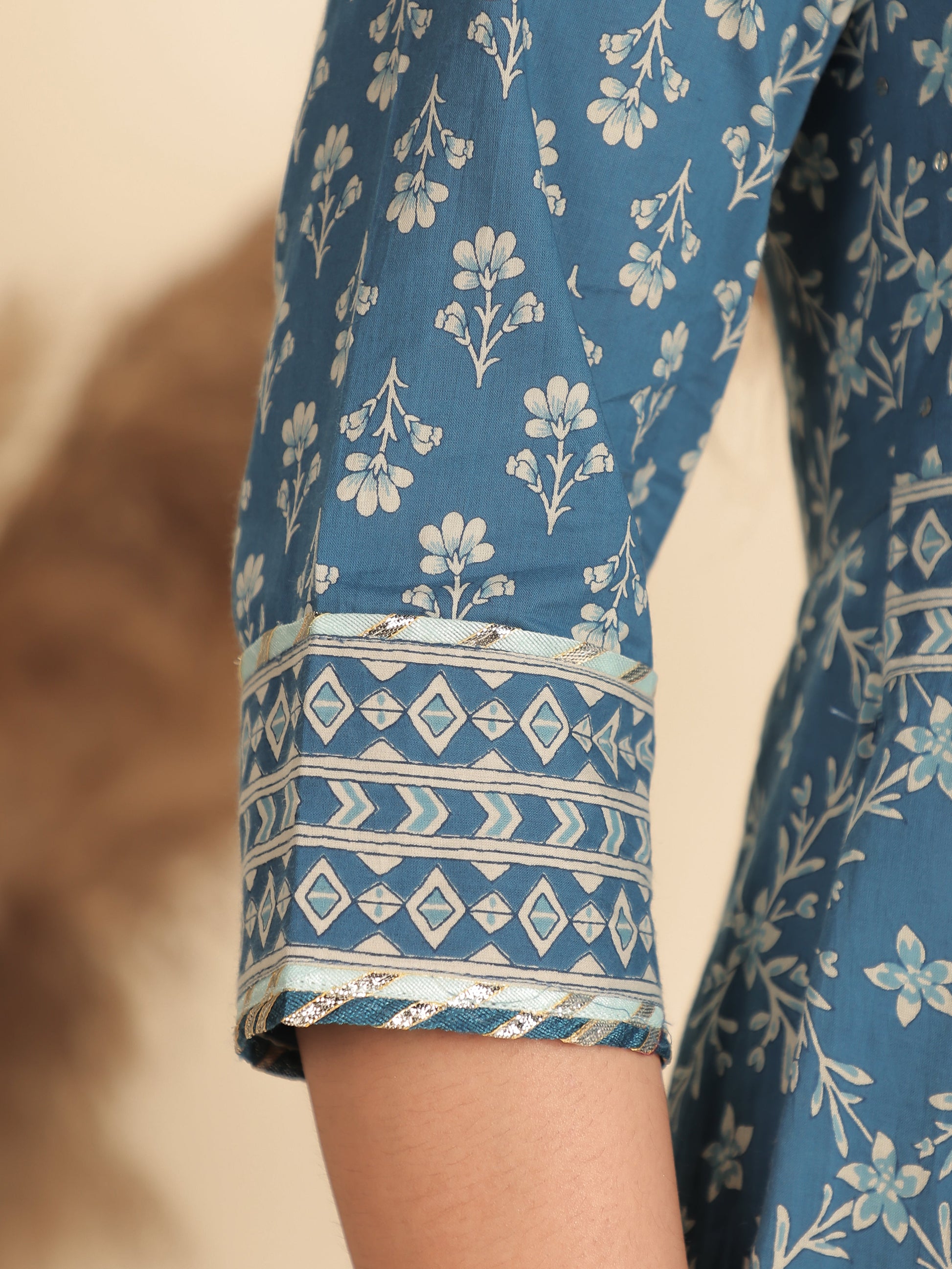 Crafted from breathable Soft Cotton, this Flared kurta in Blue blends traditional design with everyday comfort. The Floral finish adds artisanal charm, while the Calf Length silhouette ensures effortless elegance. Style with palazzos or leggings for versatile looks, from workdays to weekend outings. Designed for easy care, this kurta stays beautiful with simple care instructions.