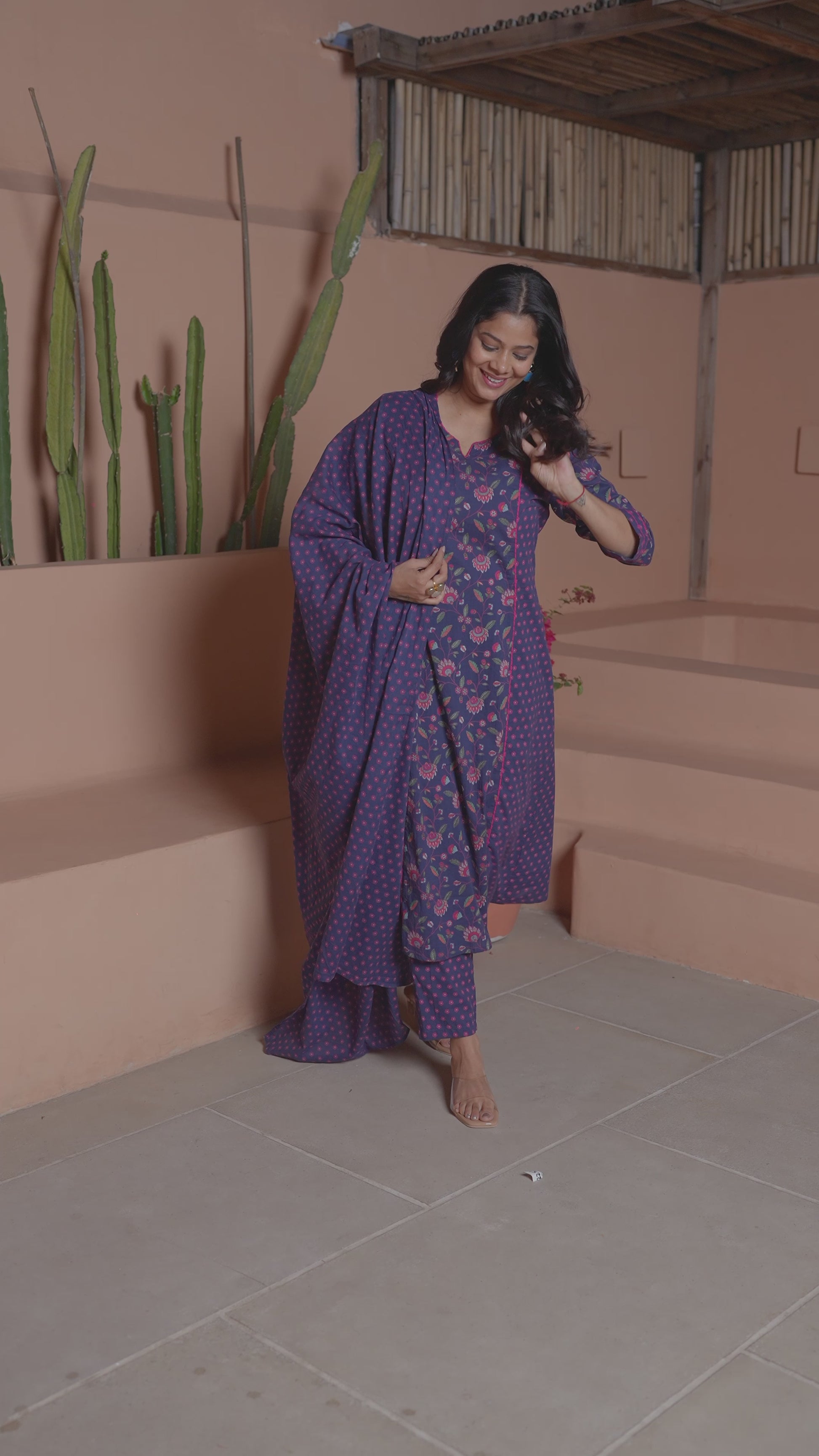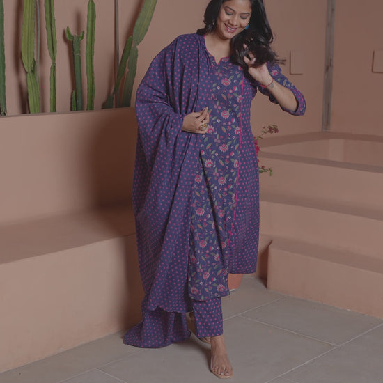 Crafted from breathable Soft Cotton, this Panelled A-Line kurta in Blue blends traditional design with everyday comfort. The Floral finish adds artisanal charm, while the silhouette ensures effortless elegance. Style with palazzos or leggings for versatile looks, from workdays to weekend outings. Designed for easy care, this kurta stays beautiful with simple care instructions.