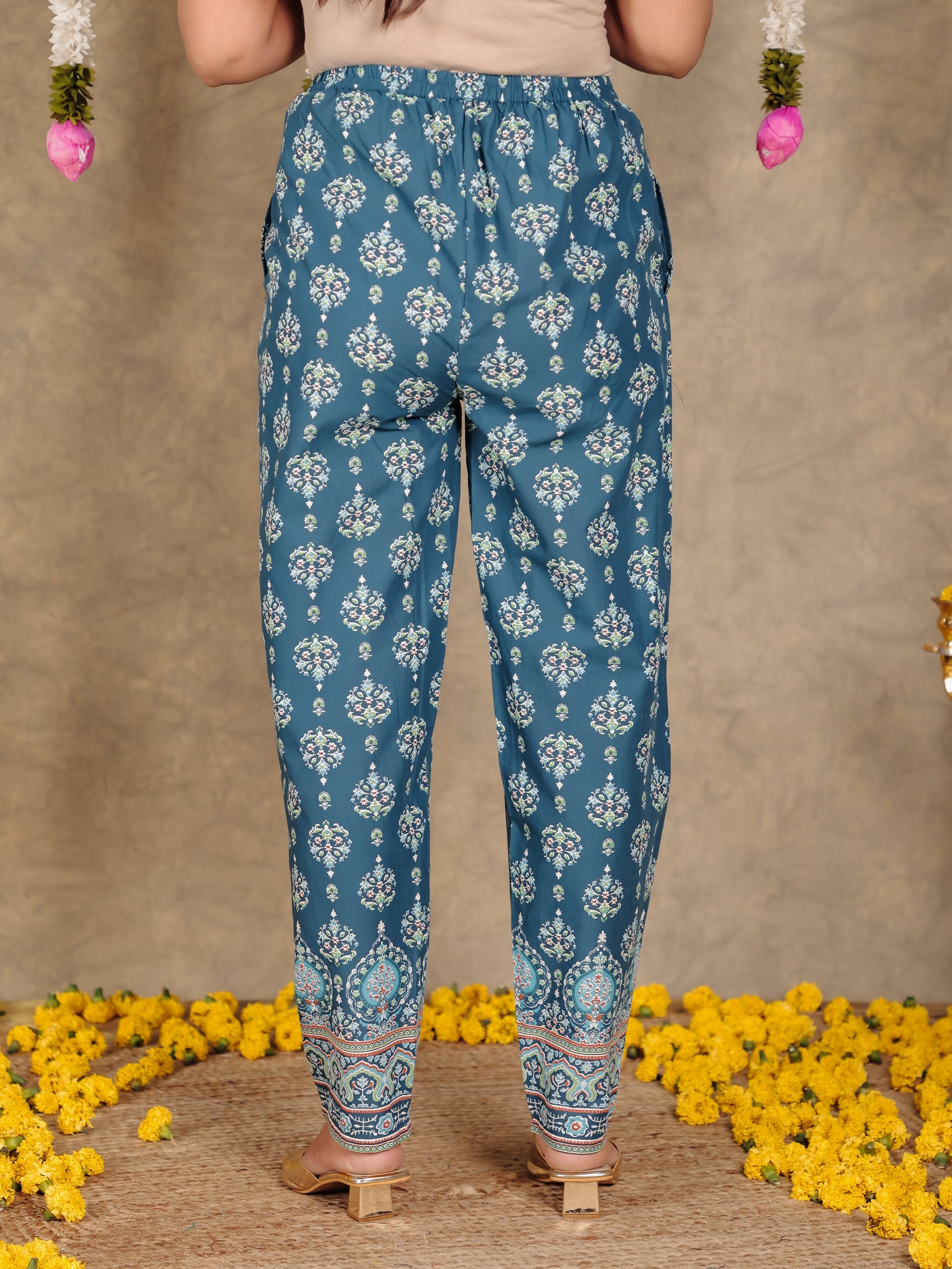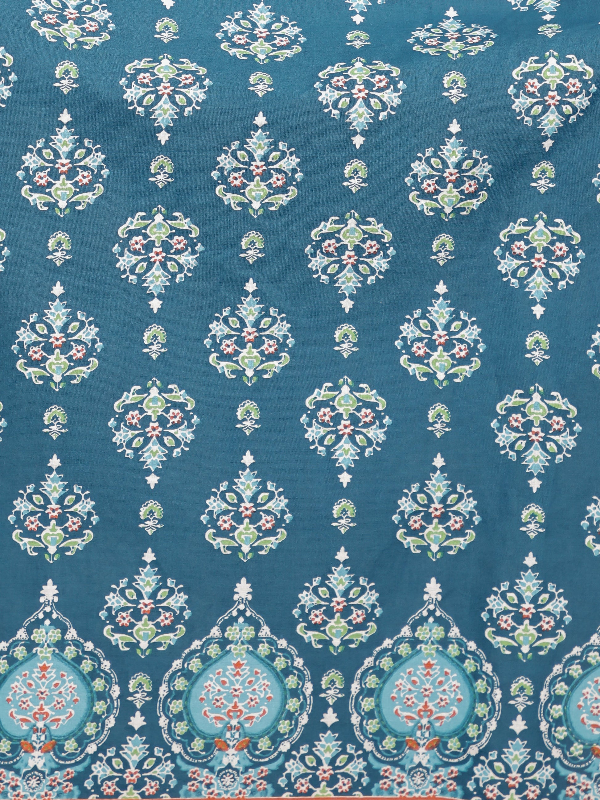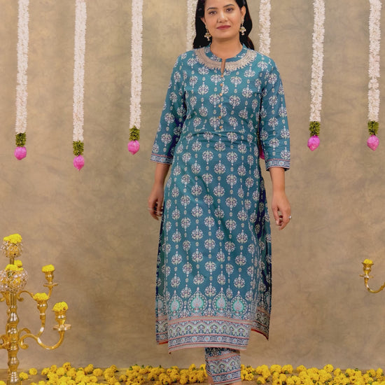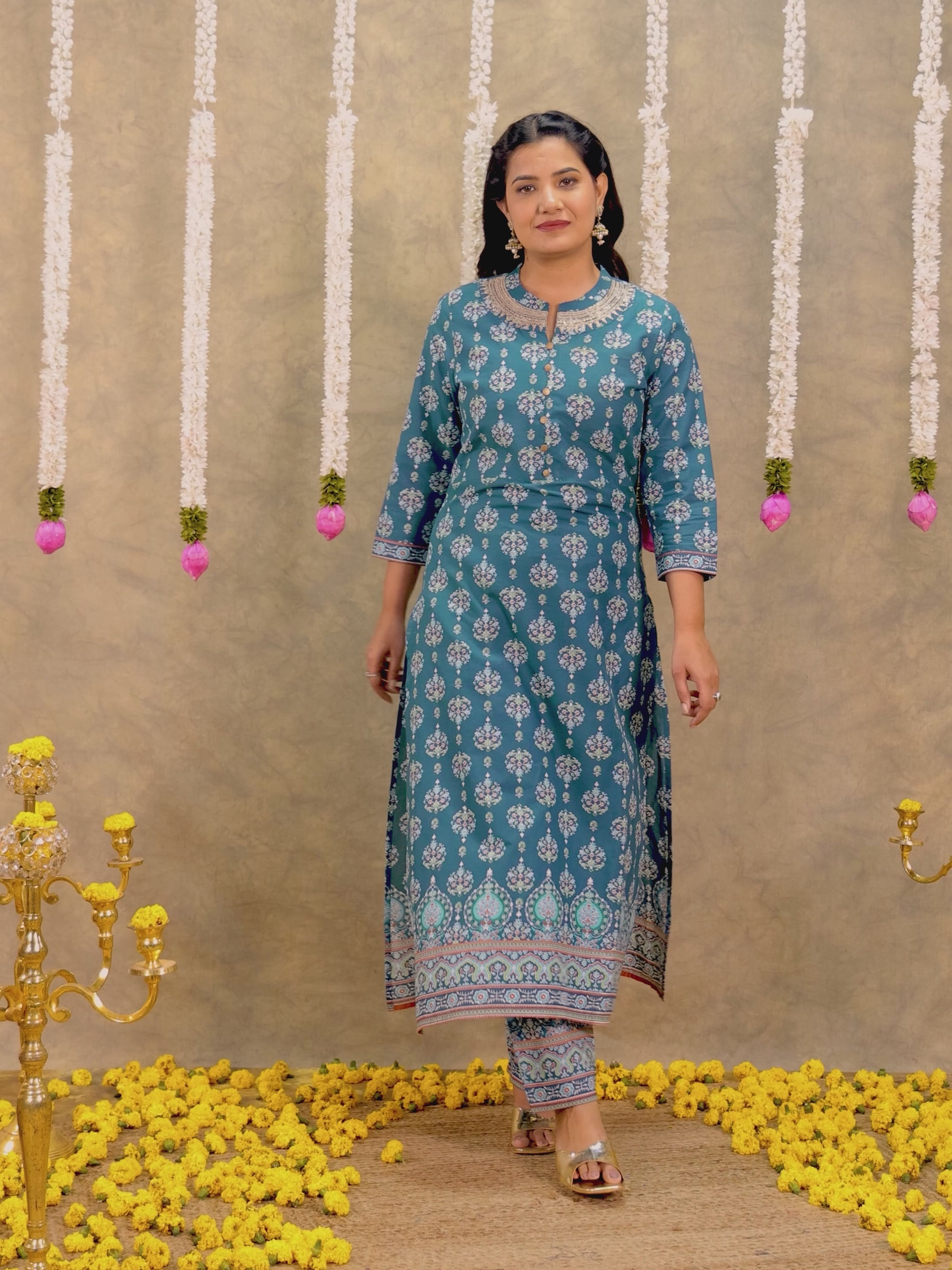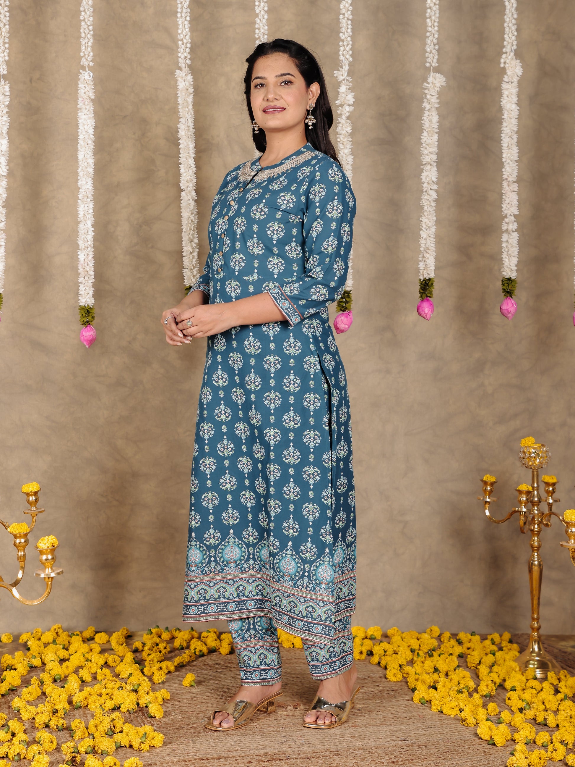 Embroidered Soft Cotton Floral Straight Blue Kurta