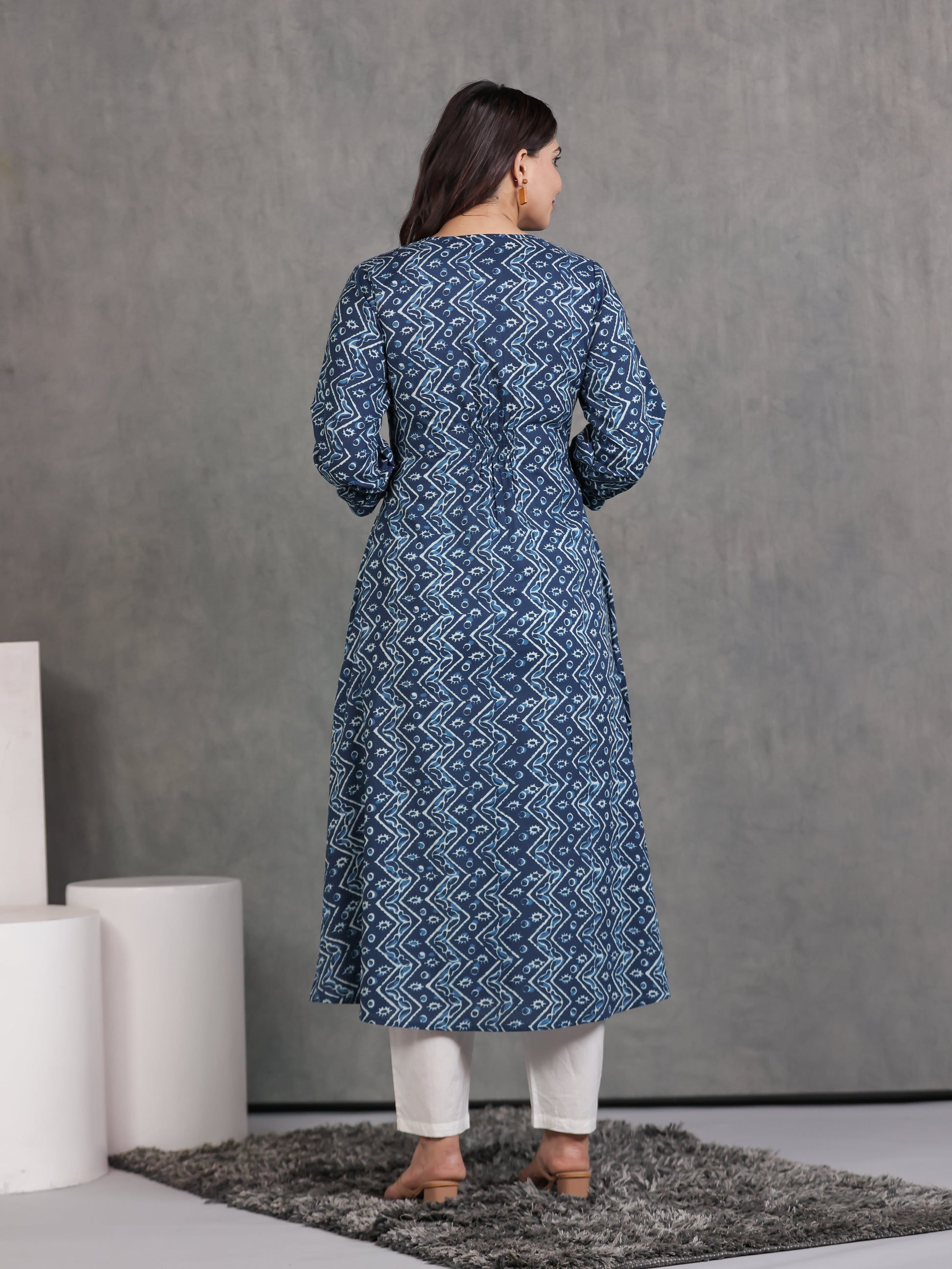 Embroidered Soft Cotton Geometric Flared Blue Kurta