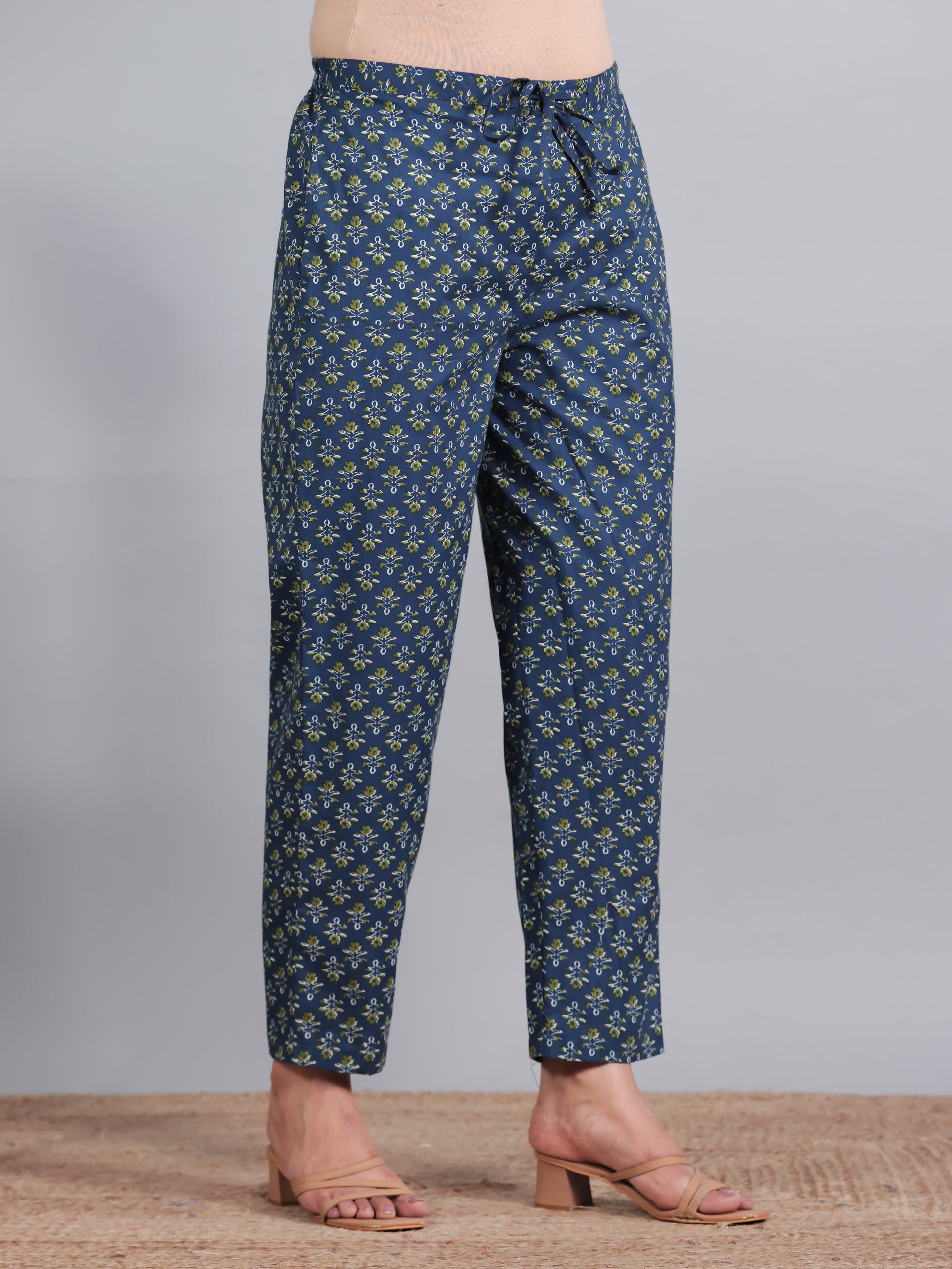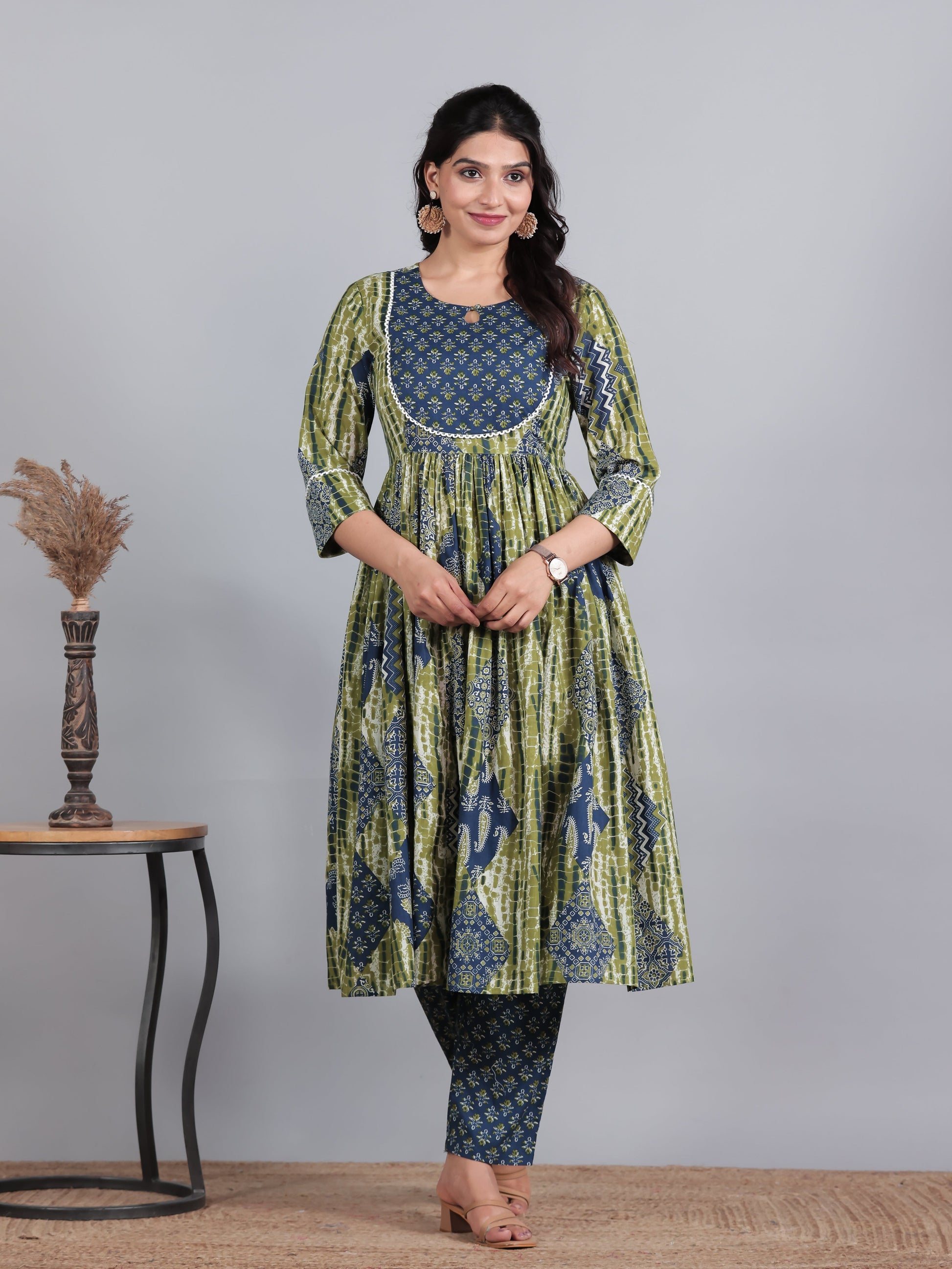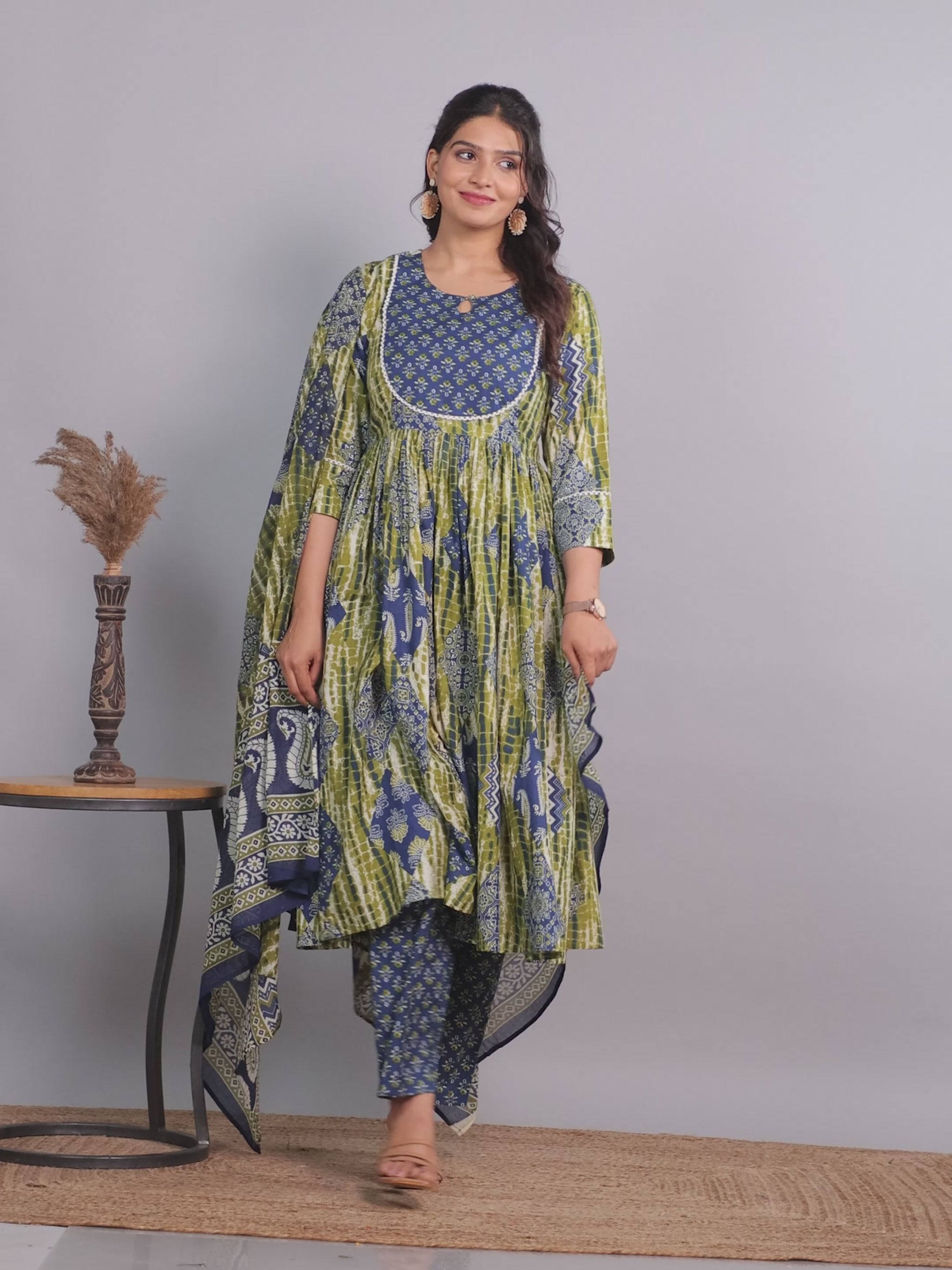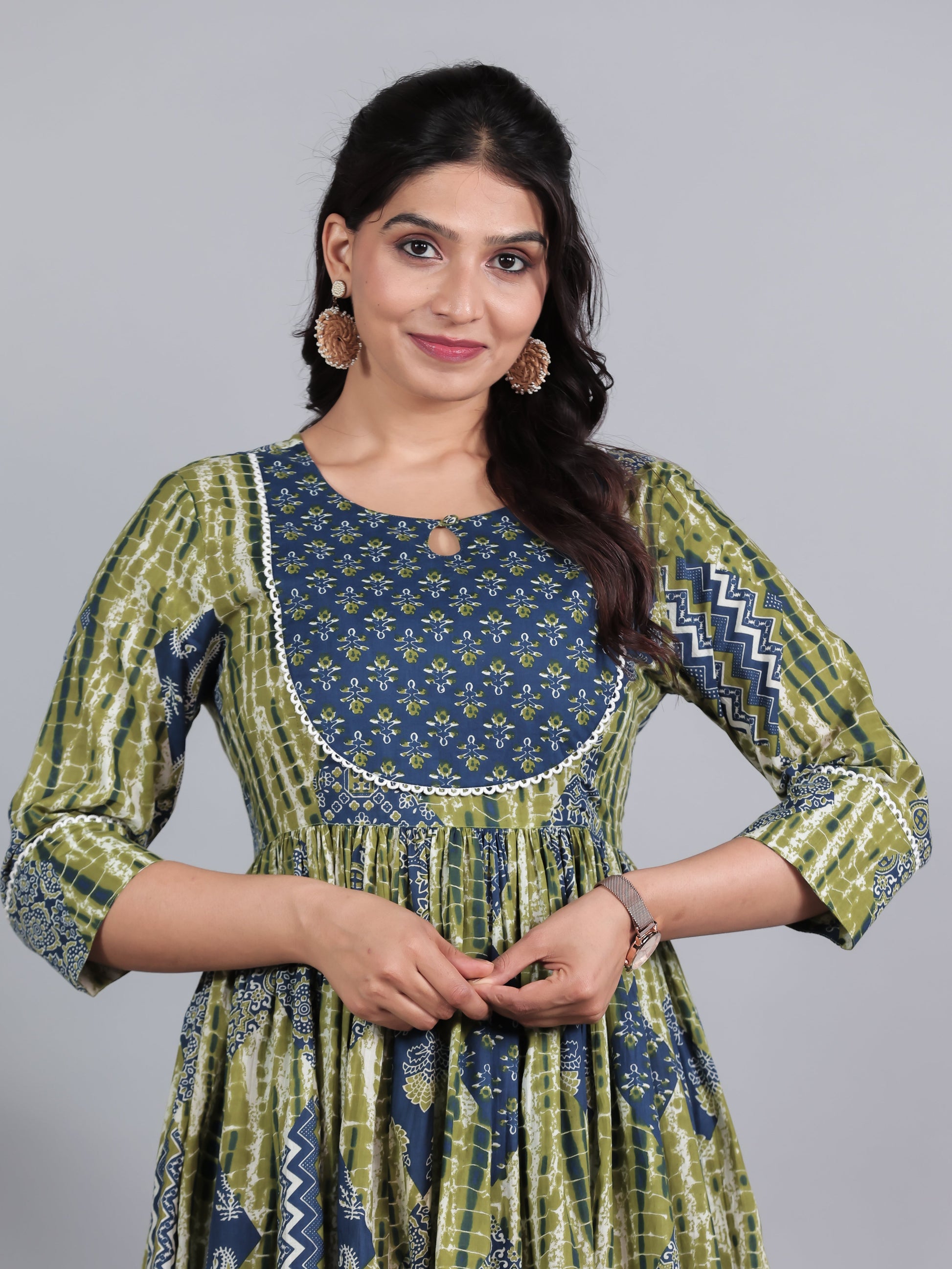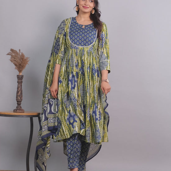 Soft Cotton Geometric Gathered Blue Kurta