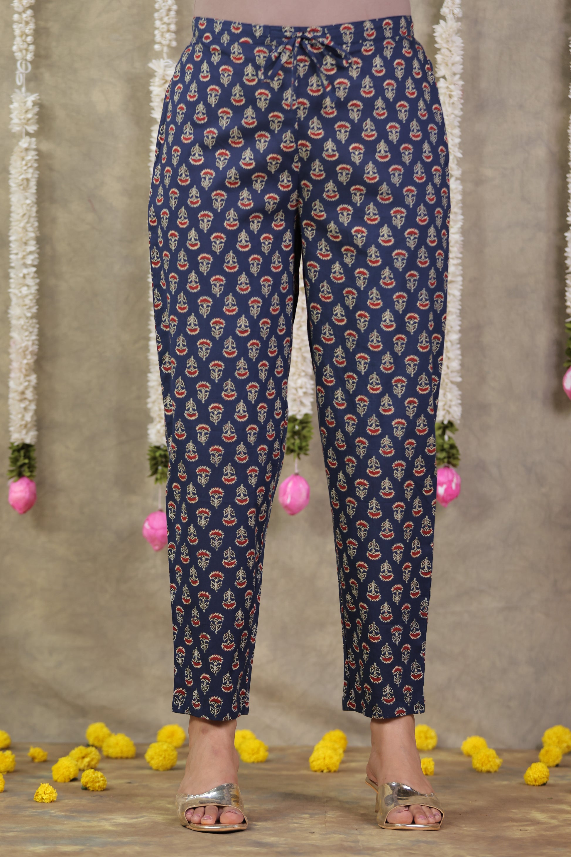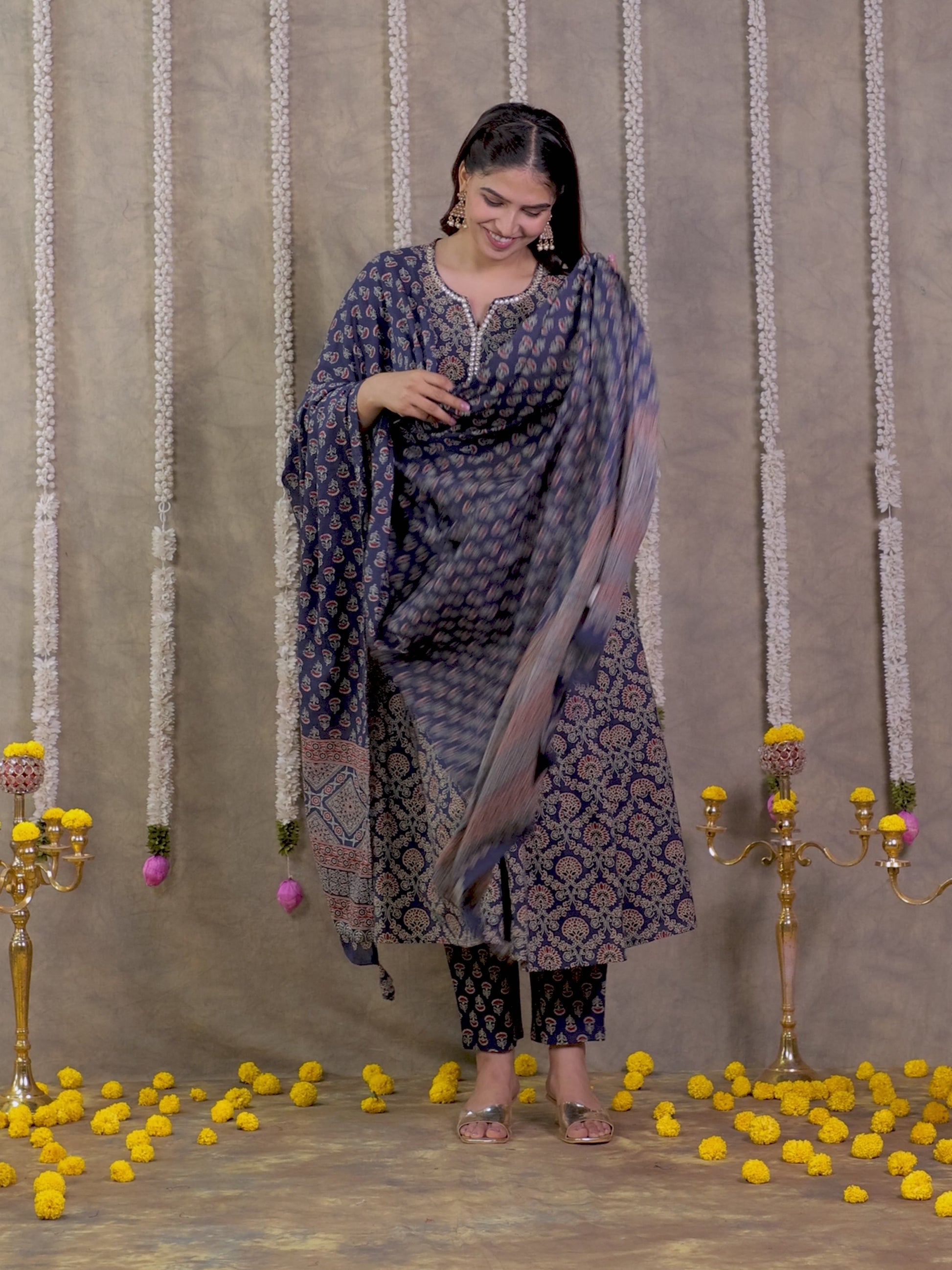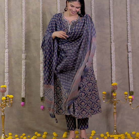 Embroidered Soft Cotton Geometric Anarkali Blue Kurta
