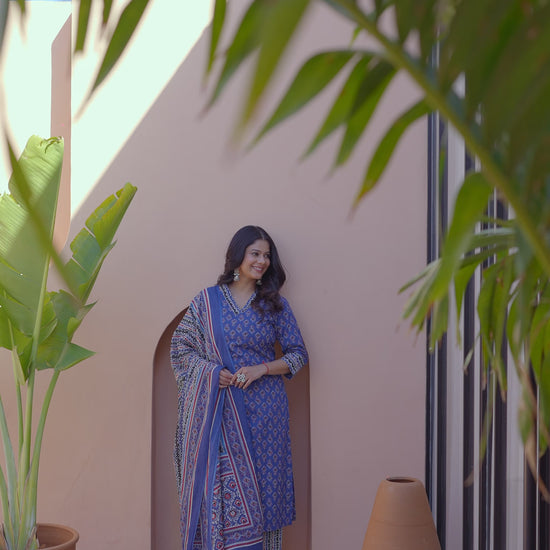 Soft Cotton Geometric A-line Indigo blue Kurta