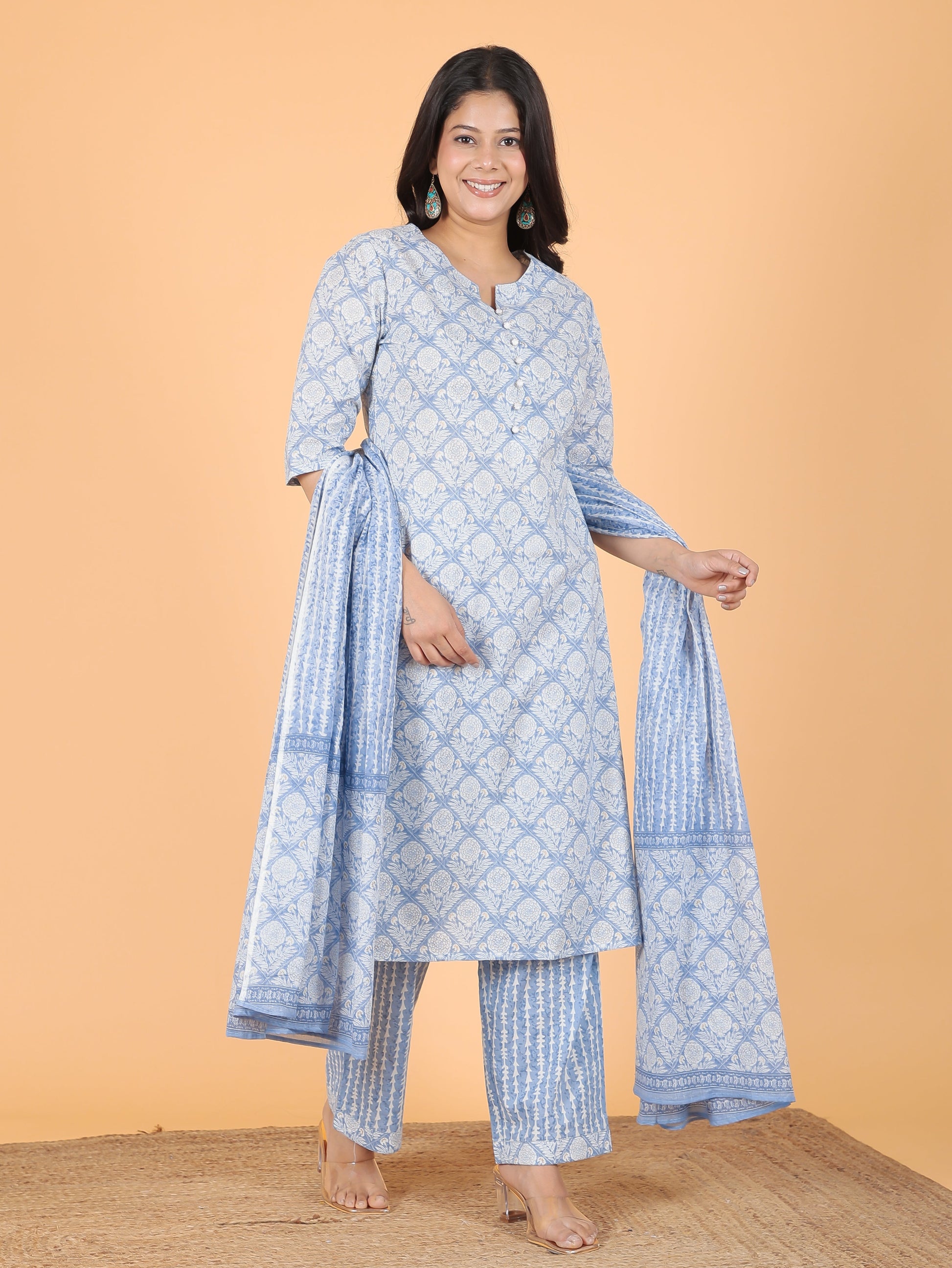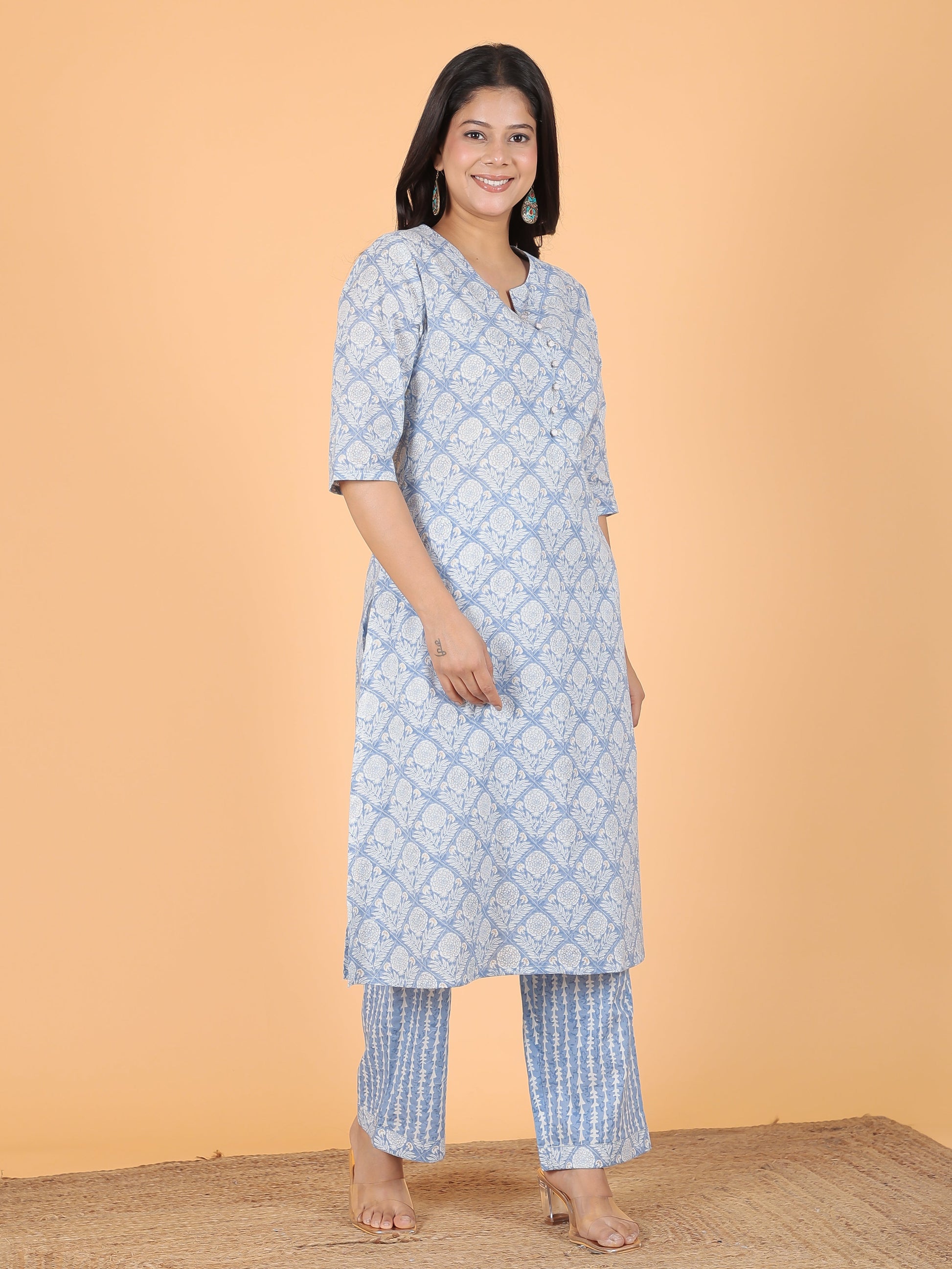 Elevate your ethnic wardrobe with this Soft Cotton kurta in a stunning Blue hue. Featuring an elegant A-line fit and striking Gold foil accents, it’s perfect for festive celebrations or family gatherings. The Round neckline and 3/4 Sleeve provide all-day comfort. Team with gold-toned accessories for an effortlessly chic vibe. Maintain its charm by following proper care instructions.