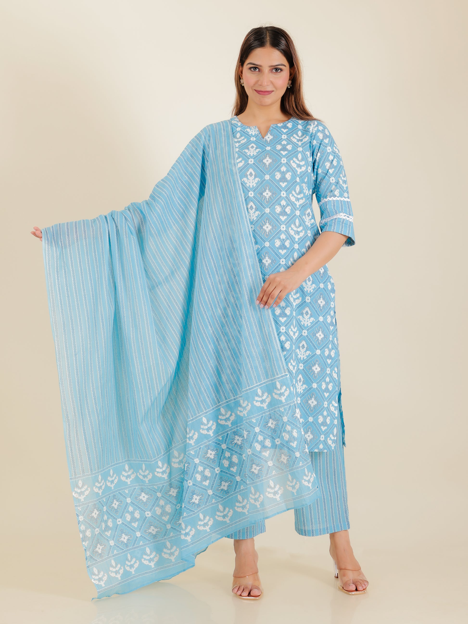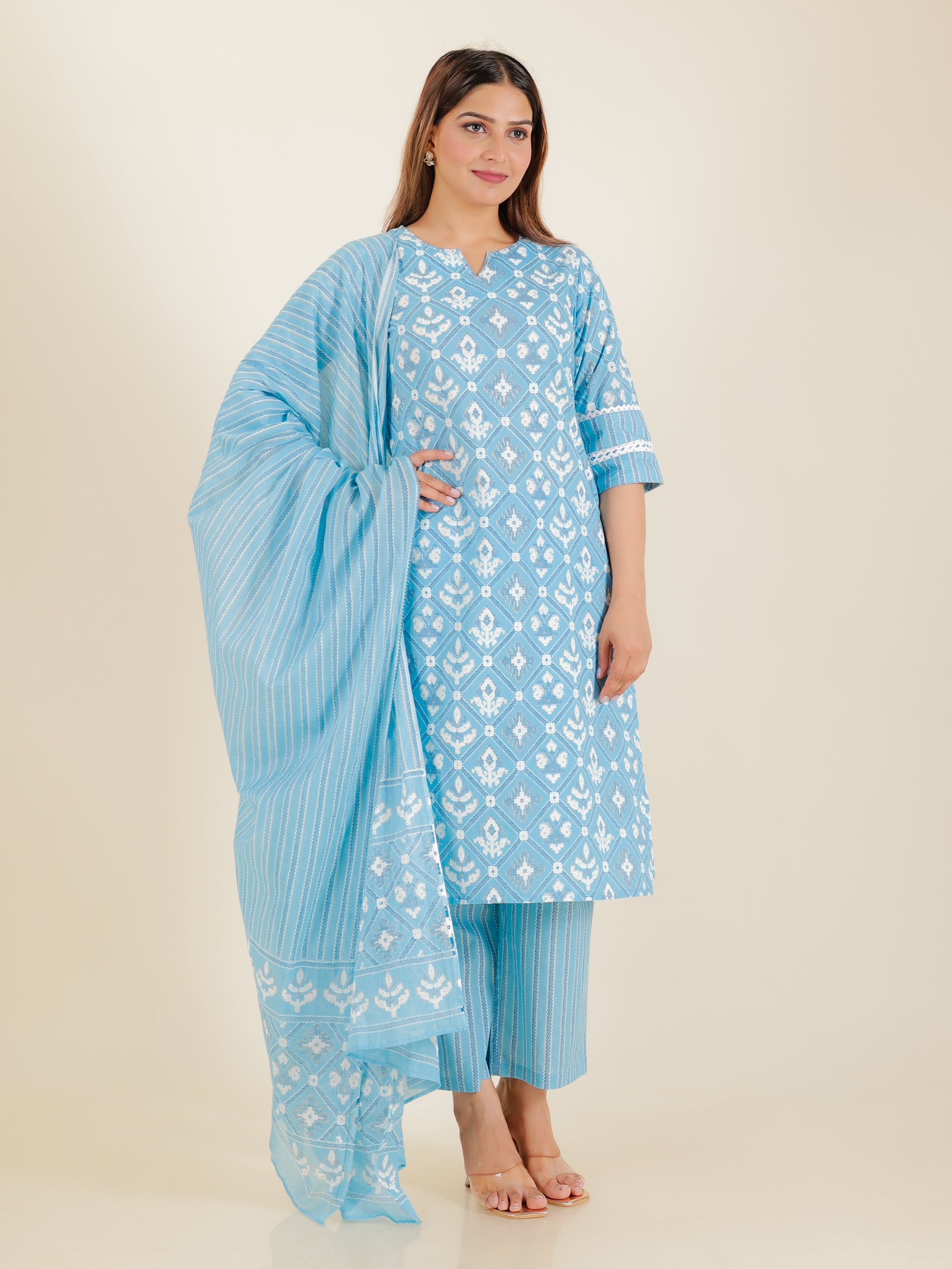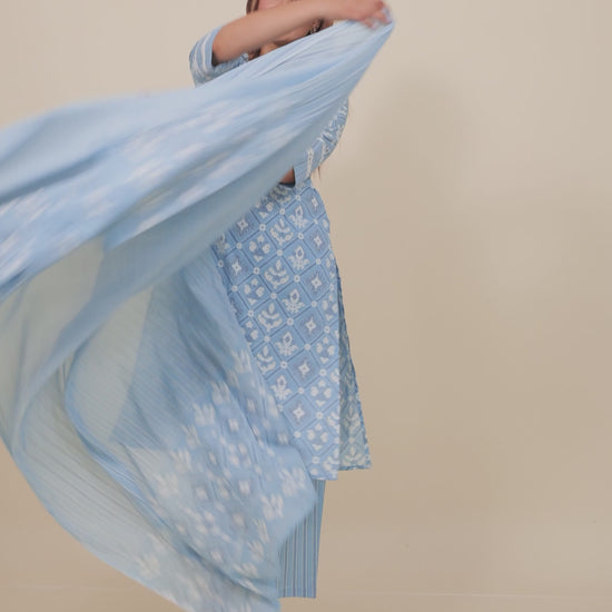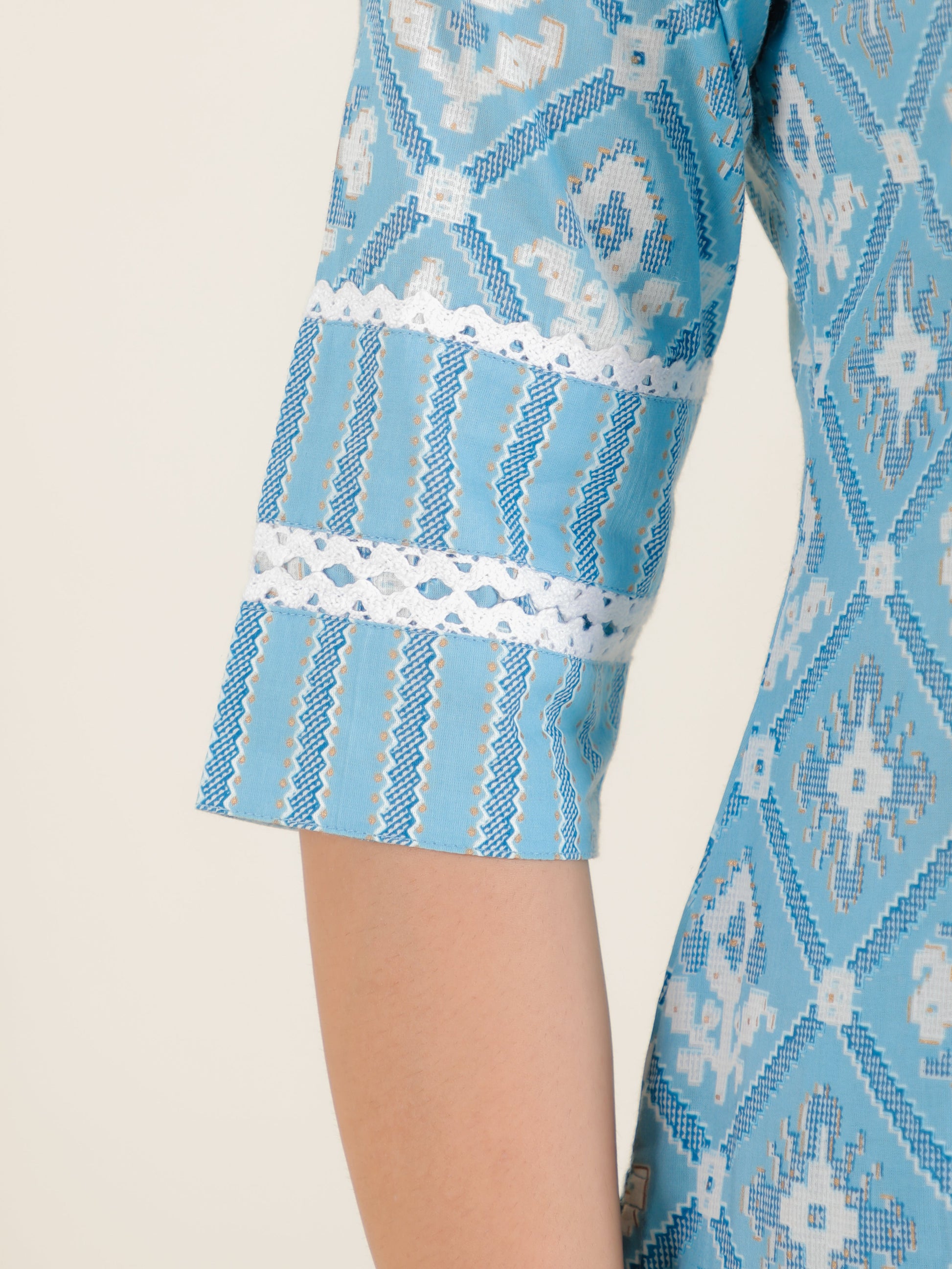Elevate your ethnic wardrobe with this Soft Cotton kurta in a stunning Blue hue. Featuring an elegant Straight fit and striking Ikat accents, it’s perfect for festive celebrations or family gatherings. The Round neckline and 3/4 Sleeve provide all-day comfort. Team with gold-toned accessories for an effortlessly chic vibe. Maintain its charm by following proper care instructions.