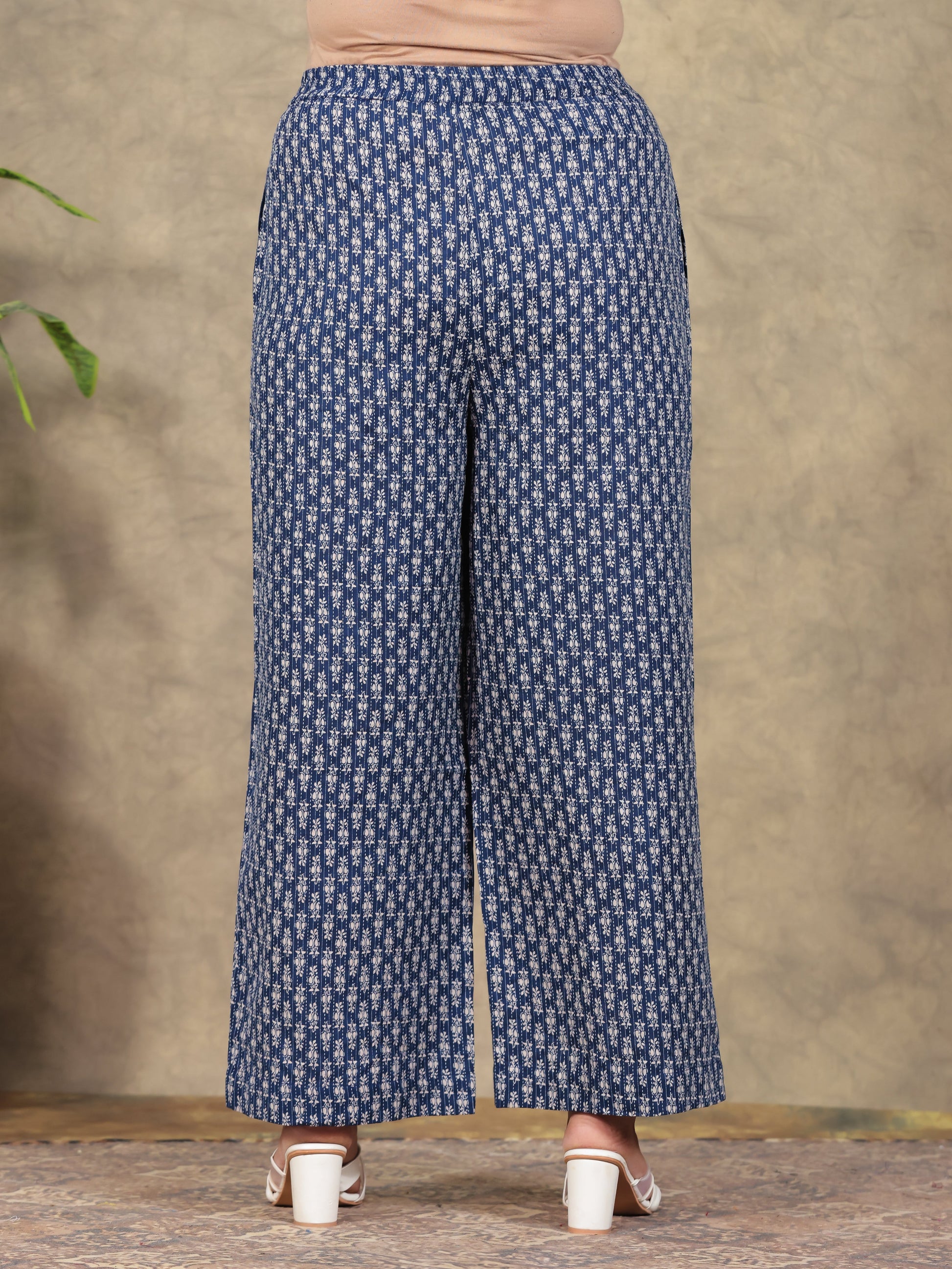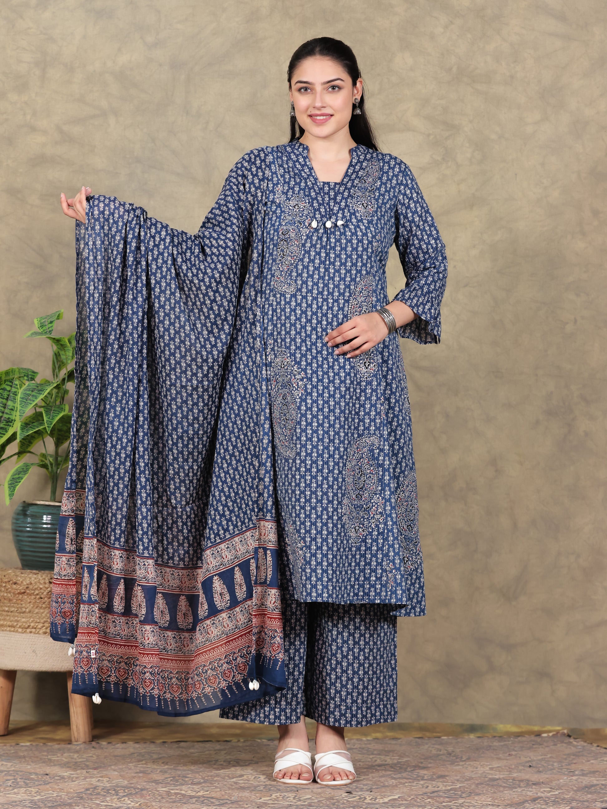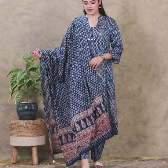 Kantha Cotton Paisley Flared Blue Kurta