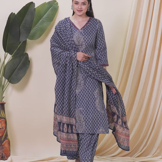 Embroidered Kantha Cotton Paisley Straight Blue Kurta