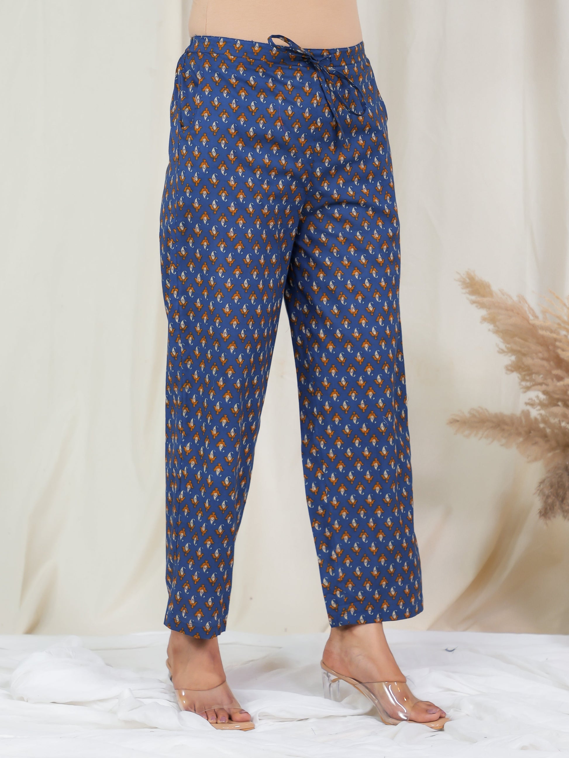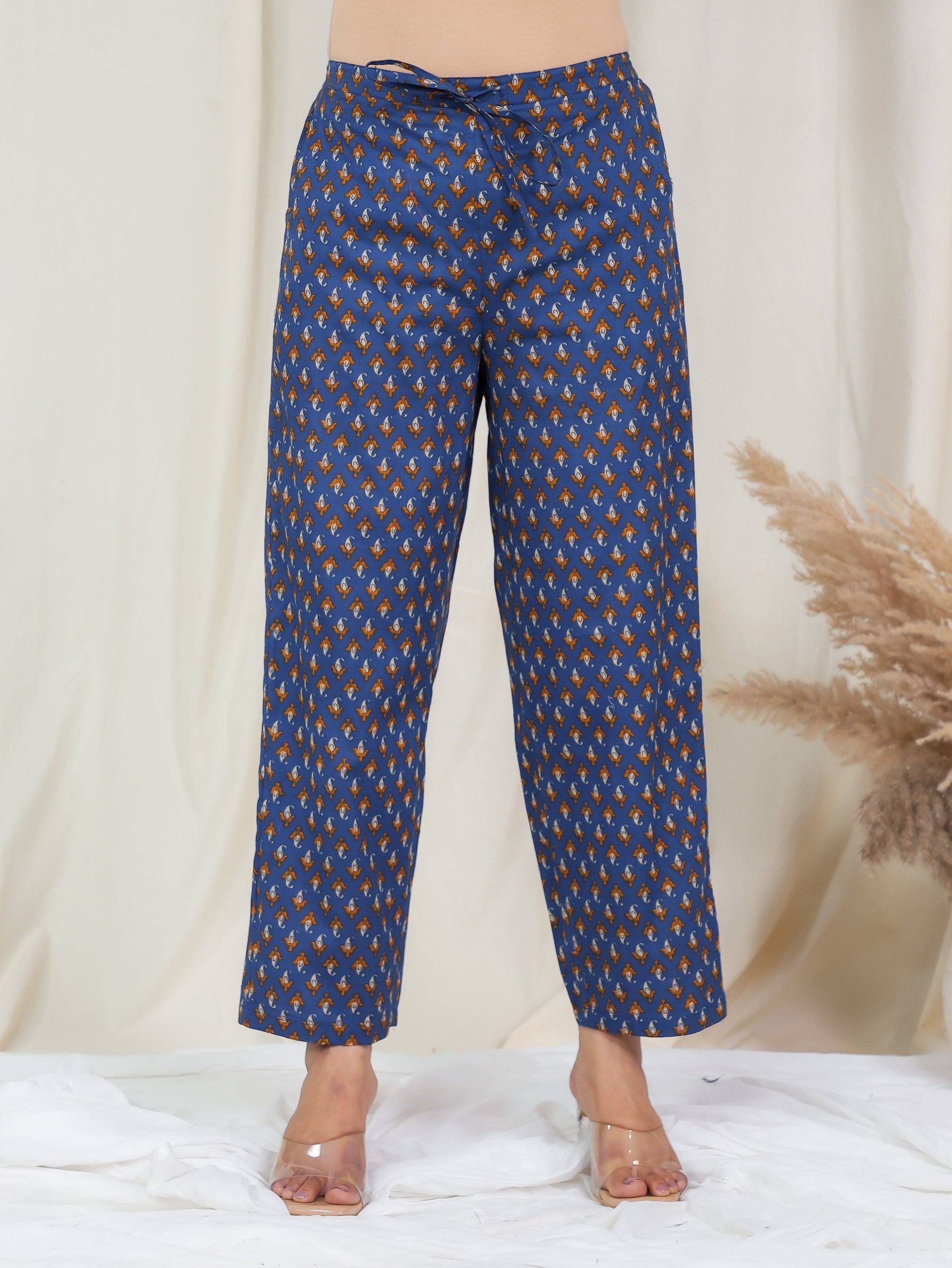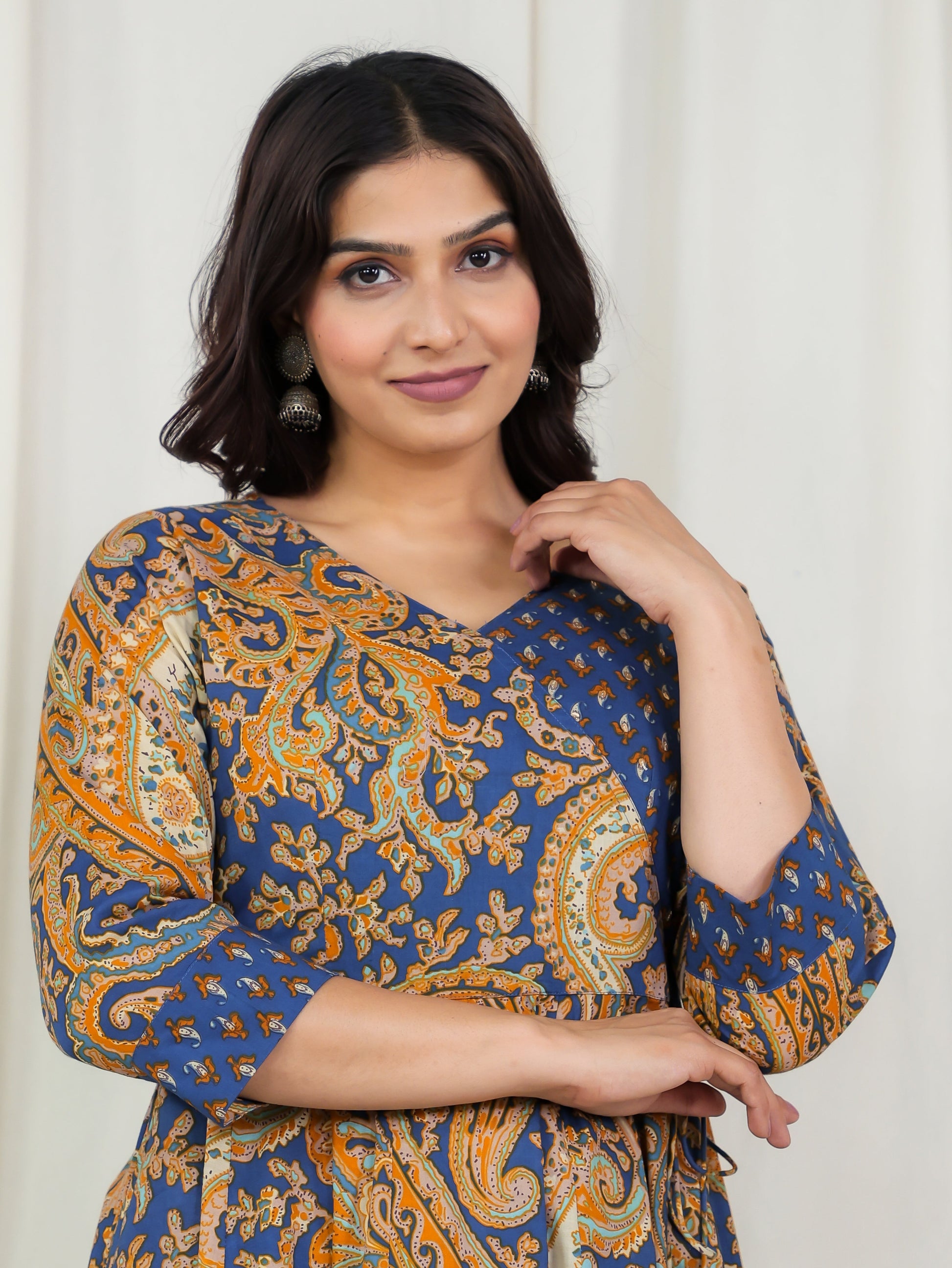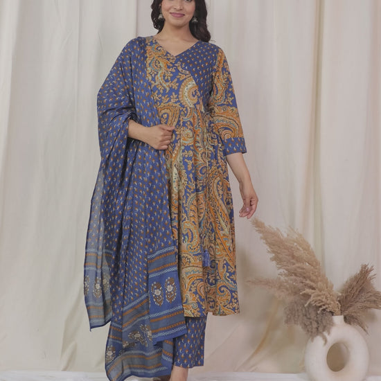 Embroidered Soft Cotton Paisley Angrakha Blue Kurta