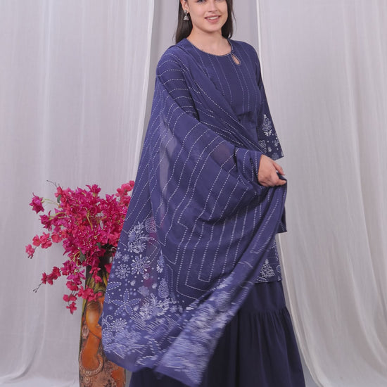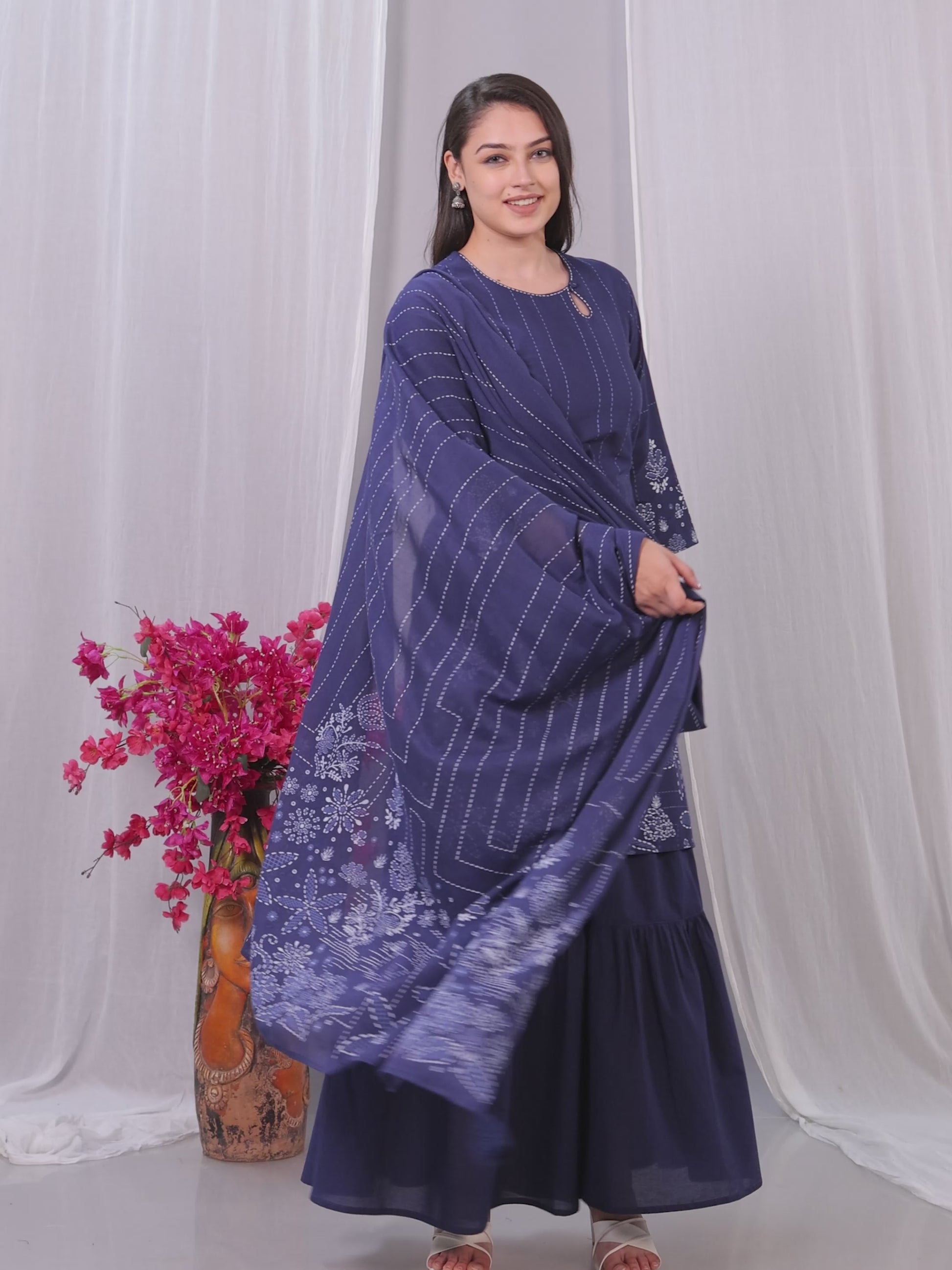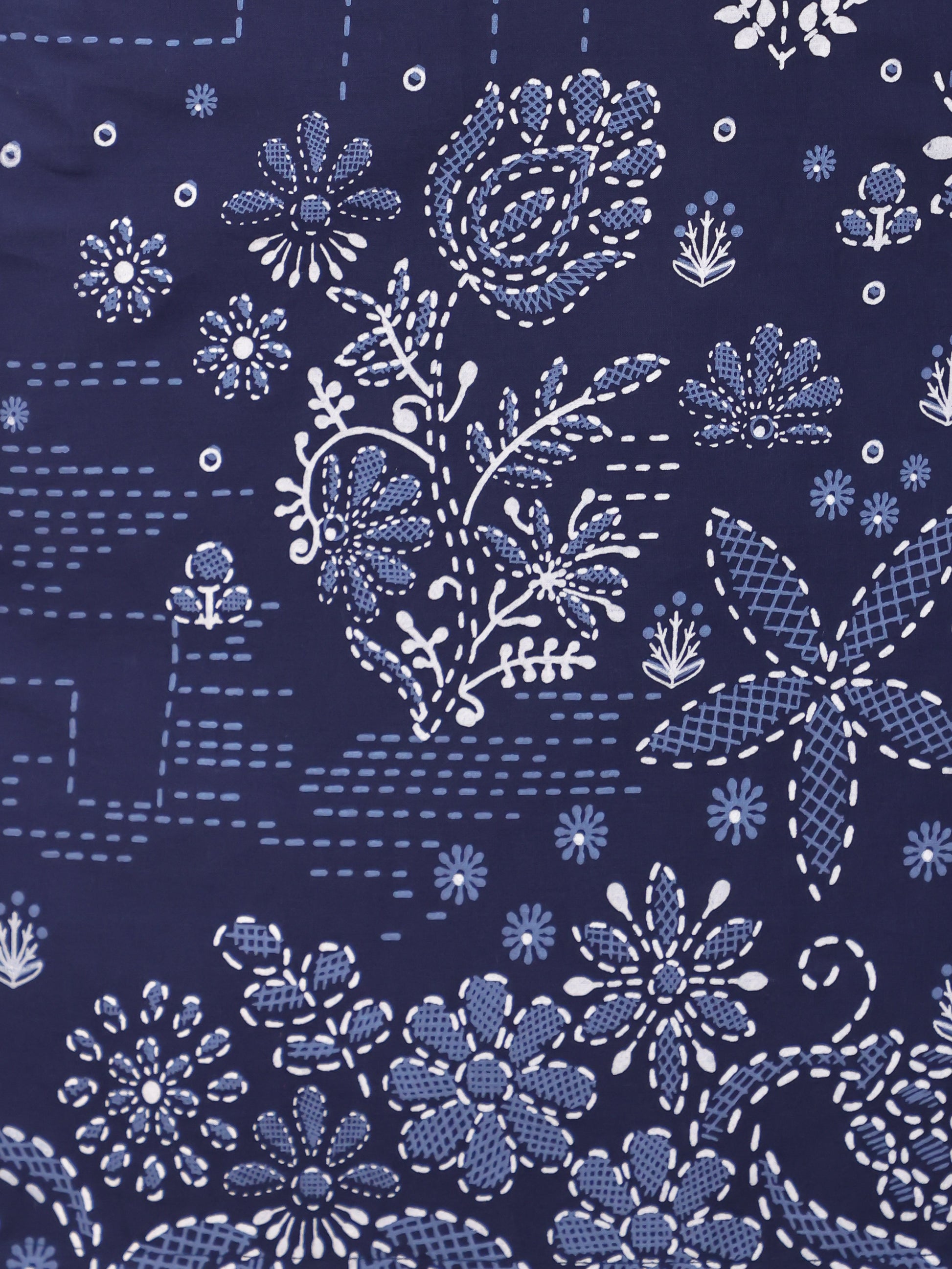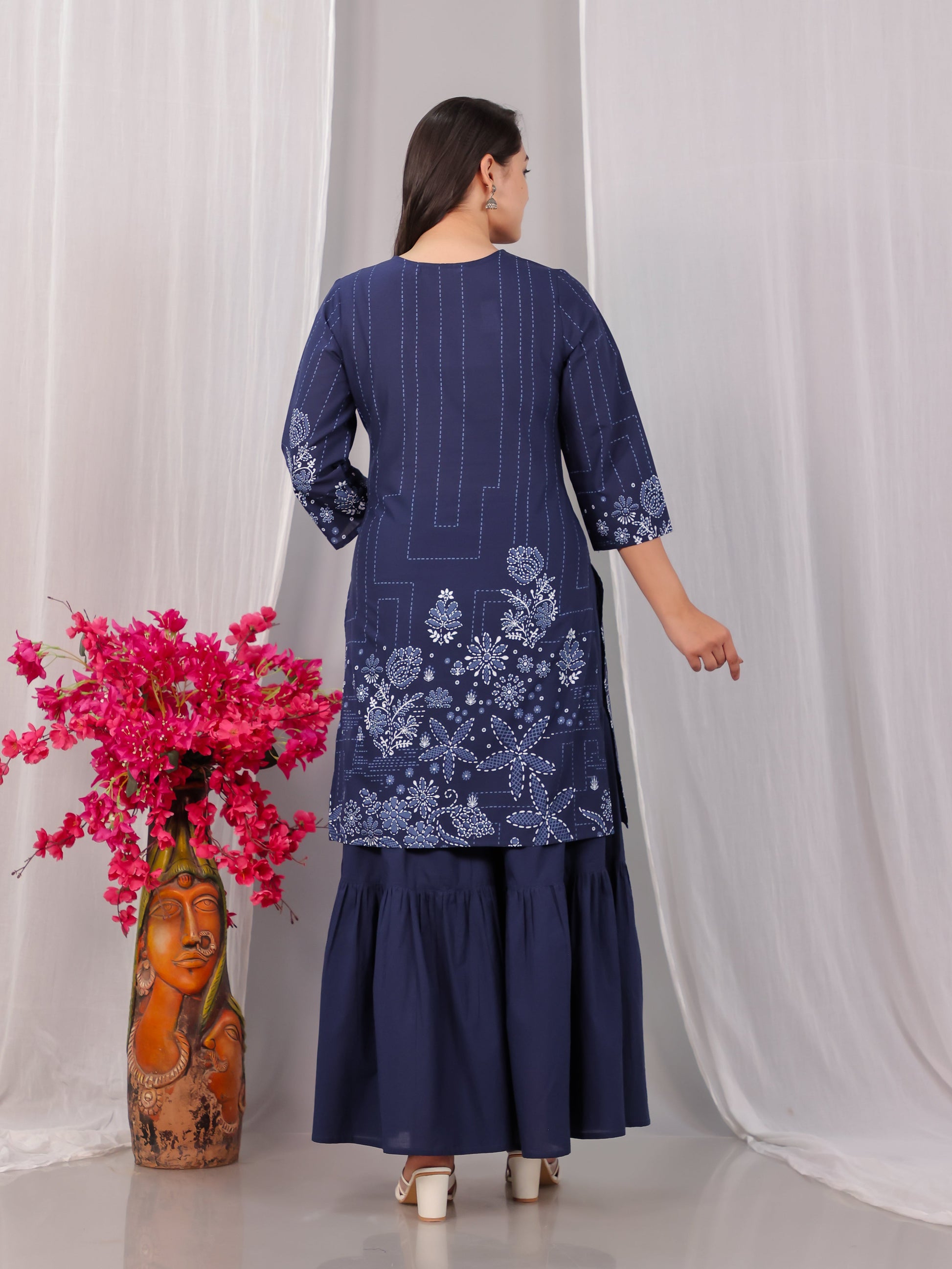 Embroidered Soft Cotton Placement Print Straight Blue Kurta