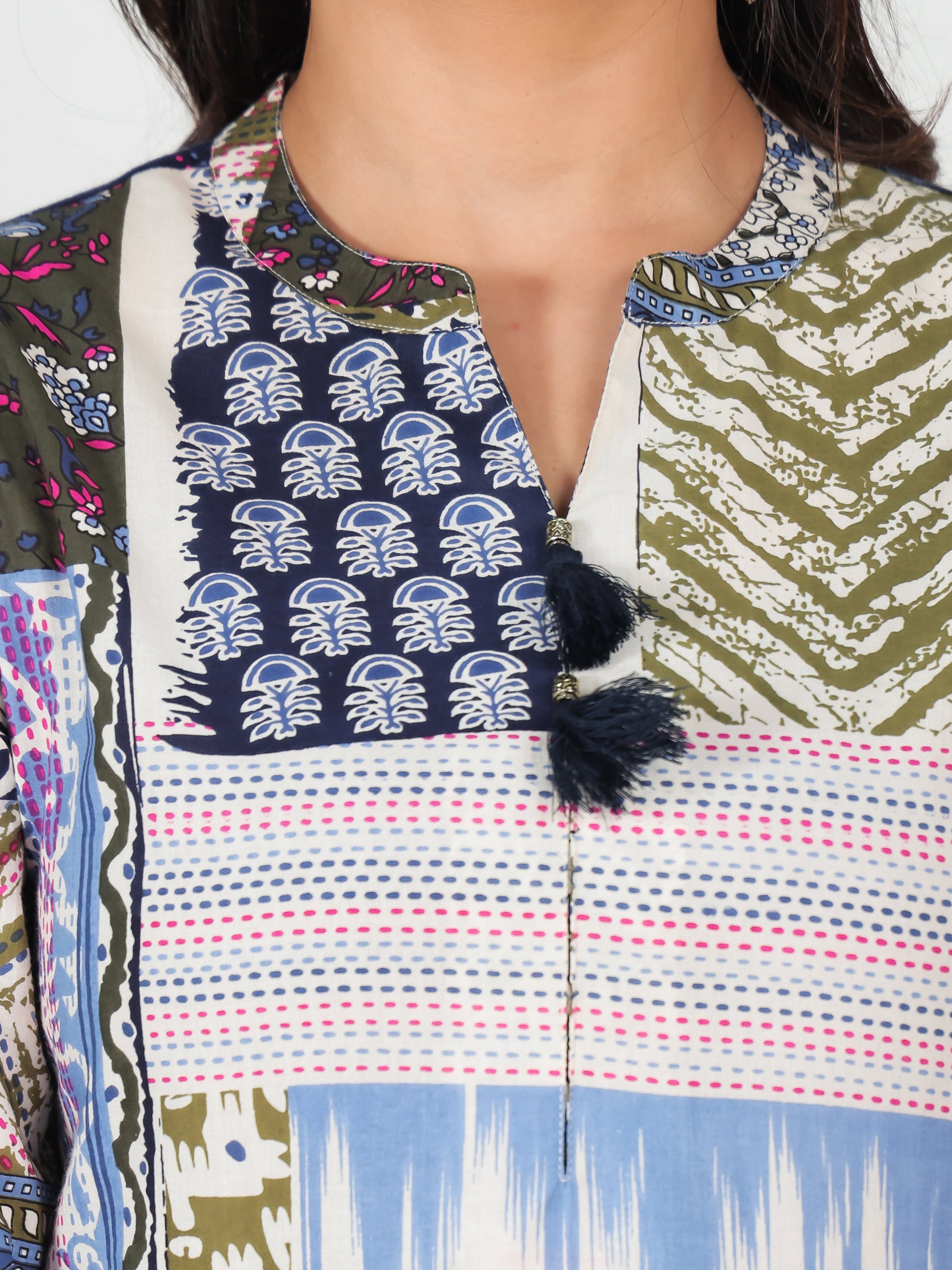 Elevate your ethnic wardrobe with this Soft Cotton kurta in a stunning Blue hue. Featuring an elegant Straight fit and striking Placement Print accents, it’s perfect for festive celebrations or family gatherings. The Mandarin Collar neckline and 3/4 Sleeve provide all-day comfort. Team with gold-toned accessories for an effortlessly chic vibe. Maintain its charm by following proper care instructions.