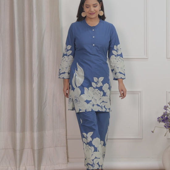 This Blue Straight kurta in soft Soft Cotton is a timeless pick for festive and casual wear. Designed with a Collared neckline and 3/4 Sleeve sleeves, its graceful Short cut flatters all body types. The delicate Placement Print detailing adds a touch of sophistication. Pair it with statement earrings and juttis for a polished look. Maintain its pristine look by following proper care instructions.