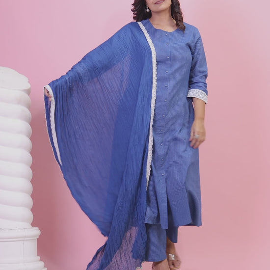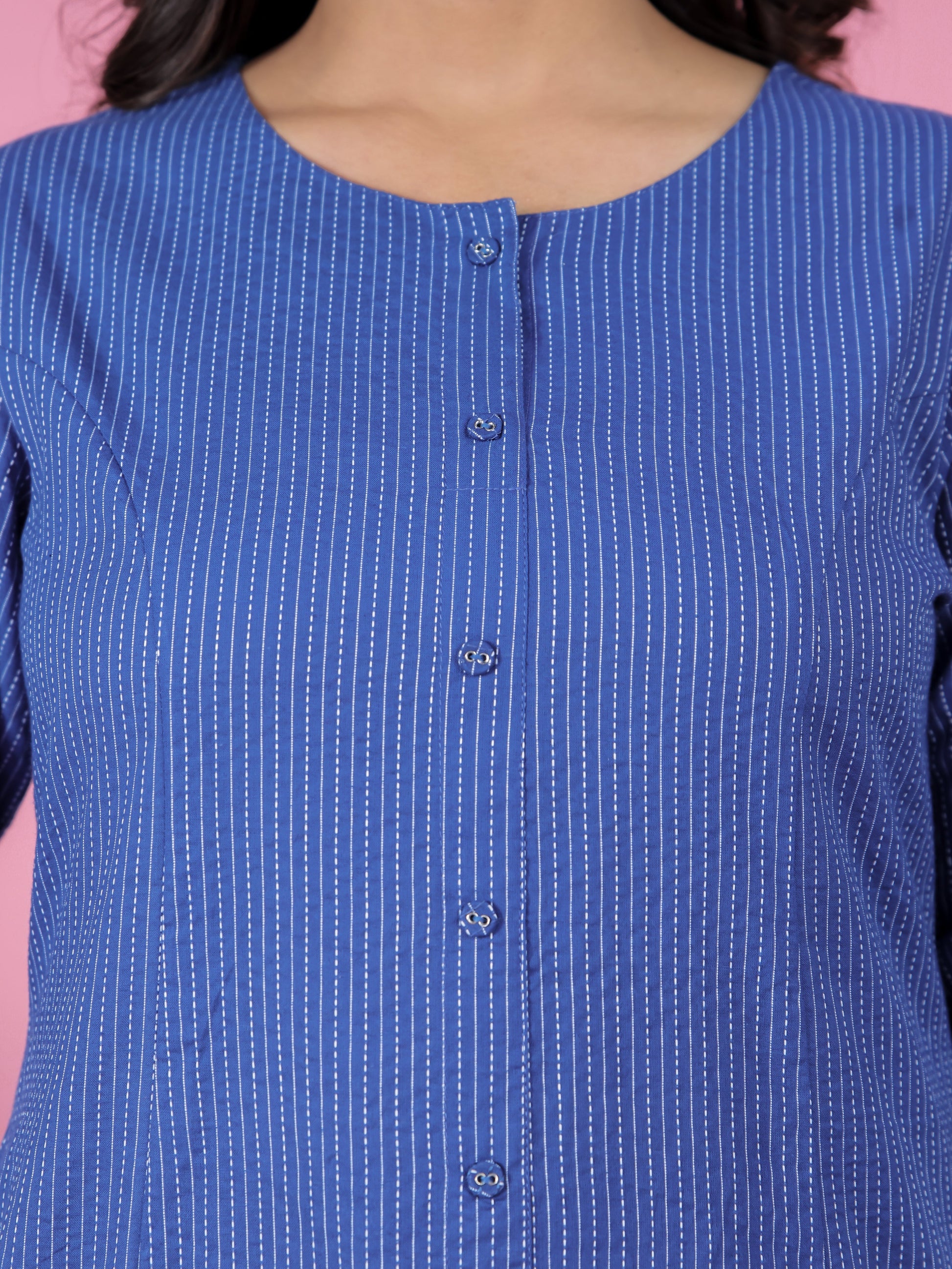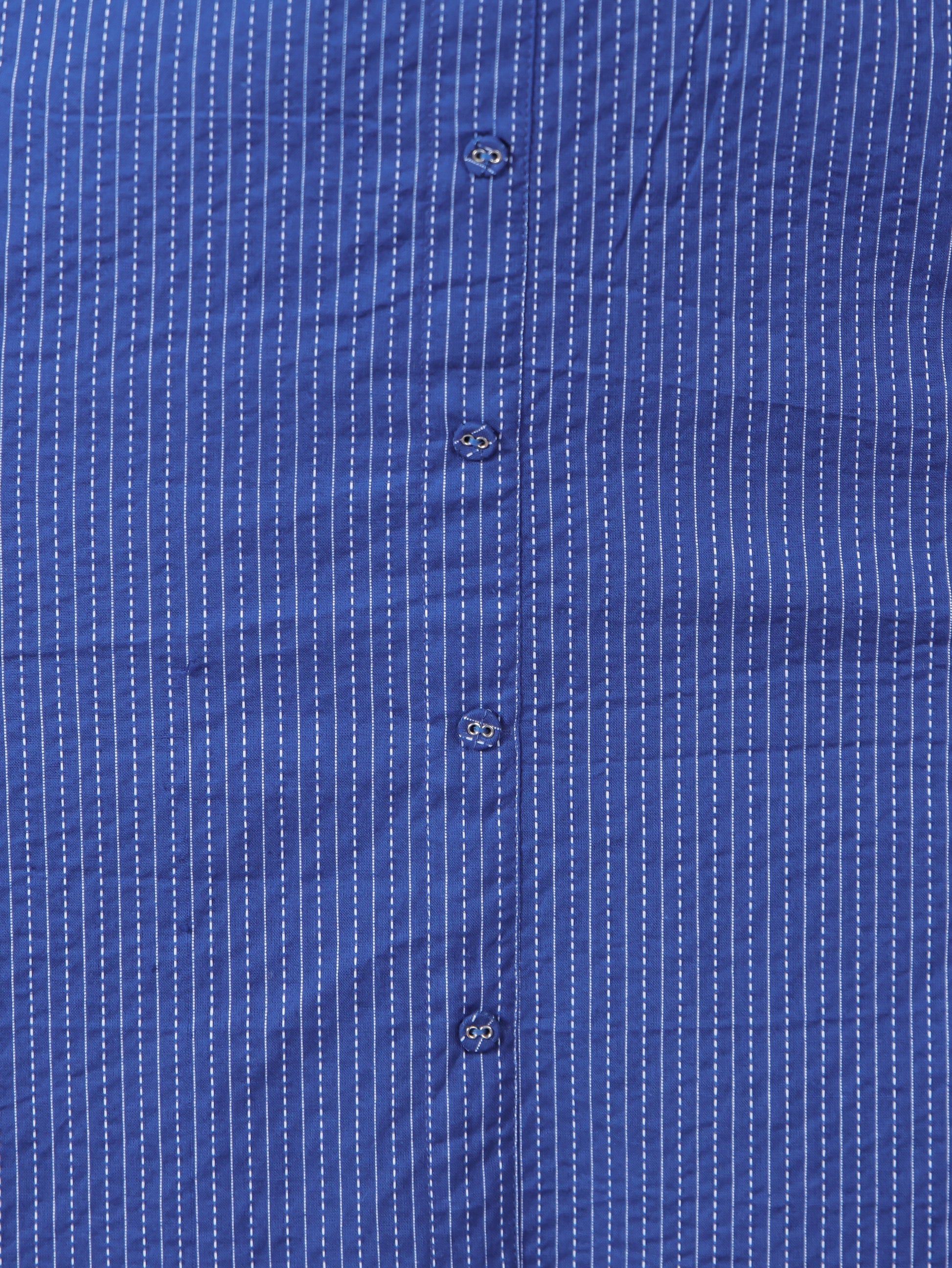 Kantha Cotton Solid Straight Blue Kurta