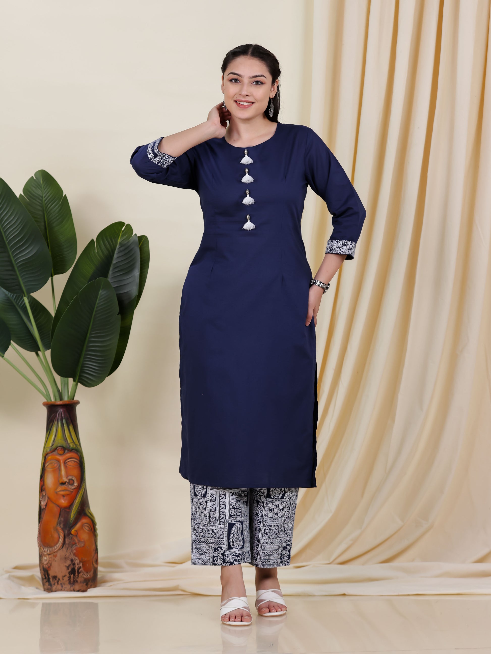 Soft Cotton Solid Straight Blue Kurta