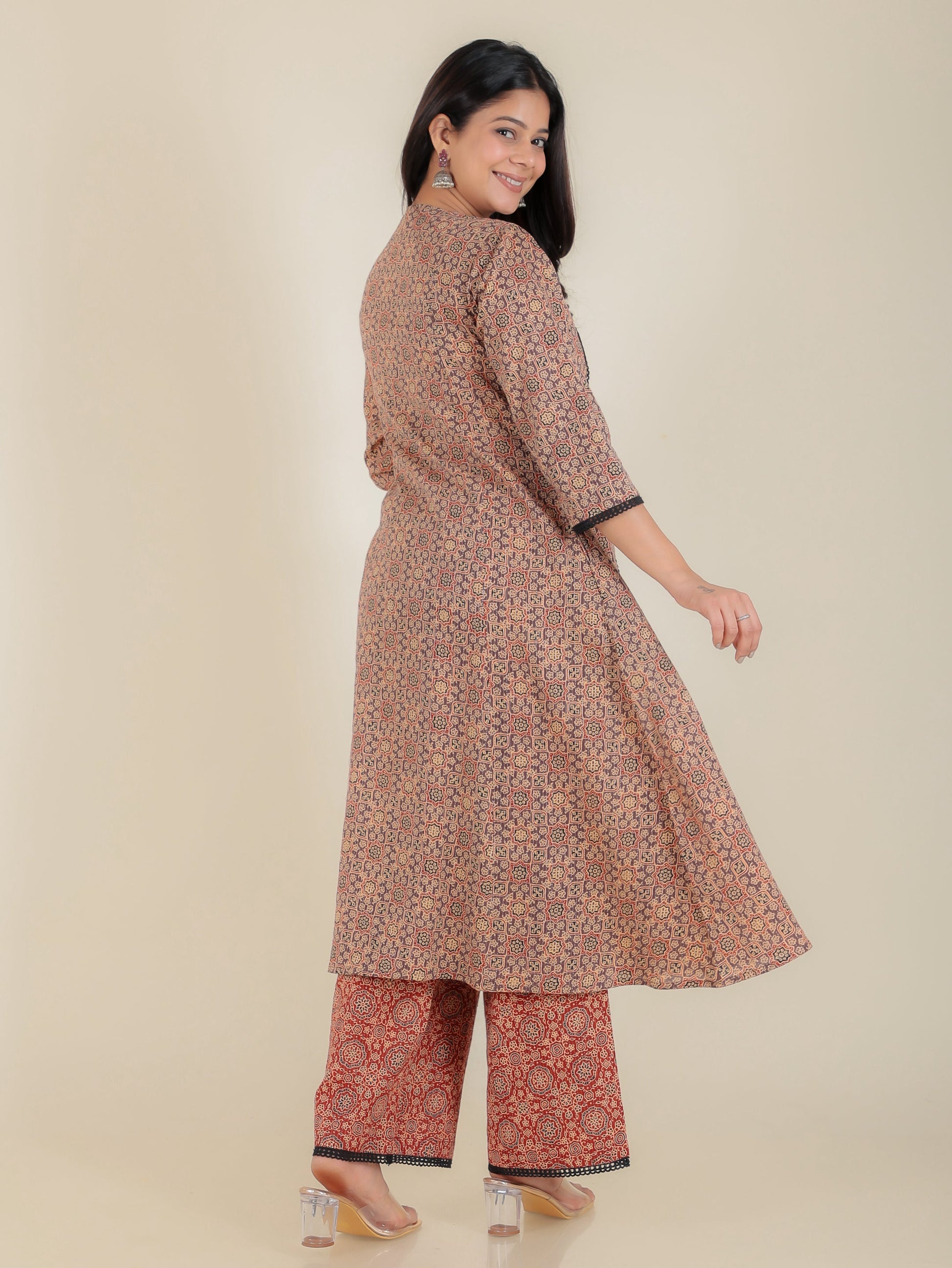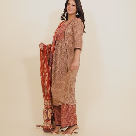 Crafted from breathable Kantha Cotton, this Panelled kurta in Brown blends traditional design with everyday comfort. The Ajrakh finish adds artisanal charm, while the Calf Length silhouette ensures effortless elegance. Style with palazzos or leggings for versatile looks, from workdays to weekend outings. Designed for easy care, this kurta stays beautiful with simple care instructions.