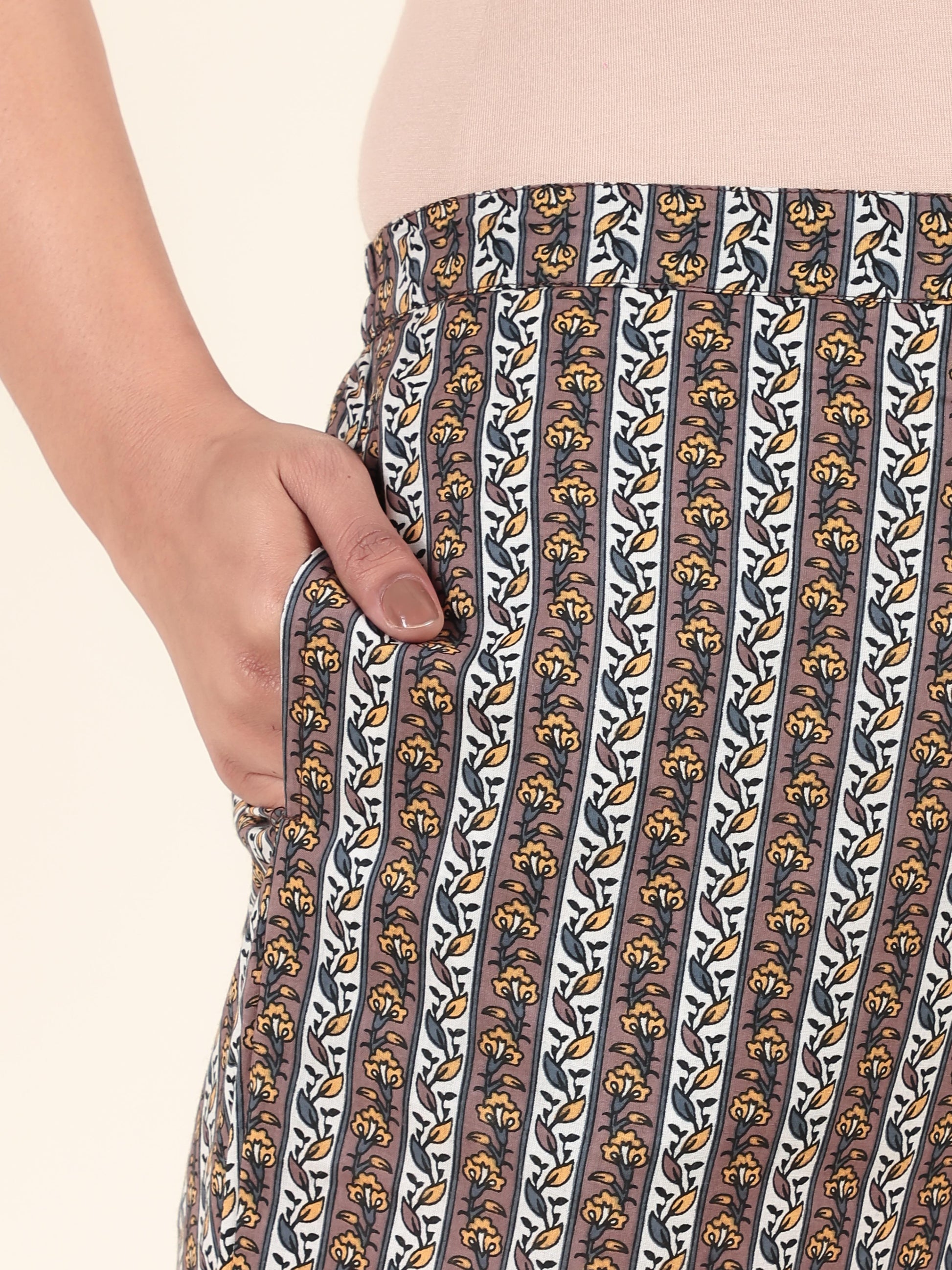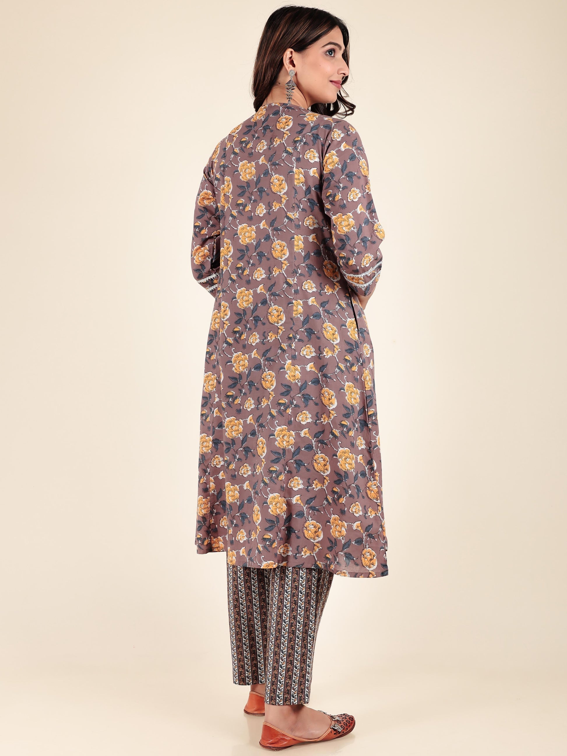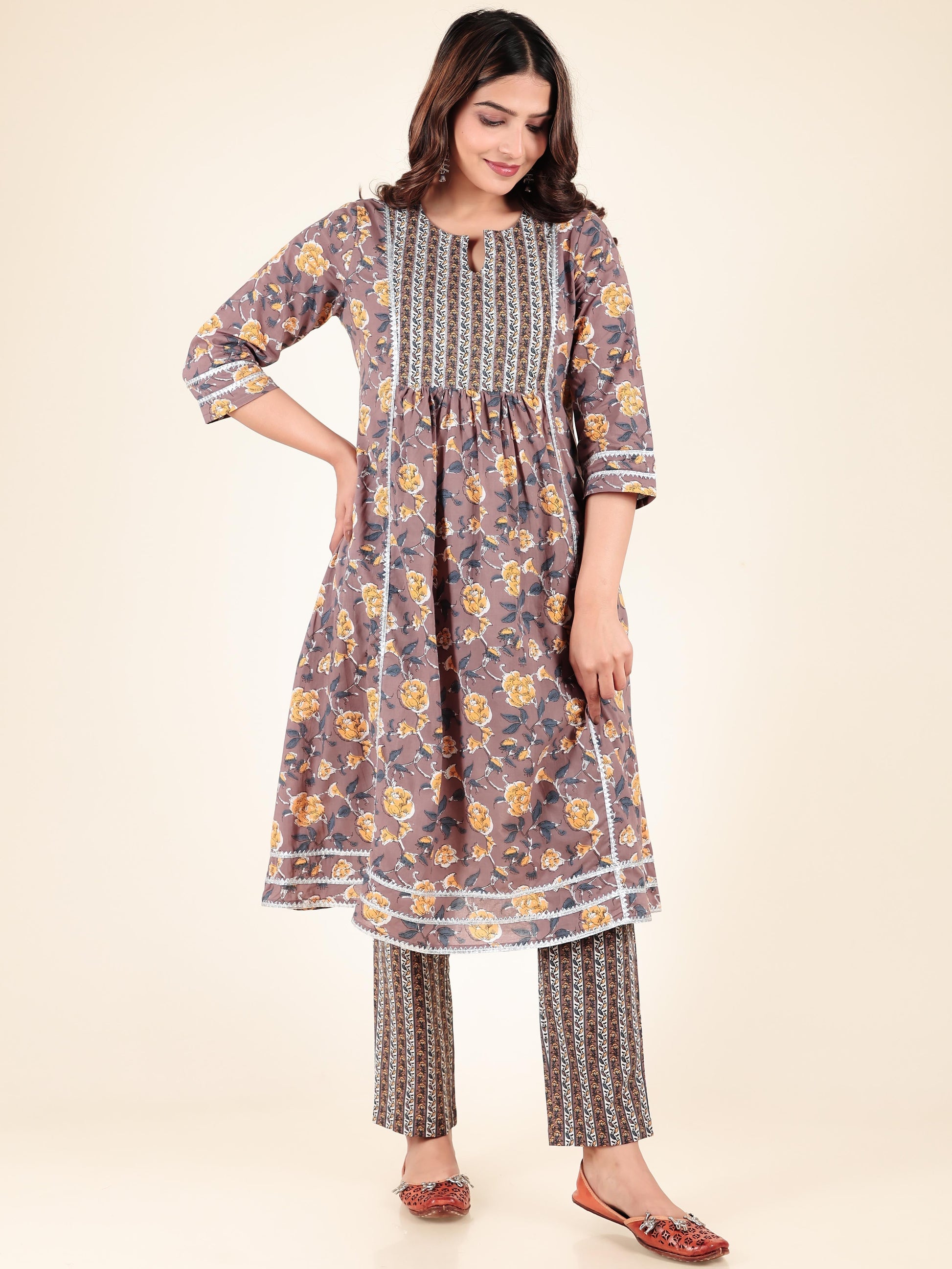 Crafted from breathable Soft Cotton, this Panelled kurta in Brown blends traditional design with everyday comfort. The Floral finish adds artisanal charm, while the Calf Length silhouette ensures effortless elegance. Style with palazzos or leggings for versatile looks, from workdays to weekend outings. Designed for easy care, this kurta stays beautiful with simple care instructions.