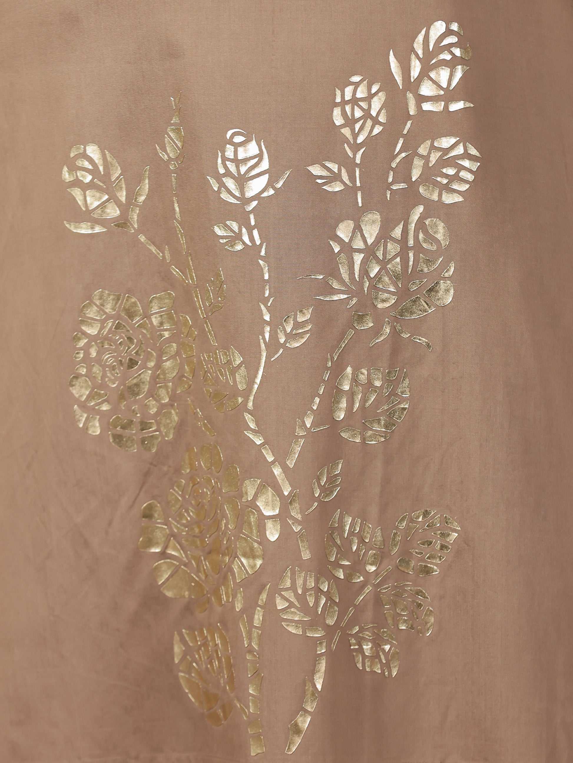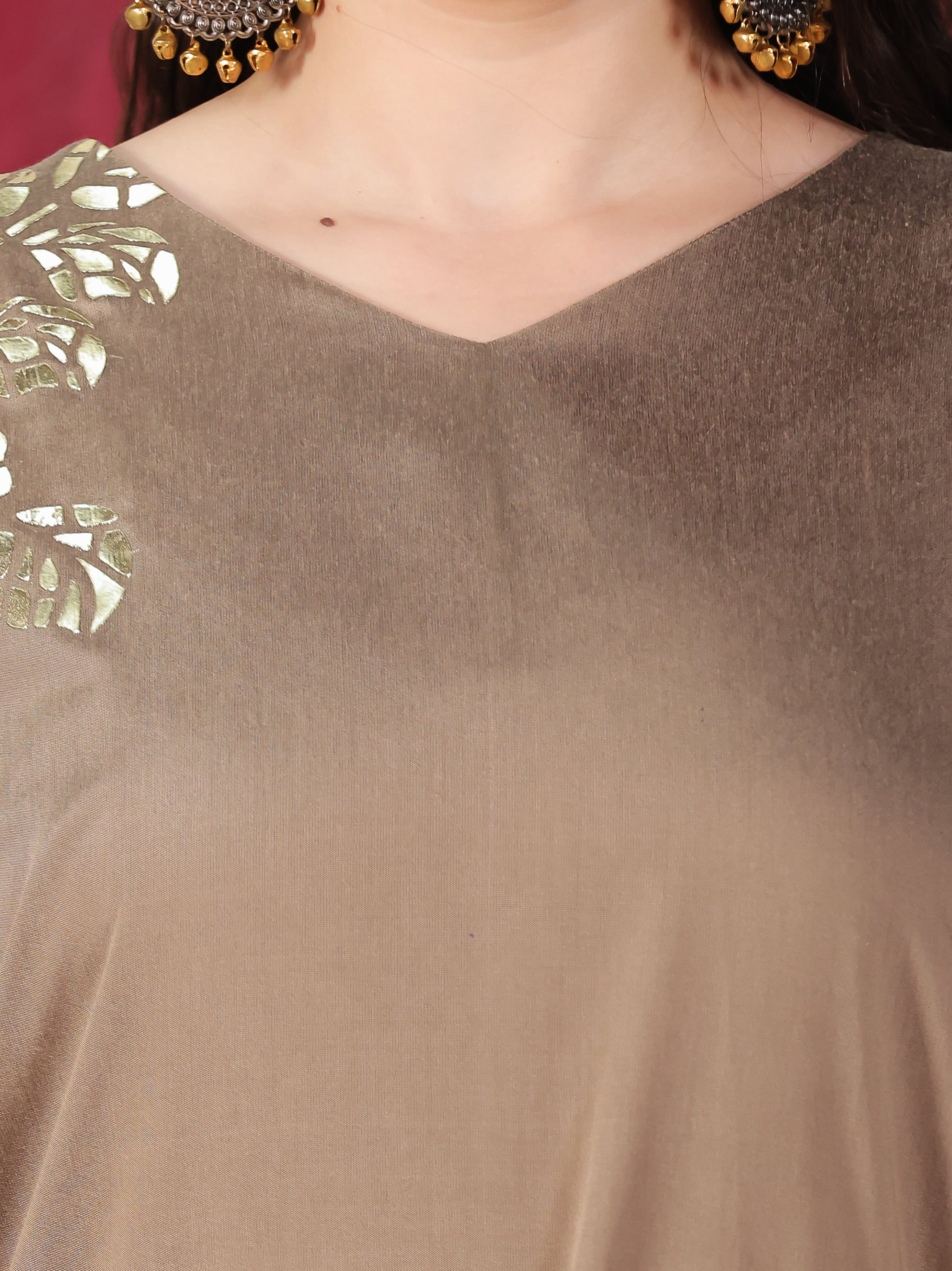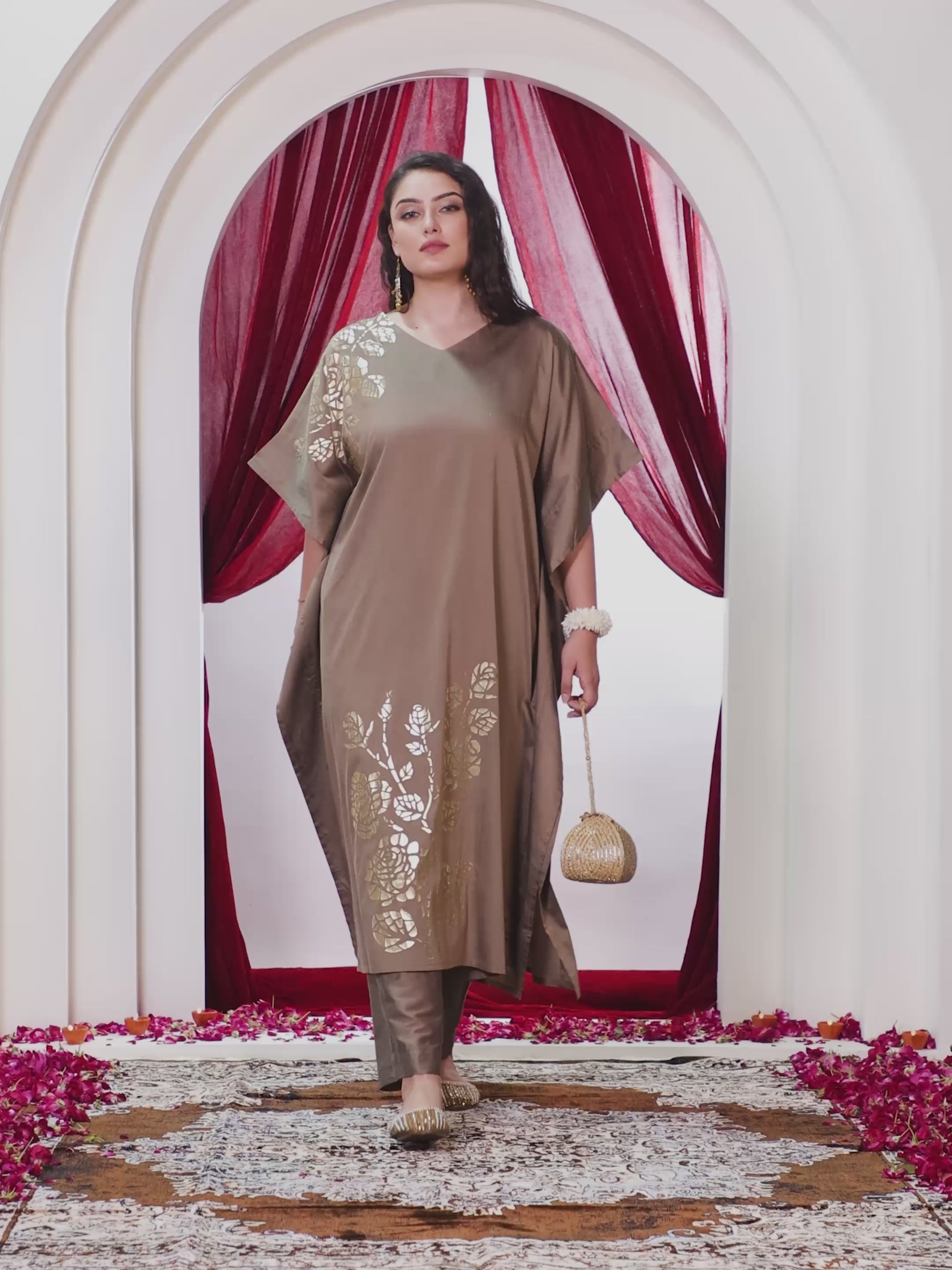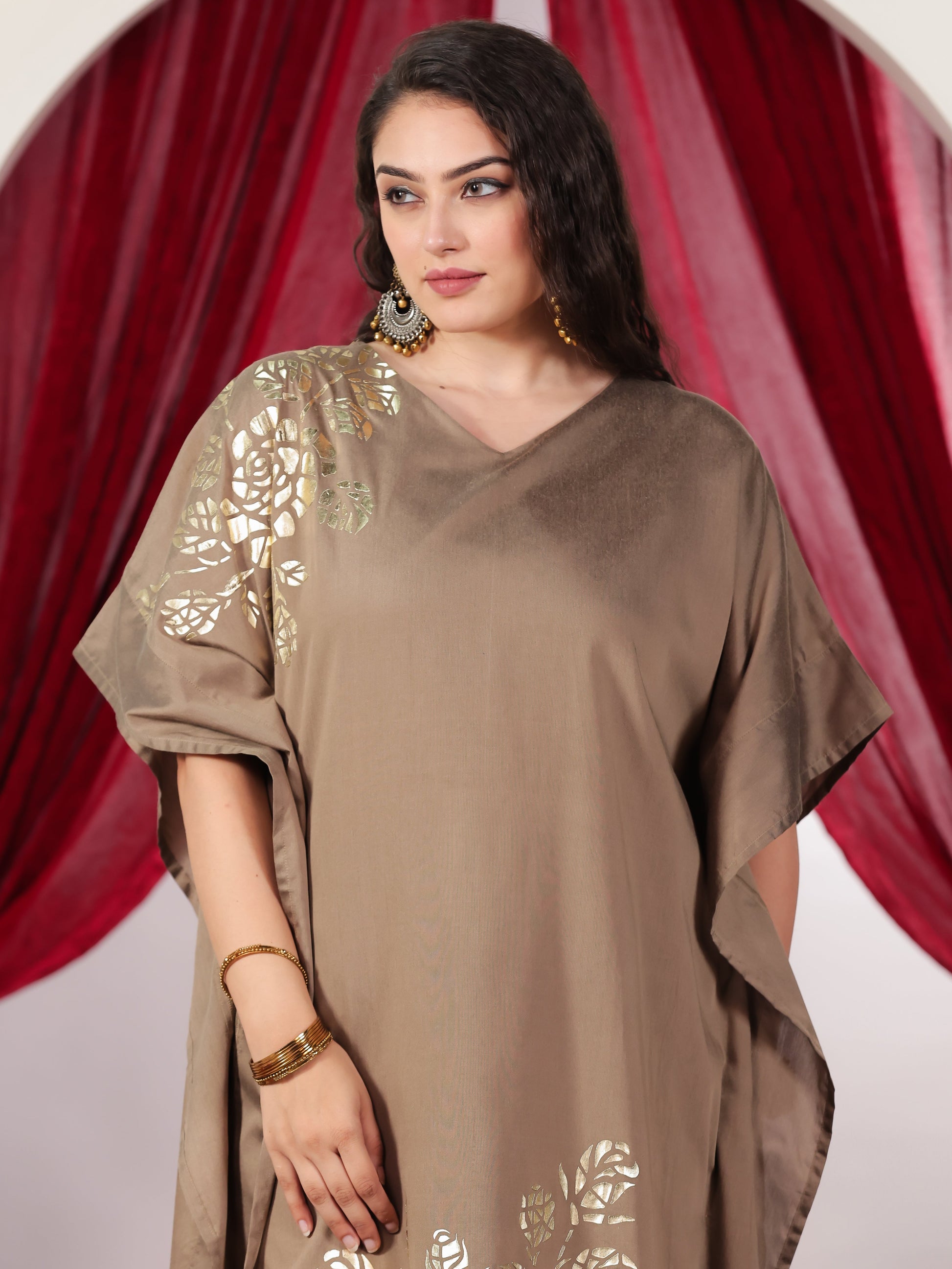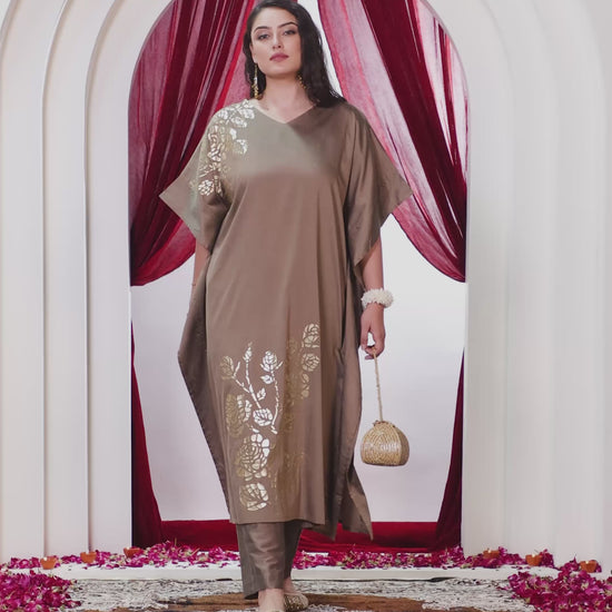 Chanderi Gold Foil Print Kaftan Brown Kurta