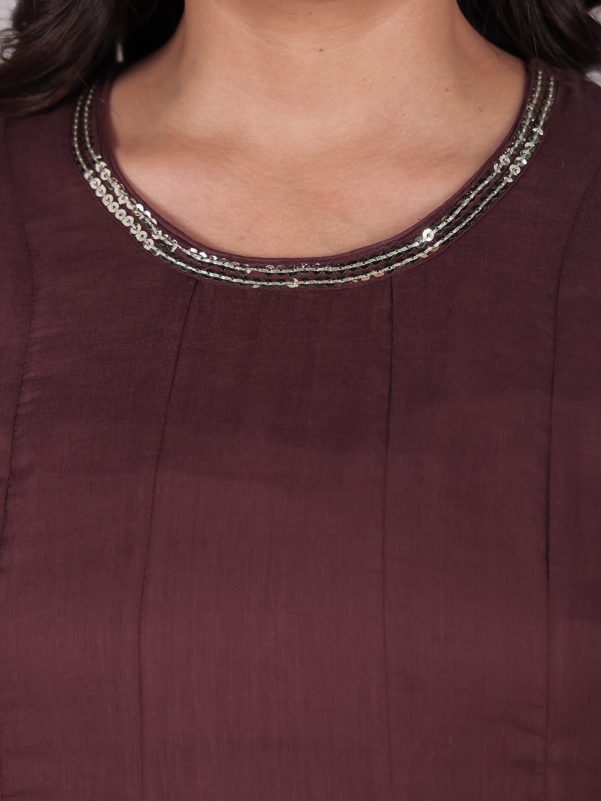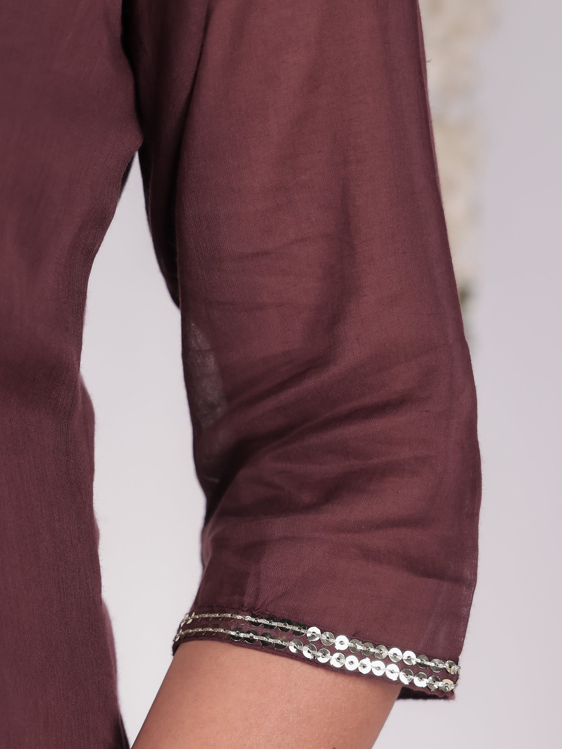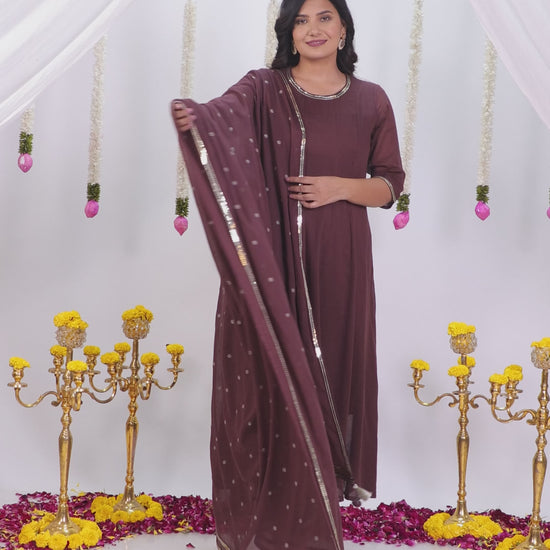 Embroidered Cotton Voile Solid Anarkali Brown Kurta