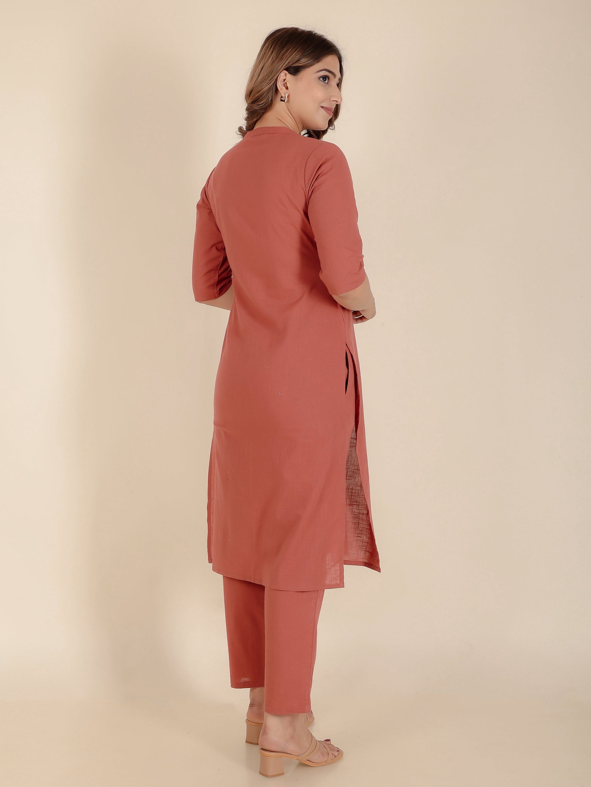 Crafted from breathable Natural Cotton, this Straight kurta in Brown blends traditional design with everyday comfort. The Solid finish adds artisanal charm, while the Calf Length silhouette ensures effortless elegance. Style with palazzos or leggings for versatile looks, from workdays to weekend outings. Designed for easy care, this kurta stays beautiful with simple care instructions.