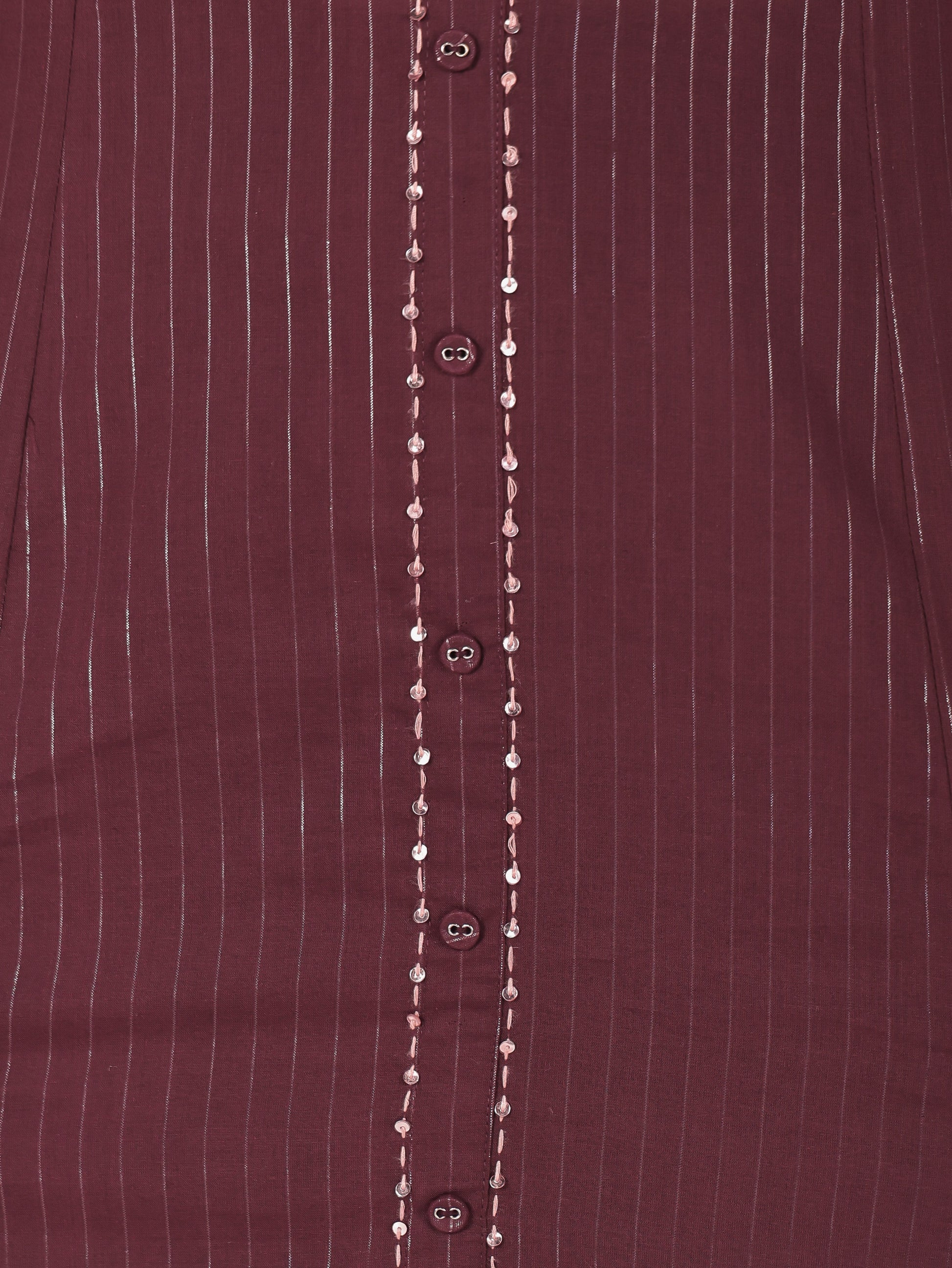 Embroidered Lurex Cotton Solid Flared Brown Kurta