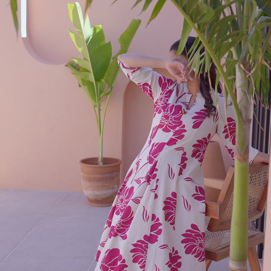 Elevate your ethnic wardrobe with this Linen Cotton kurta in a stunning Cream hue. Featuring an elegant Flared fit and striking Floral accents, it’s perfect for festive celebrations or family gatherings. The Collared neckline and 3/4 Sleeve provide all-day comfort. Team with gold-toned accessories for an effortlessly chic vibe. Maintain its charm by following proper care instructions.