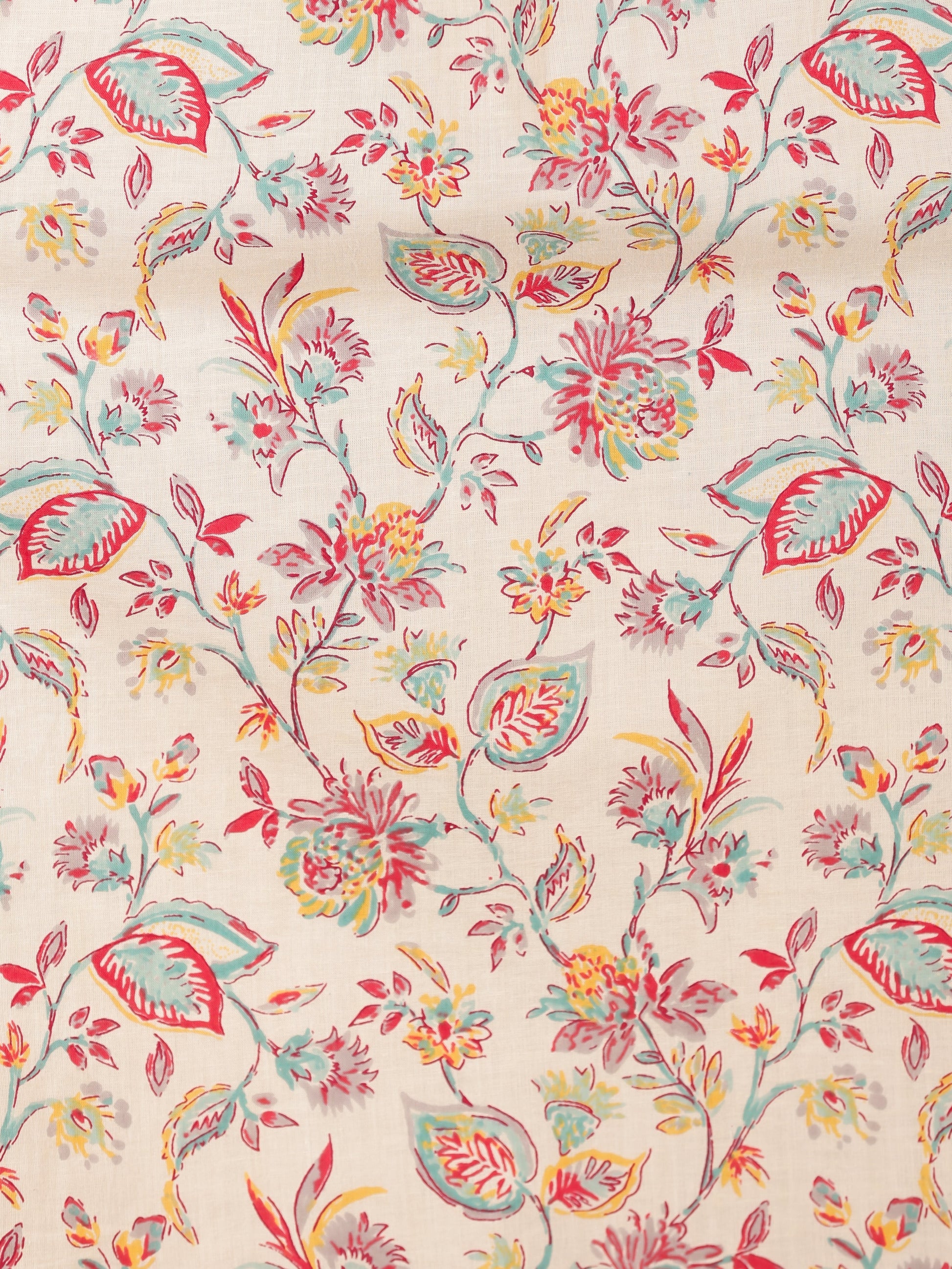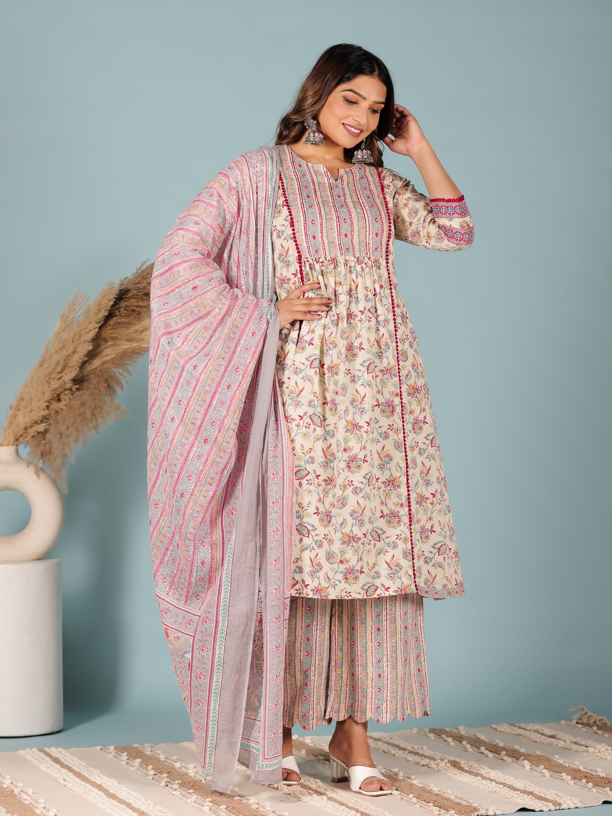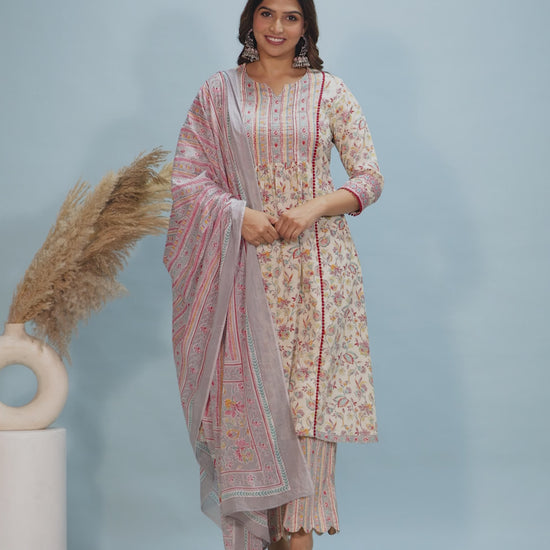 Embroidered Soft Cotton Floral Panelled Cream Kurta