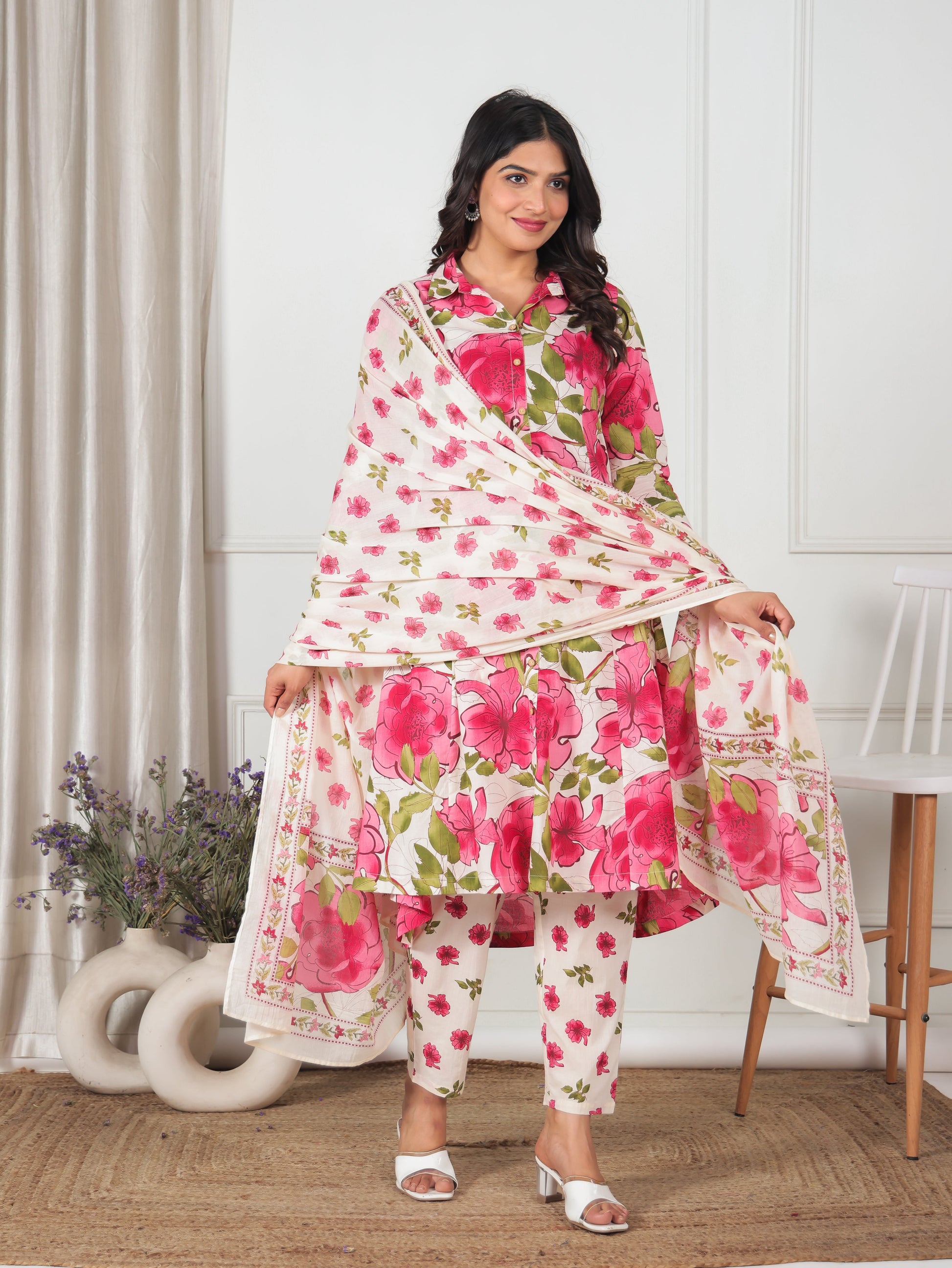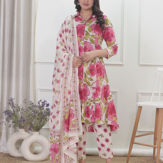 This Cream Soft Cotton kurta with a High Low flare is designed for comfort and style. Featuring a Collared neckline, 3/4 Sleeve sleeves, and a graceful Calf Length hemline, it’s perfect for festive wear or semi-formal gatherings. The Floral highlights add depth and texture, making it a standout piece. Accessorise with a contrasting dupatta and keep it pristine by following proper care instructions.