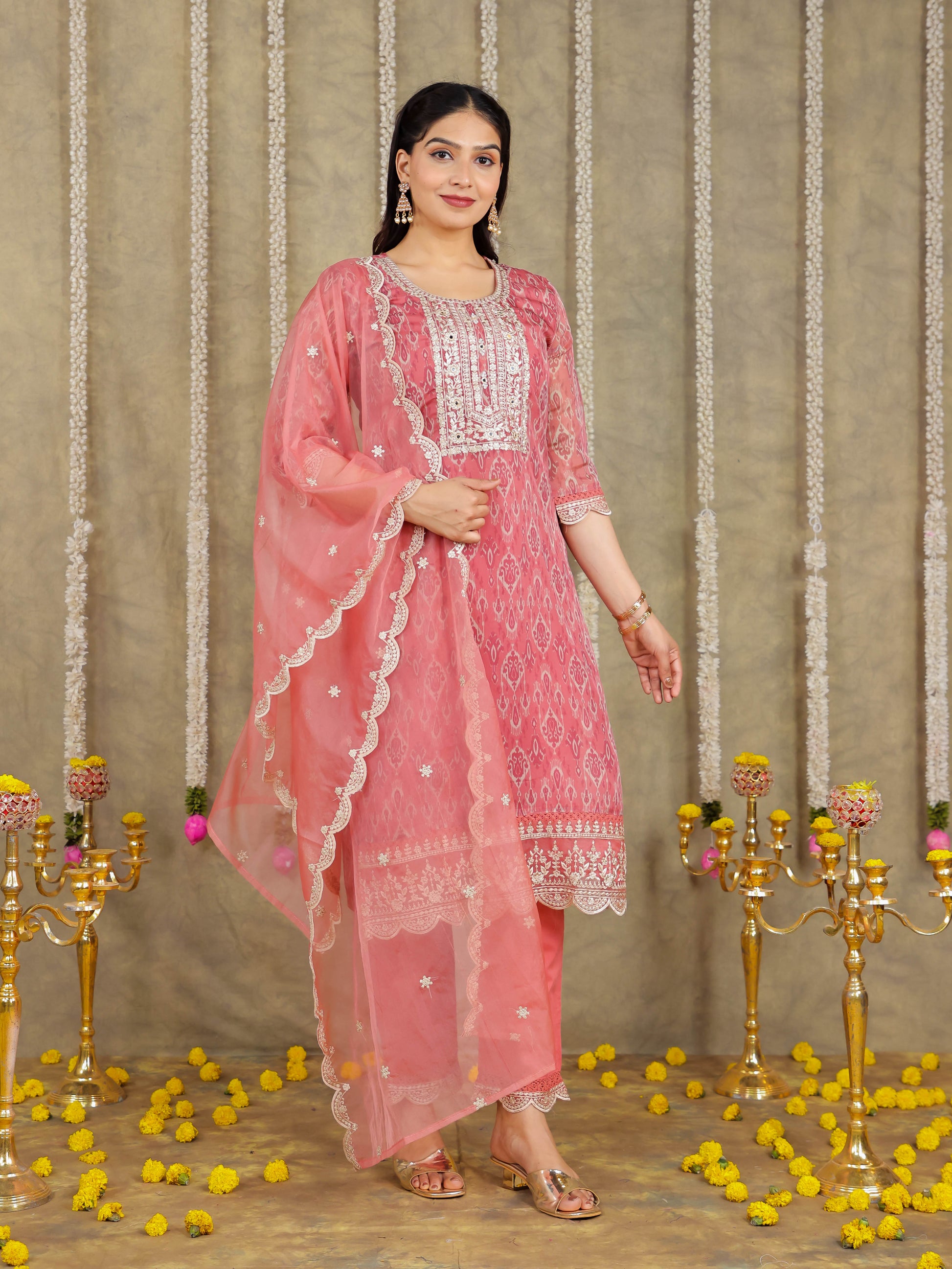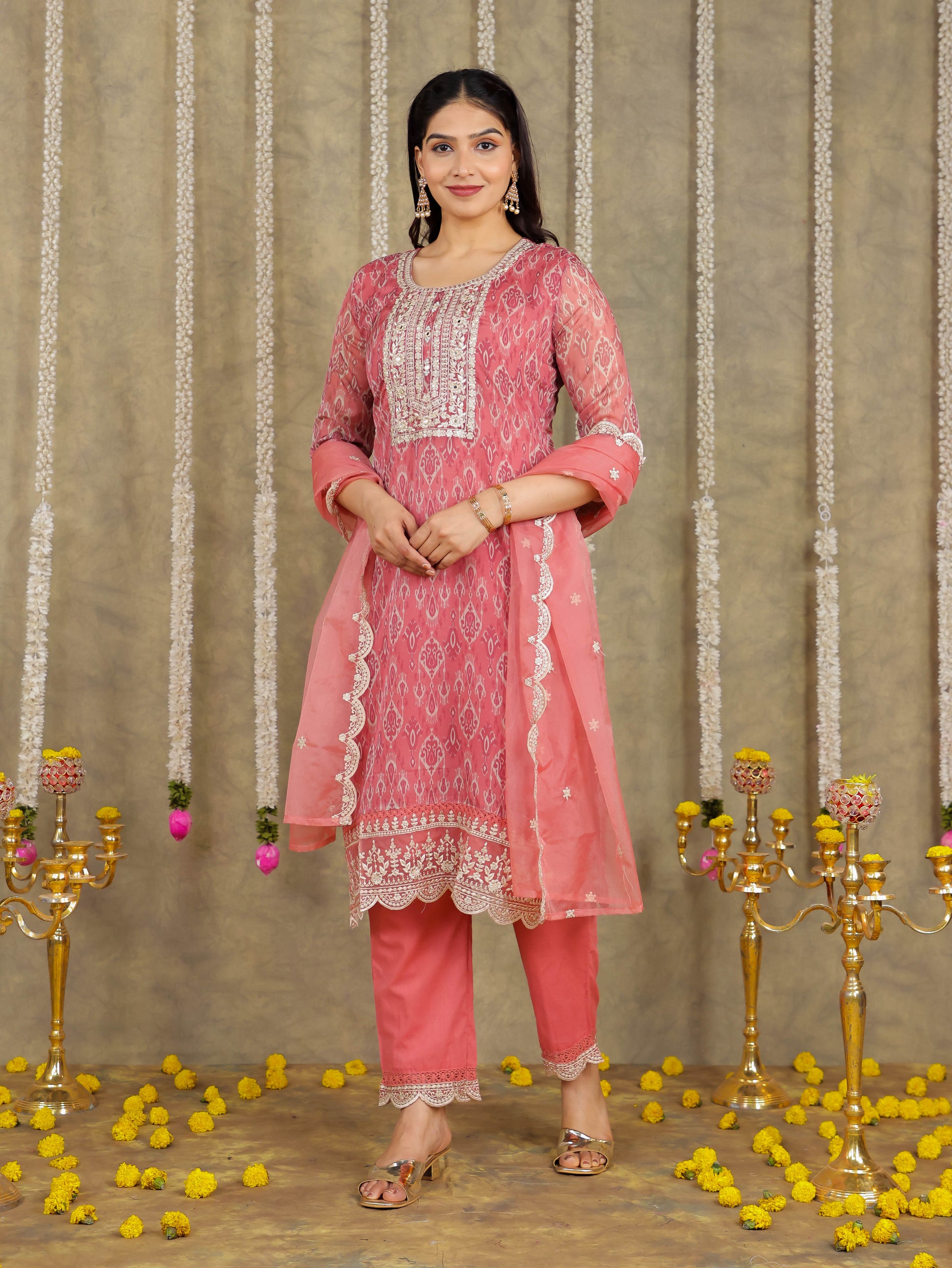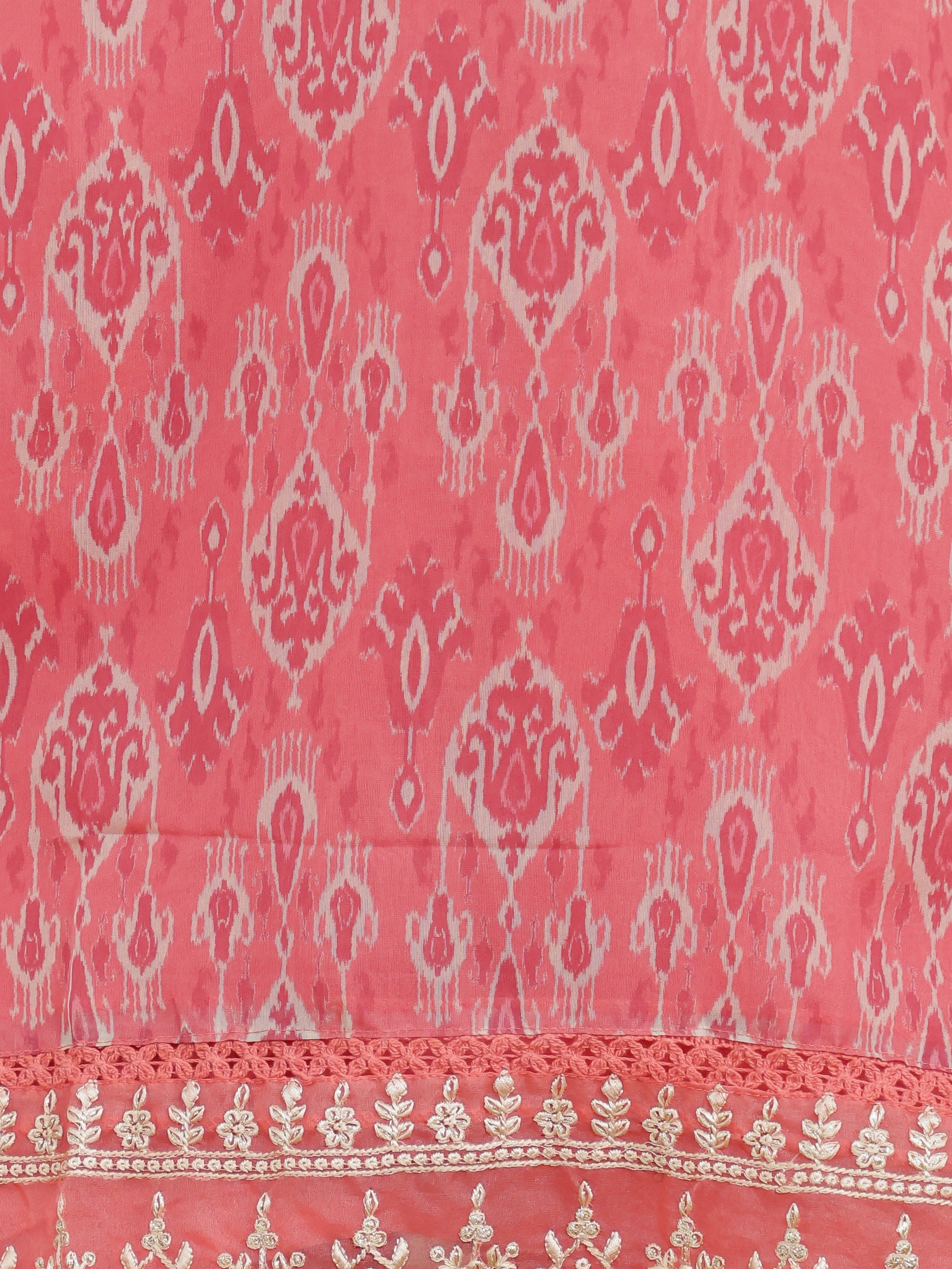 Embroidered Romen silk Ikat Dusty Pink Kurta