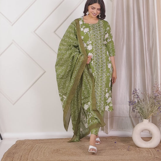 Embroidered Soft Cotton Abstract Straight Green Kurta