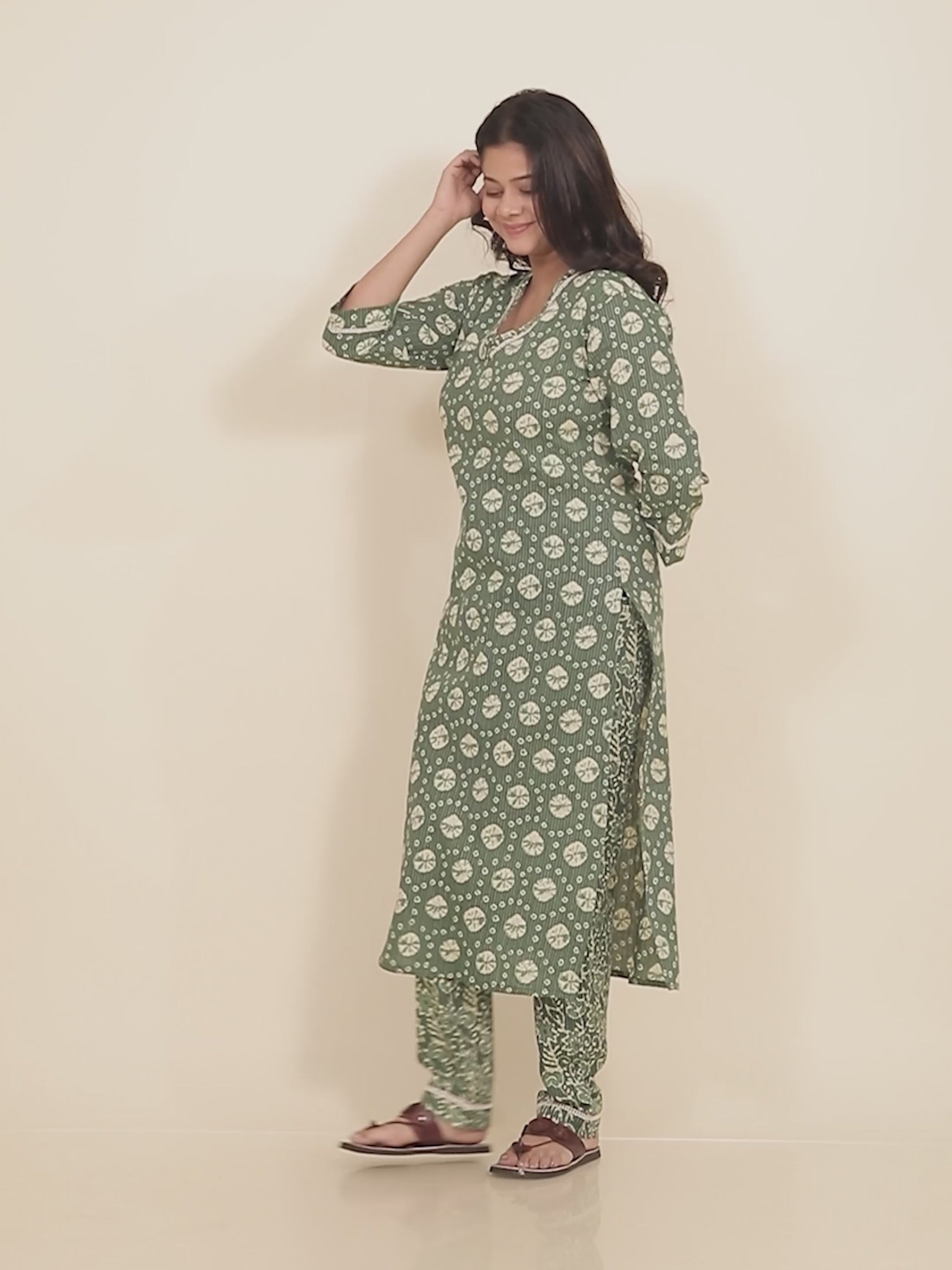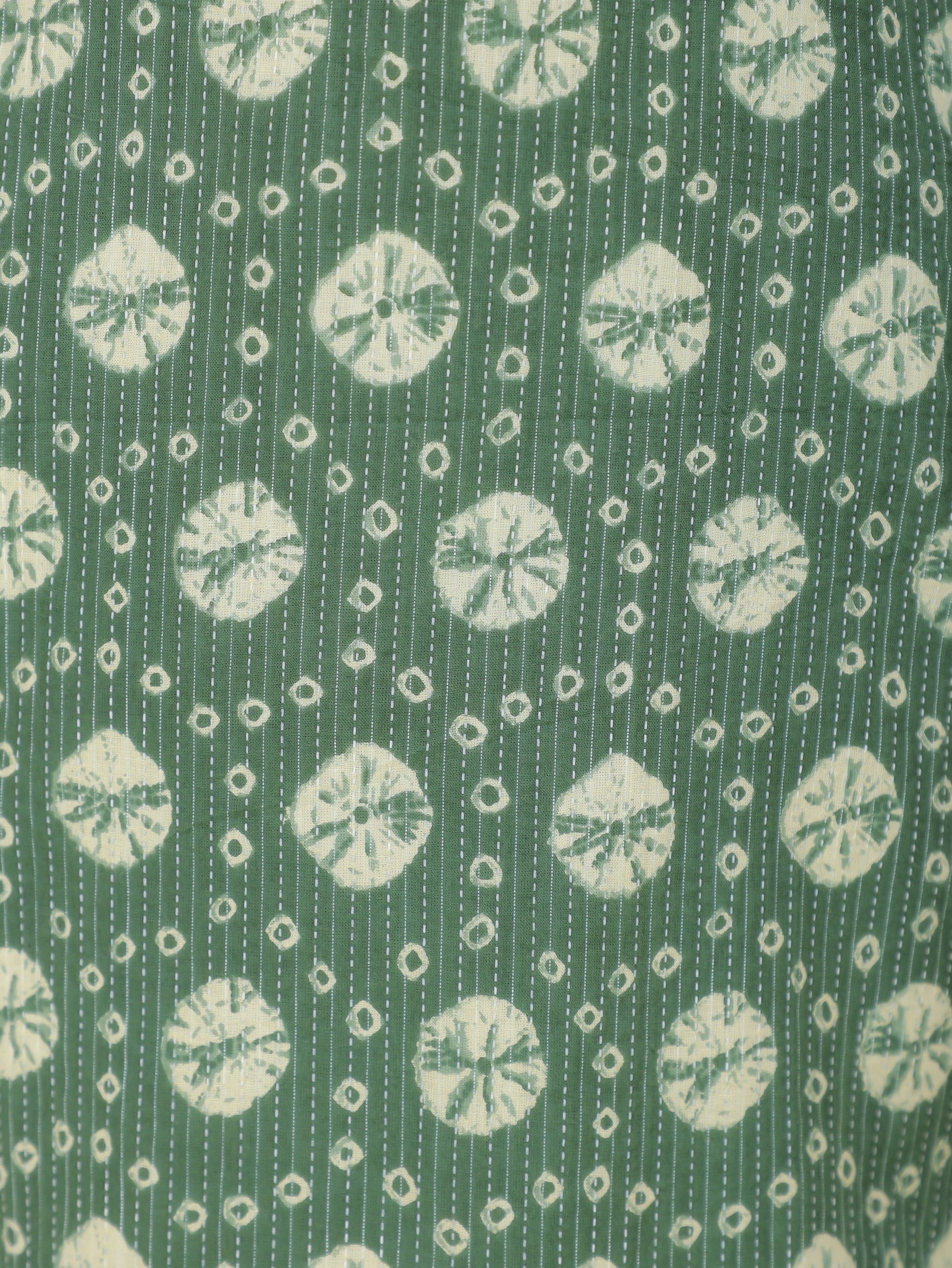 This Green Kantha Cotton kurta with a Straight flare is designed for comfort and style. Featuring a V neckline, 3/4 Sleeve sleeves, and a graceful Calf Length hemline, it’s perfect for festive wear or semi-formal gatherings. The Bandhani highlights add depth and texture, making it a standout piece. Accessorise with a contrasting dupatta and keep it pristine by following proper care instructions.