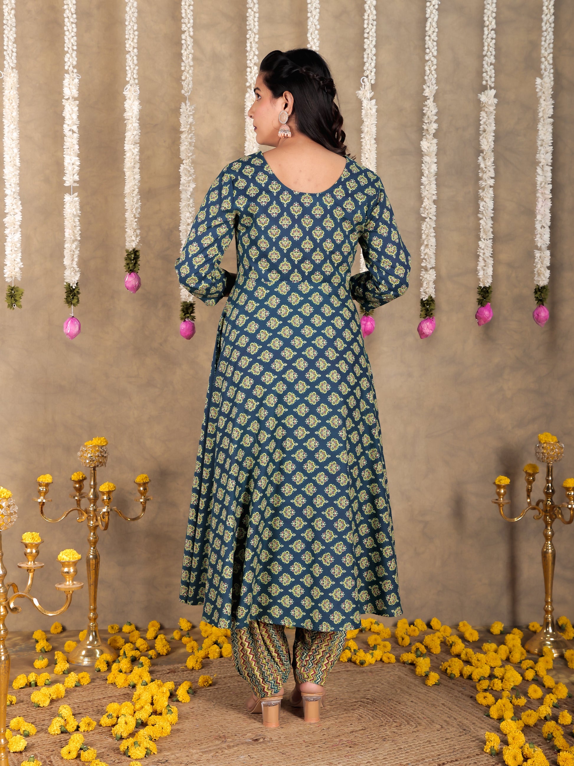 Crafted from breathable Soft Cotton, this Anarkali kurta in Green blends traditional design with everyday comfort. The Butti finish adds artisanal charm, while the Calf Length silhouette ensures effortless elegance. Style with palazzos or leggings for versatile looks, from workdays to weekend outings. Designed for easy care, this kurta stays beautiful with simple care instructions.