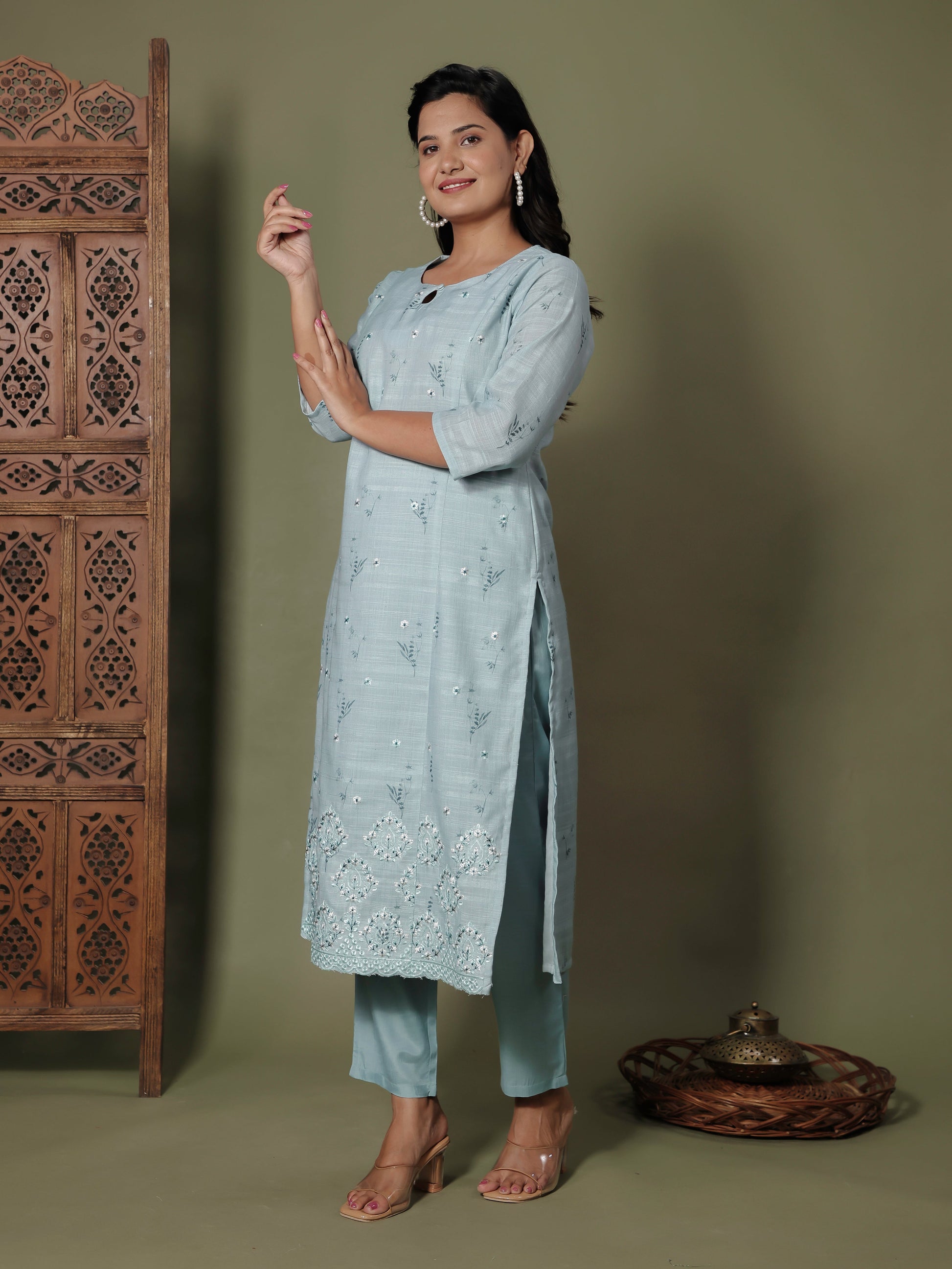 Elevate your ethnic wardrobe with this Chanderi kurta in a stunning Green hue. Featuring an elegant Panelled fit and striking Floral accents, it’s perfect for festive celebrations or family gatherings. The Keyhole neckline and 3/4 Sleeve provide all-day comfort. Team with gold-toned accessories for an effortlessly chic vibe. Maintain its charm by following proper care instructions.