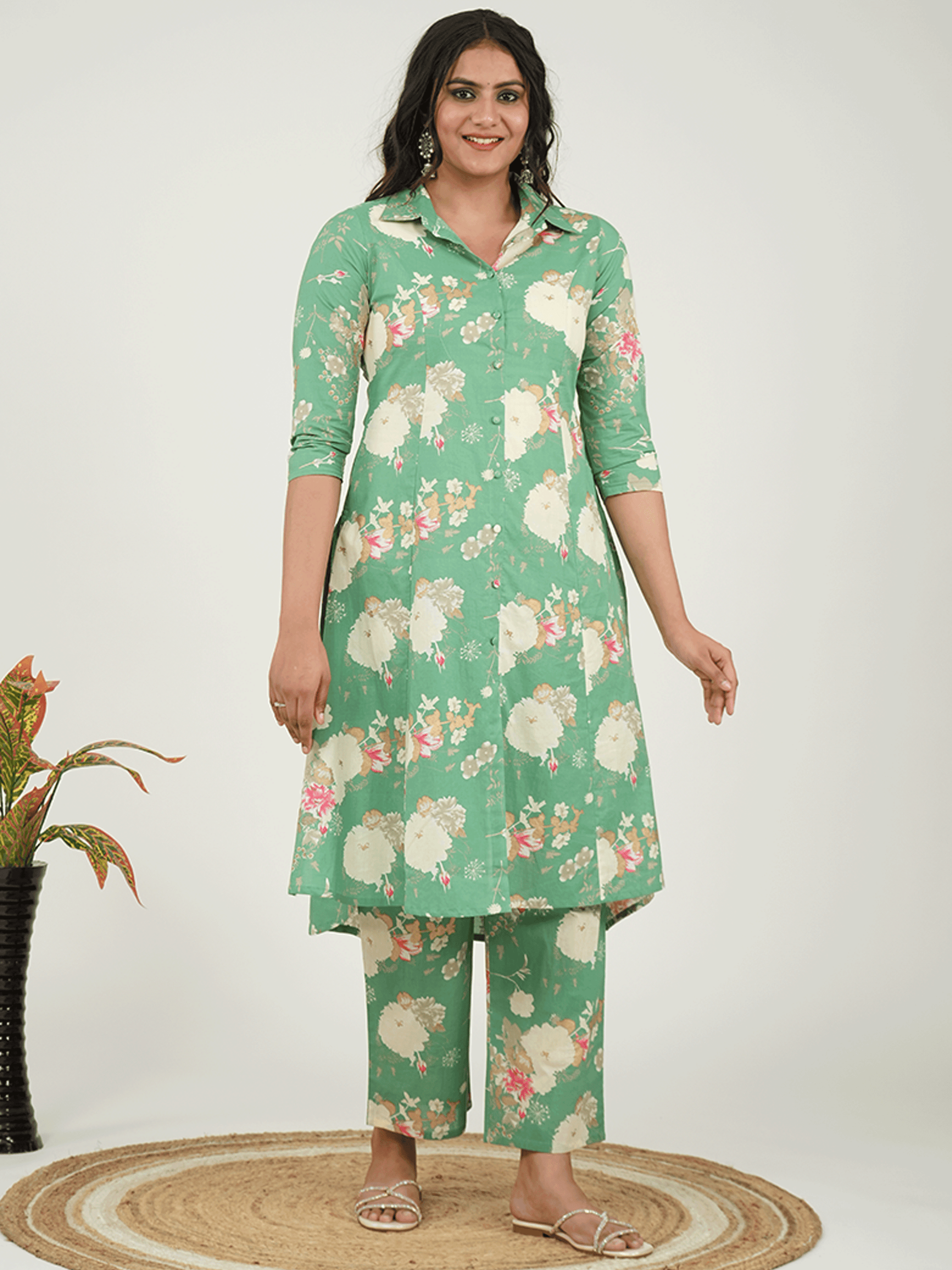 Crafted from breathable Linen Cotton, this High Low kurta in Green blends traditional design with everyday comfort. The Floral finish adds artisanal charm, while the Calf Length silhouette ensures effortless elegance. Style with palazzos or leggings for versatile looks, from workdays to weekend outings. Designed for easy care, this kurta stays beautiful with simple care instructions.