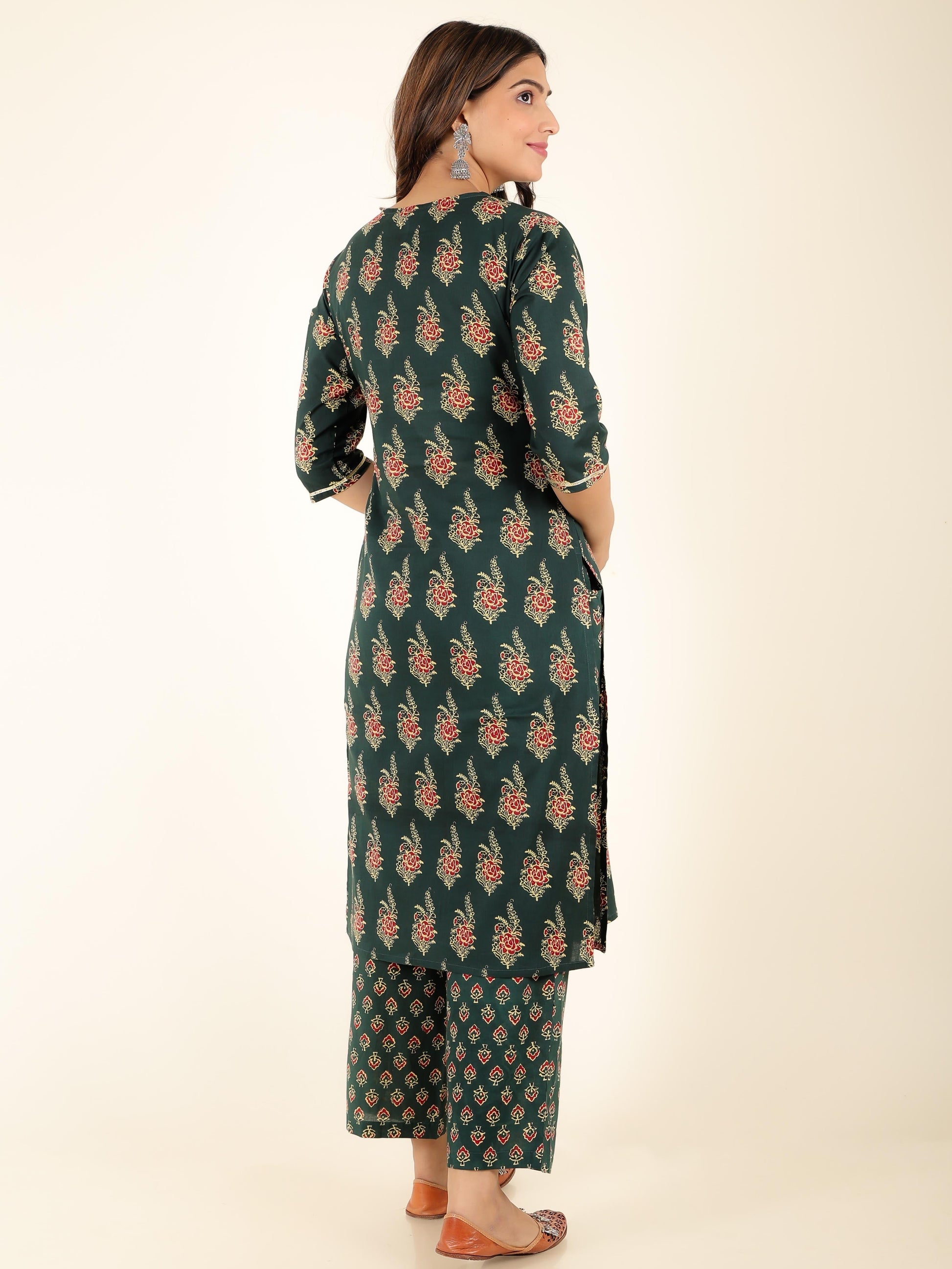 Elevate your ethnic wardrobe with this Soft Cotton kurta in a stunning Green hue. Featuring an elegant Straight fit and striking Floral accents, it’s perfect for festive celebrations or family gatherings. The Keyhole neckline and 3/4 Sleeve provide all-day comfort. Team with gold-toned accessories for an effortlessly chic vibe. Maintain its charm by following proper care instructions.