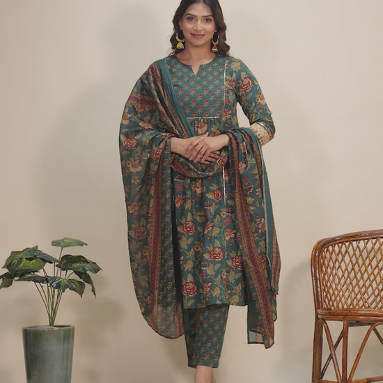 This Green Soft Cotton kurta with a Panelled flare is designed for comfort and style. Featuring a Round neckline, 3/4 Sleeve sleeves, and a graceful Calf Length hemline, it’s perfect for festive wear or semi-formal gatherings. The Floral highlights add depth and texture, making it a standout piece. Accessorise with a contrasting dupatta and keep it pristine by following proper care instructions.