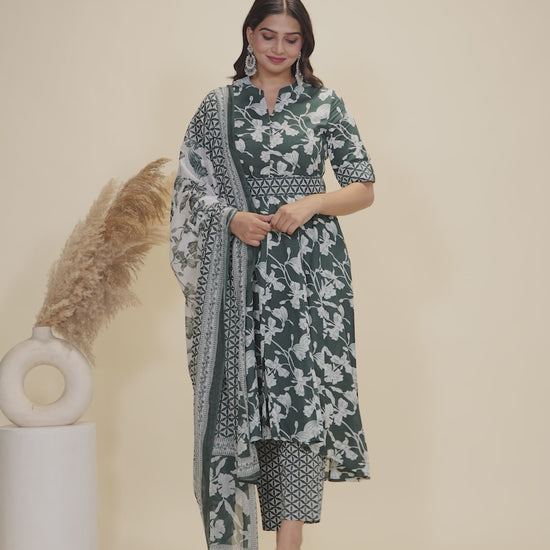 Soft Cotton Floral High Low Green Kurta