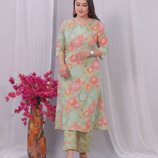 Embroidered Soft Cotton Floral Straight Green Kurta