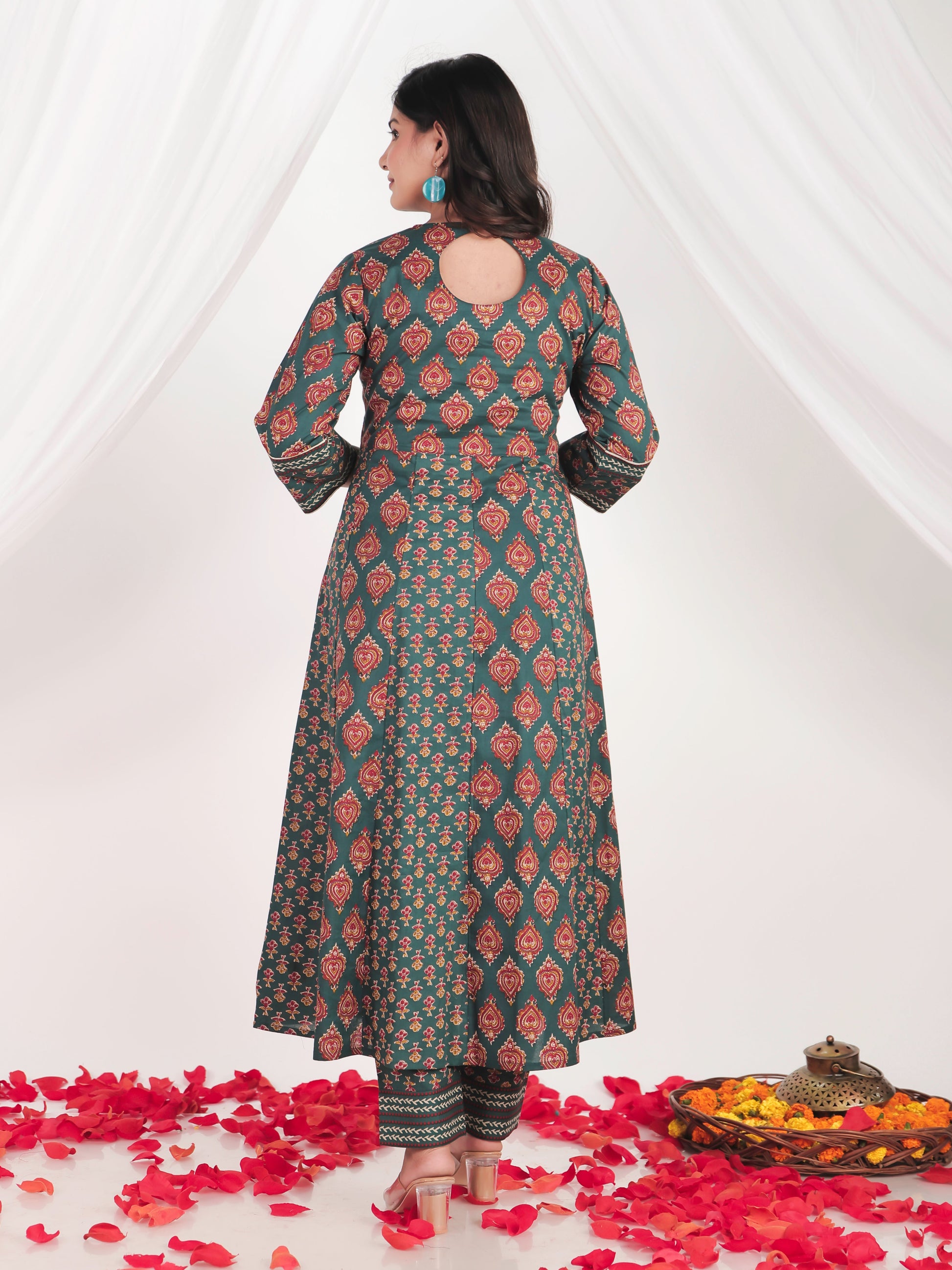 Elevate your ethnic wardrobe with this Soft Cotton kurta in a stunning Green hue. Featuring an elegant Anarkali fit and striking Butti accents, it’s perfect for festive celebrations or family gatherings. The Keyhole neckline and 3/4 Sleeve provide all-day comfort. Team with gold-toned accessories for an effortlessly chic vibe. Maintain its charm by following proper care instructions.