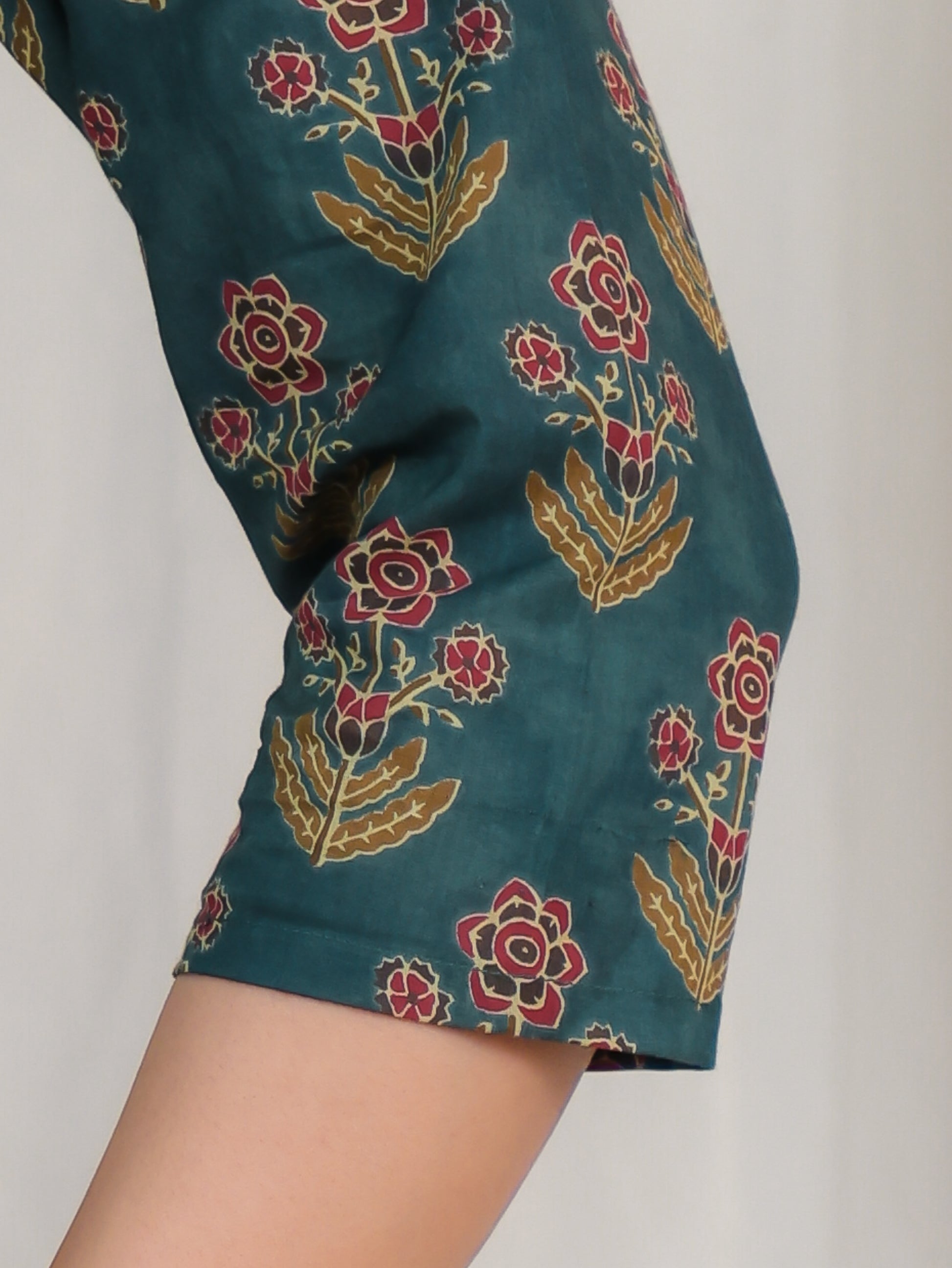 Elevate your ethnic wardrobe with this Soft Cotton kurta in a stunning Green hue. Featuring an elegant Anarkali fit and striking Floral accents, it’s perfect for festive celebrations or family gatherings. The Round neckline and 3/4 Sleeve provide all-day comfort. Team with gold-toned accessories for an effortlessly chic vibe. Maintain its charm by following proper care instructions.