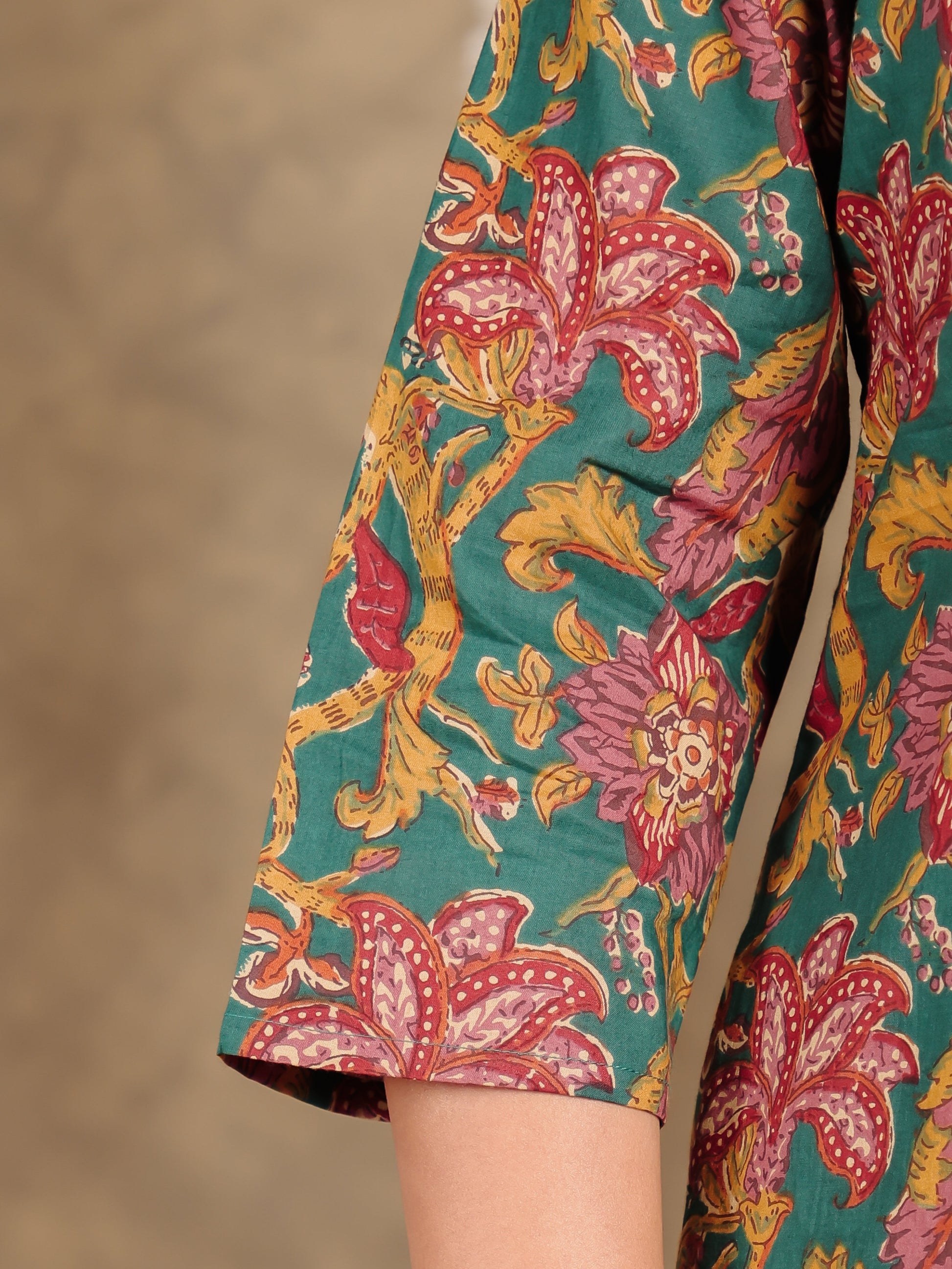 Embroidered Soft Cotton Floral Straight Green Kurta