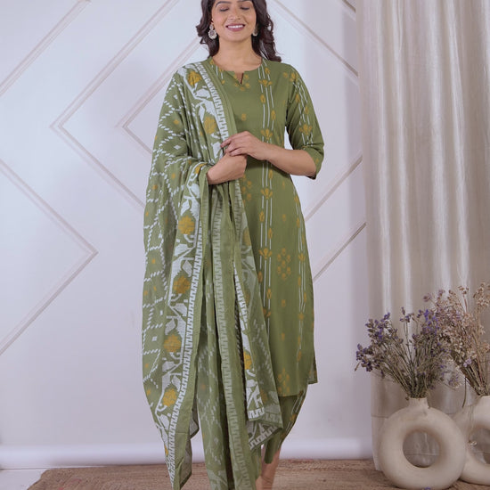 Soft Cotton Geometric Straight Green Kurta