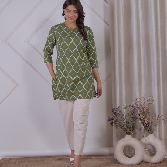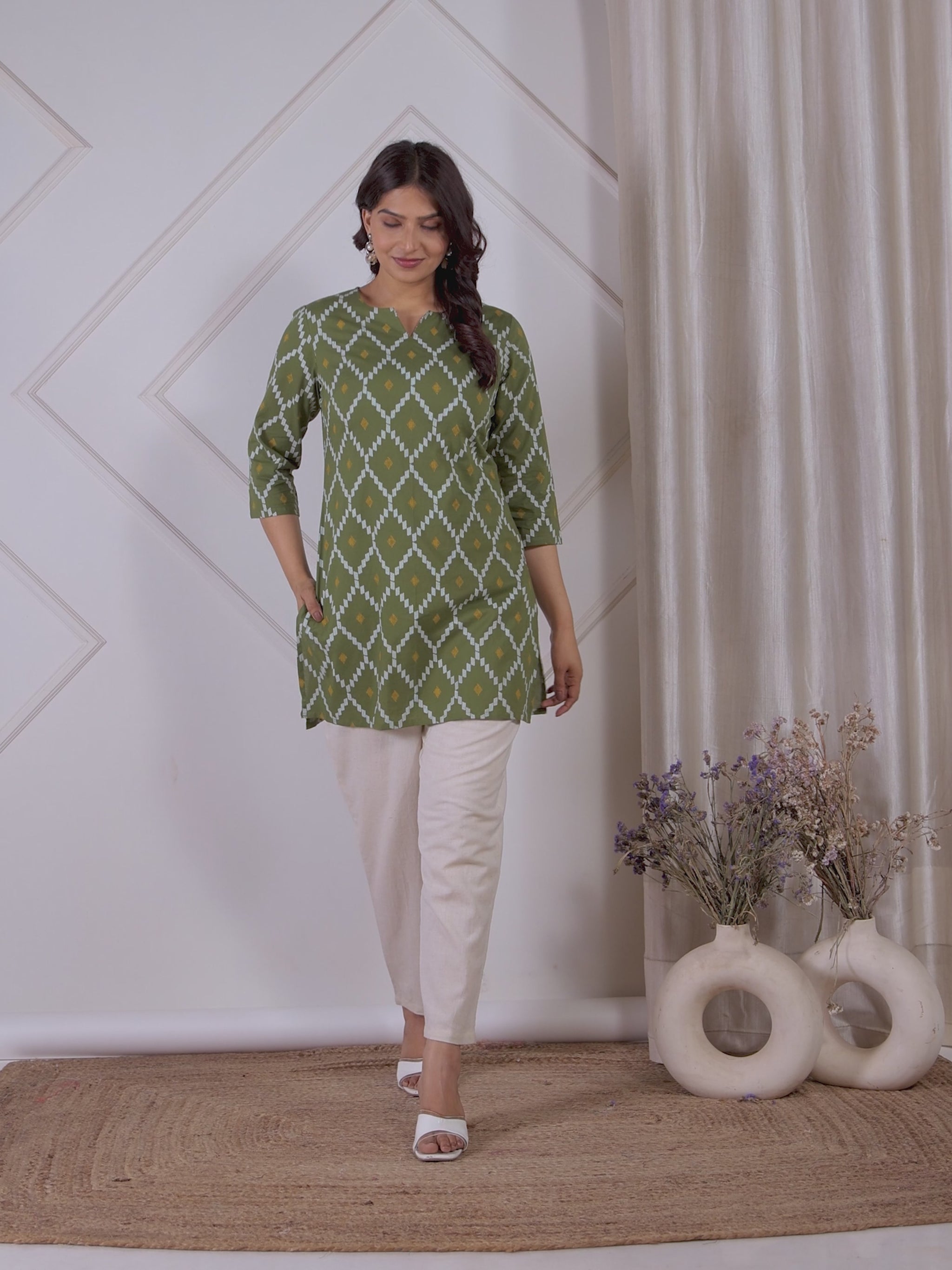 Elevate your ethnic wardrobe with this Soft Cotton kurta in a stunning Green hue. Featuring an elegant Straight fit and striking Geometric accents, it’s perfect for festive celebrations or family gatherings. The Round neckline and 3/4 Sleeve provide all-day comfort. Team with gold-toned accessories for an effortlessly chic vibe. Maintain its charm by following proper care instructions.